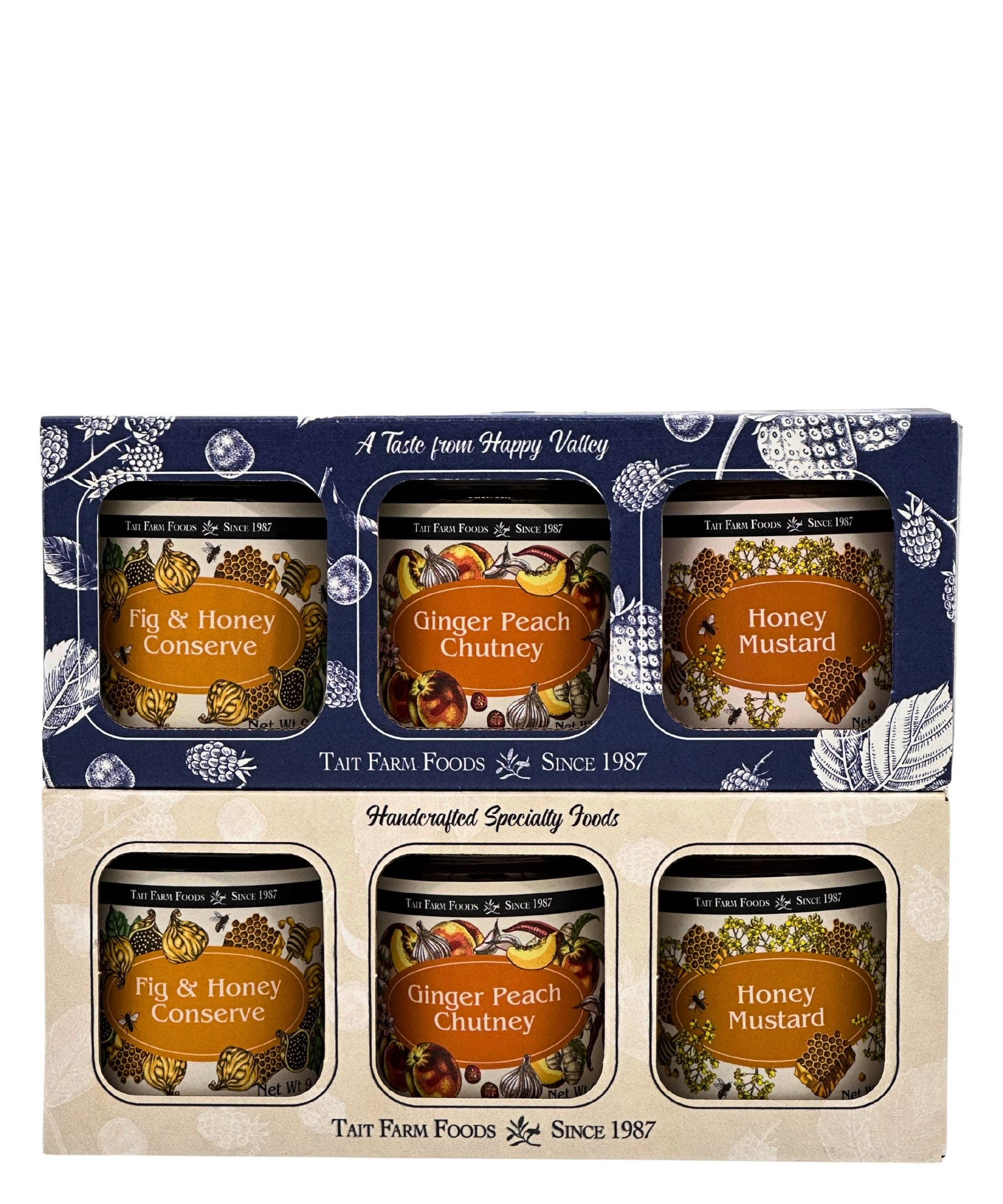 In 1987 when a bumper crop of raspberries were threatened by a driving rain storm, necessity gave way to invention and Tait Farm’s Raspberry Shrub was born! Since that time Tait Farm Foods has grown to more than 60 all-natural specialty food products. Each product is made by hand in small batches using only the highest quality ingredients. We support our retail partners with beautiful marketing materials. Bon AppeTait!
