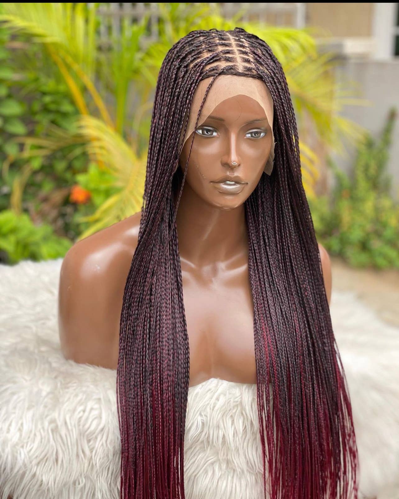 I started braiding as a teenager. I would play with my hair then on strings and that’s how I started braiding on a mannequin and here I am now making braided wigs in large quantity. It is safe to say that you’re in good hands. For QUALITY handmade braided wig with the most realistic look, we are your plug as We offer only neatly made braids CUSTOMIZATION is available and you can send us pictures of wigs you love but not displayed here and I will create them for you Our wigs undergo processing as they’re handmade We use the best materials and lace We allow custom orders of any color and design