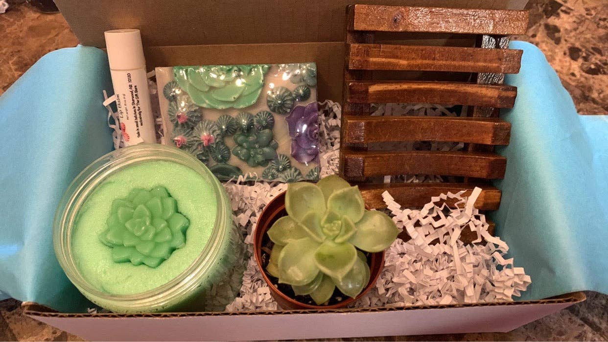 When my son was 16 years old, I thought it would be a great idea to go on a mission trip to Brazil with him to install water filters and maybe make him a more well-rounded person, so I watched a youtube video and learned how to make bath bombs to help pay our part. It took around a year of perfecting my recipe, but I finally created a recipe that I loved and it was super fun! I waited and waited for the church to come up with the funds, etcetera, but in the meantime, my little fundraiser idea grew and grew. I was fascinated by soap, but I had my hands full with bath bombs and honestly I was a little afraid to delve into soap. The lye scared me and it was like soapers were speaking another language with lots of acronyms and percentages and calculations. Still, I studied and researched and read everything I could get my hands on. Finally, I decided one day that I was going to go for it. I was pretty much done with bath bombs that day. I still have a bar from that first loaf! The mission trip never came through, but instead I discovered a way to express my creativity and be challenged. I feel good about knowing what is in the products that we use on our skin. Science still has a long way to go in determining which ingredients are safe for use on our skin. I have carefully crafted our recipe(s) with quality ingredients from reputable suppliers and keep it pretty simple. We hope you enjoy our soap as much as we do!
