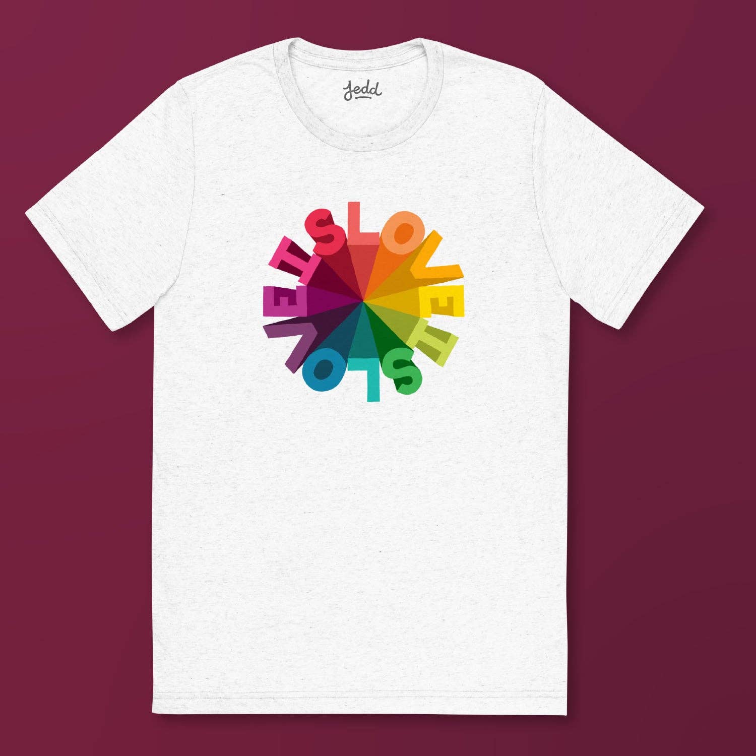 Designs That Spread the Love Hi, I’m Jedd. I create designs will make your customers stand out from the sea of corporate, cookie-cutter fashion. My collection includes Graphic Knit Sweaters, Hoodies and Sweatshirts, and Graphic Tees. Style, with Substance Every design starts from a place of love. Here are my brand principles: Lead With Love & Respect - Through bold color, pattern, and text, I aim to create pieces that speak to our shared humanity. Use Wit & Humor - With illustrative visual clues, I aim to create pieces that are sometimes silly, often witty, and always joyful. Be Clear & Concise - By crafting each design around a single intentional concept, I aim to make each style clear and impactful. And as a small LGBTQ+ owned business and art studio, your support means the world to me! Read more about Jedd at https://jeddloves.com/pages/about