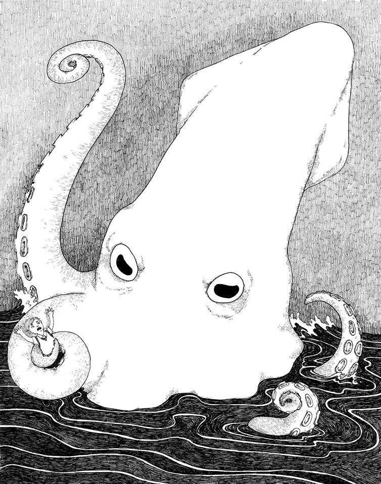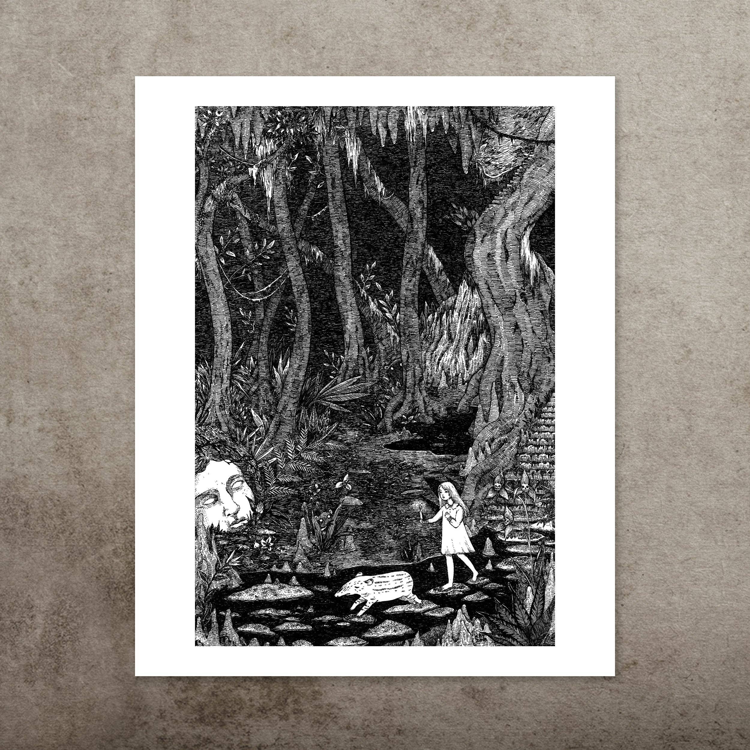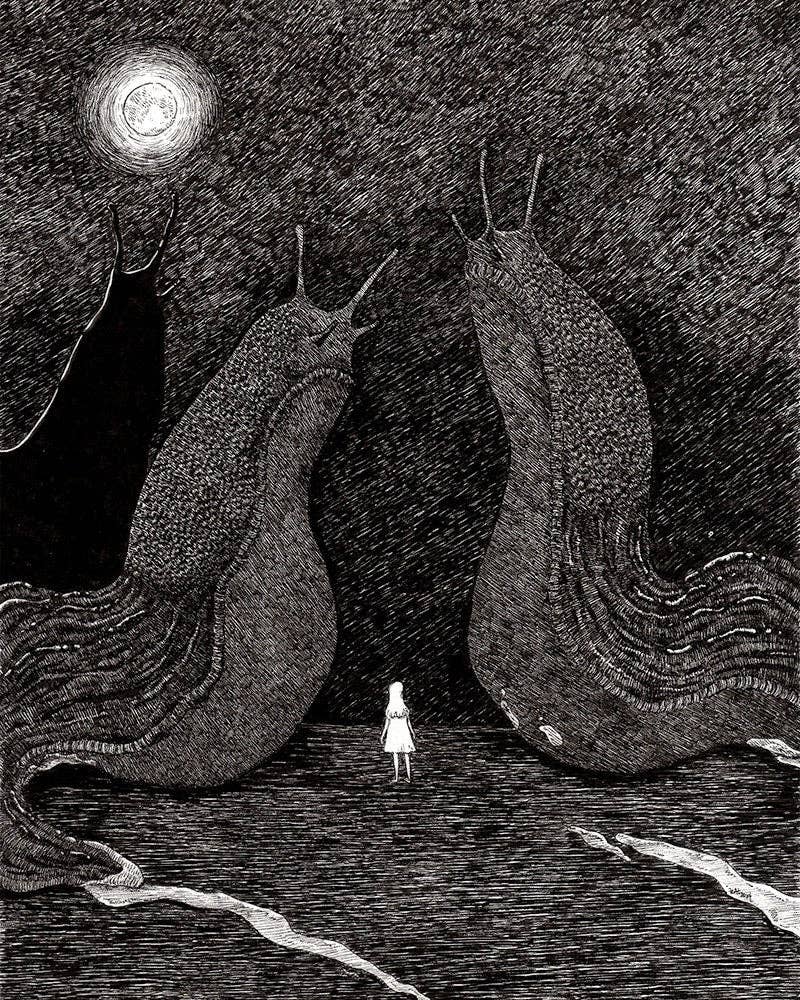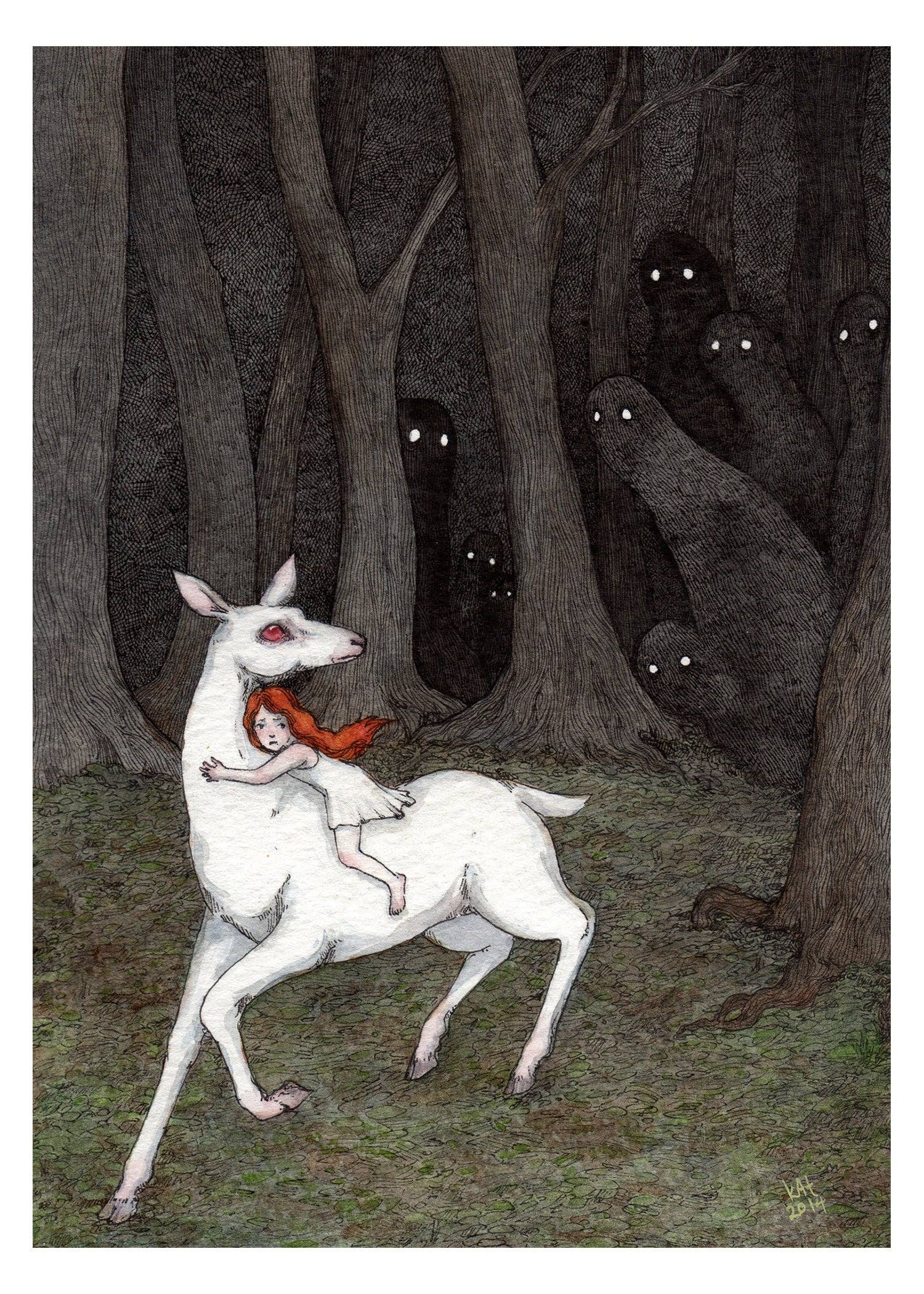 The Stupid Animal Shop is the work of artist kAt Philbin. While she began the shop over 15 years ago with a self-deprecating name and a handful of drawings, it has grown to a thriving business with customers all over the world. kAt is currently based in Los Angeles, but originally hails from a spooky house in the middle of nowhere of Southwest Missouri. With one foot in the horror/dark art community and the other planted firmly in whimsy, kAt draws inspiration from diverse sources, including the animal kingdom and the natural world, myths and fairytales, and the illogic of dreams. Her work ranges from popular horror icons playing with cats to meticulously rendered black and white dreamscapes. Darkness and light, wonder and irreverent humor all happily coexist in her work. What may make one person chuckle may be deeply moving to the next and there are no wrong answers. Each piece tells a story, and that story is up to the viewer to decide.