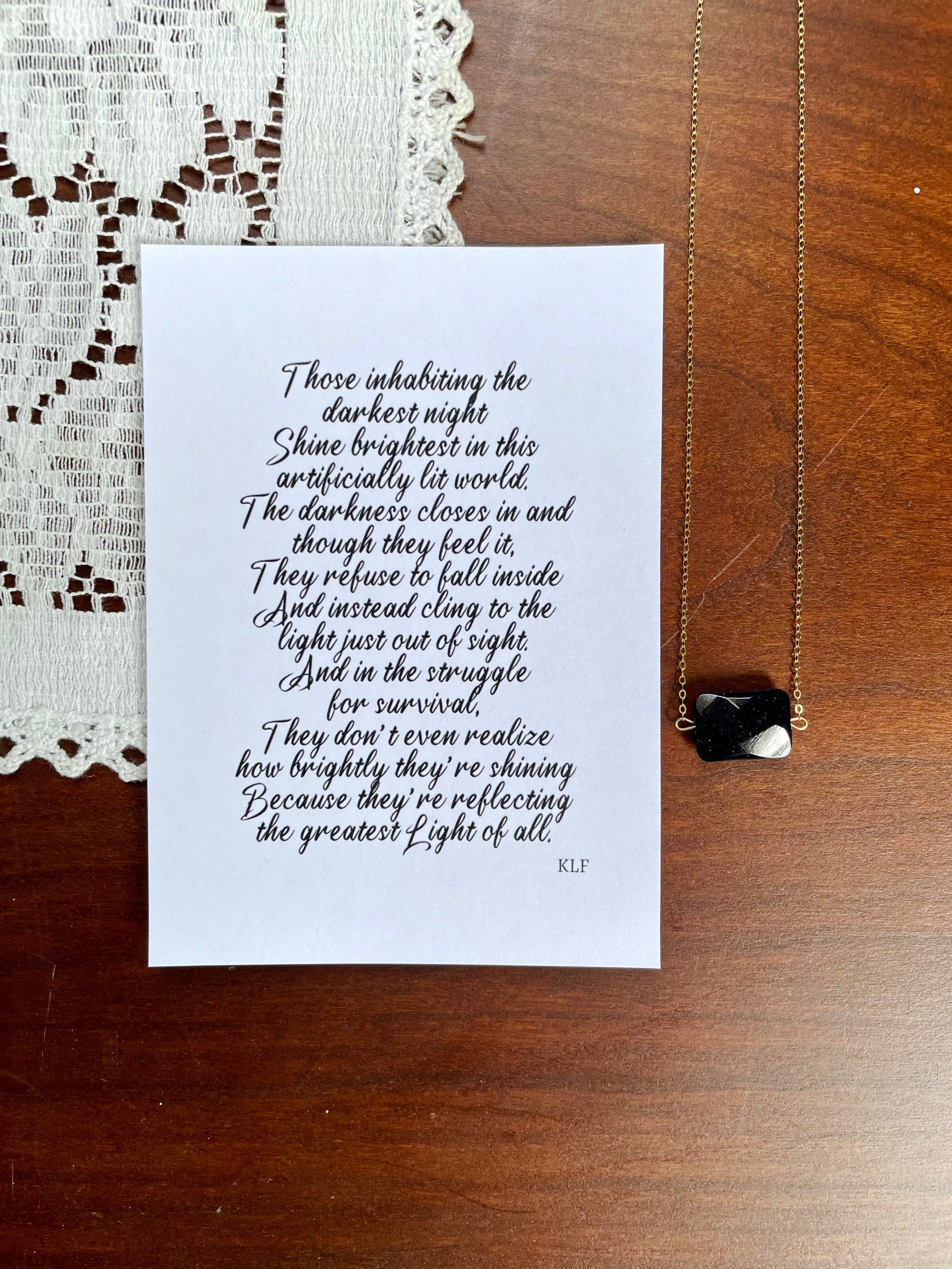 Hamrick Avenue began in 2011 as a spontaneous hobby that turned into an exciting distraction from chronic illness and finally grew into a post-healing, full-blown business. Here you’ll find jewelry spread over several collections: The Signify Collection, The Ennea Collection, The Evidence Collection, and more. Each original piece is designed and made by me, and I carefully pack up and ship every order from NC. THE NAME There’s a sleepy town tucked deep into the valley in the heart of West Virginia, surrounded by green hills stretching to the sky, fresh river air, and a past that haunts it like a beautiful dream. Many Hamricks have called Webster Springs, West Virginia home since the 1800s, a place that I frequented with my family as a child and the place that I call my heart’s home. My great-grandmother and so many far beyond in the treasured lines of my family tree were born Hamricks, so it is a very special name in my family. Although I’m not a Hamrick in name, I’m a Hamrick at heart and by blood, with the classic wavy red hair and fair skin. So welcome to the crossroads of the best of Kacie Fleming. This is me. This is Hamrick Avenue. TURNAROUND Please note that turnaround time depends on order size. I usually ship out within 3 business days but sometimes will need to order more supplies, which can add 2 weeks or more. At any rate, I will submit your order's turnaround time promptly, and it will be in the front of my mind until complete. Thank you!