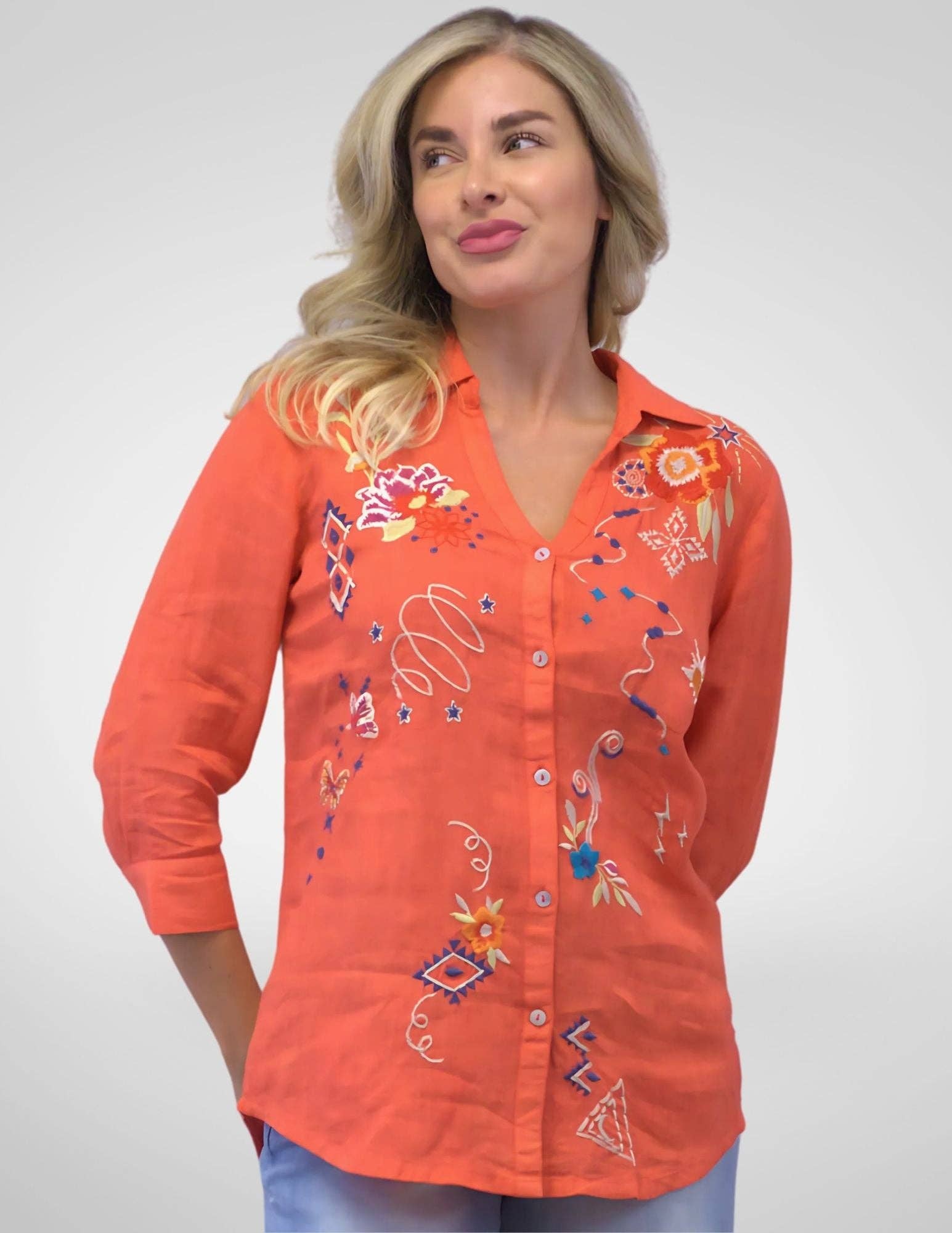 Founded in 1998 with a handful of great knit pieces, owner and President, Karyn Seo, has since expanded Caite & Kyla into four different umbrellas of clothing lines. Knits and woven clothing pieces full of intricate embroidered details make up the Caite and Kyla Seo lines, Love Kyla consists of one-of-a-kind prints from artists around the world, and the newest line is Karyn Seo, an array of luxurious leather handbags in a variety of silhouettes. All four lines are sold in boutiques nationwide and internationally. The brands offer fine, intricate detailing, and impeccable quality. All pieces are handcrafted in India under fair and ethical working conditions and the company takes great pride in the talent of these artisans to create unique prints, exquisite embroideries, and stunning pieces. The Caite & Kyla woman has a free spirit, is a lover of art, travel, and all things handmade. She is a woman who is adventurous, enthusiastic, and loves life, and she is always noticed when entering a room! All four lines are individually designed to be timeless, season-less, and above all, figure-flattering. Female empowerment is a pillar of the Caite & Kyla brand and with this idea in mind, the company is designed with the modern, everyday woman in mind. A woman who wants to dress with confidence, ease, comfort, and incredible style as well. Looking good is feeling great!