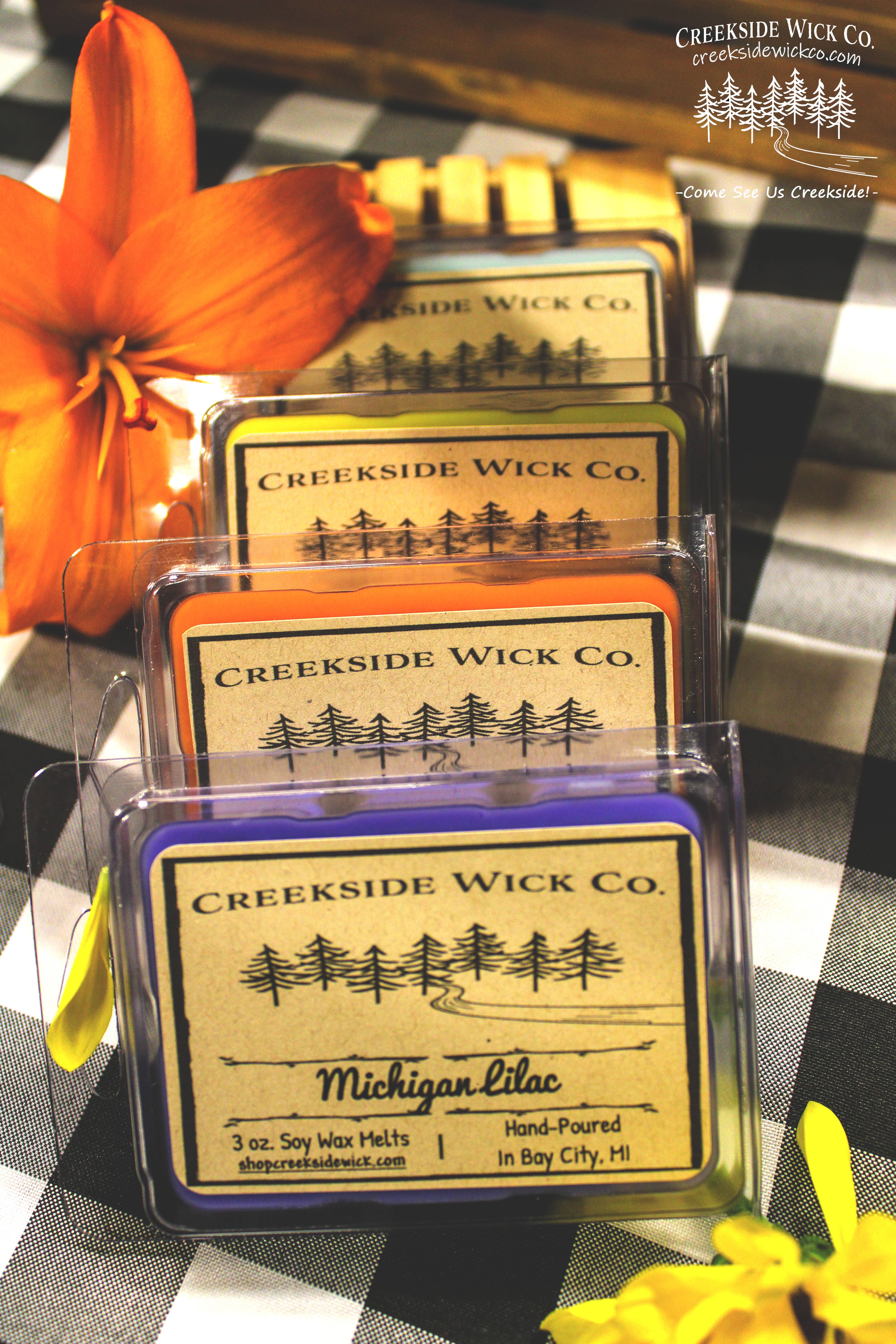 Creekside Wick Co. Is a candle company based in Bay City, Michigan. We offer high quality hand-poured soy candles and wax melts along with our goatmilk soaps and room sprays.