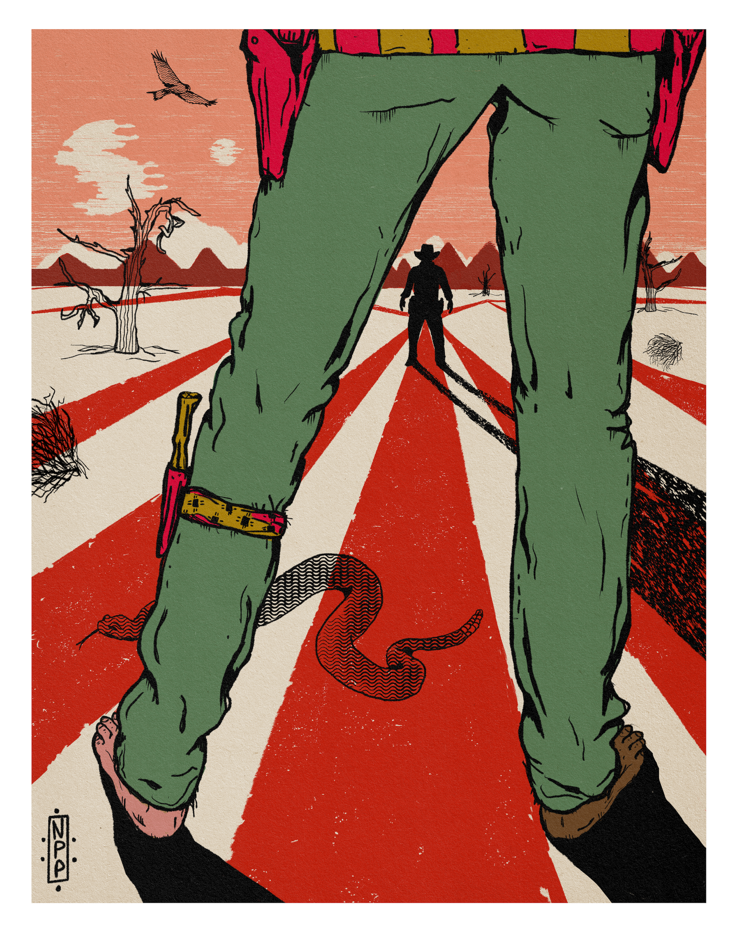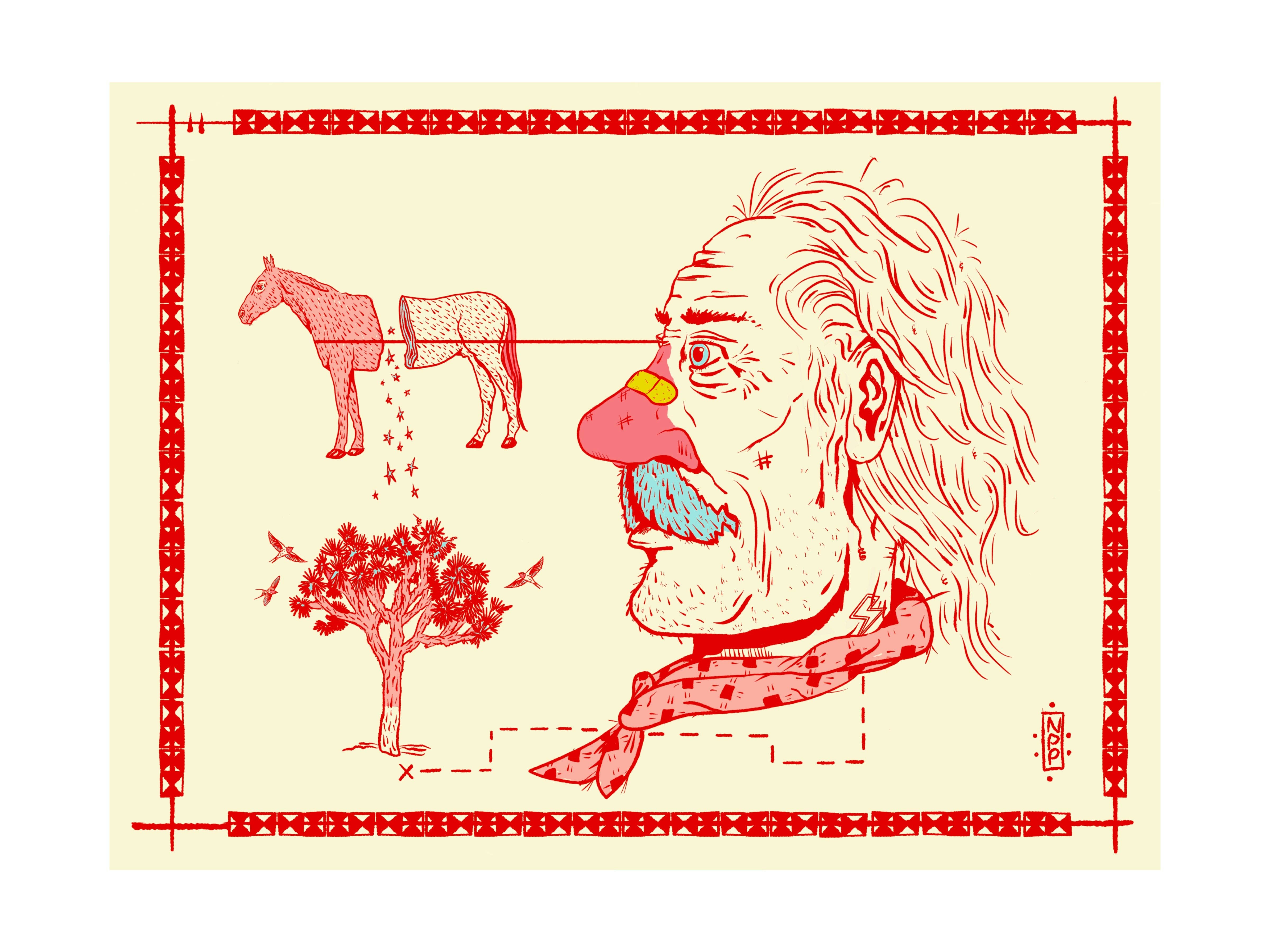 Pop Americana was created to re-connect with my first love, which is creating art. Illustrating my acid western style was a way for me to have fun with my imagination that lives in the southwestern themed landscape with a touch of surreal and consciousness-expanding flair.