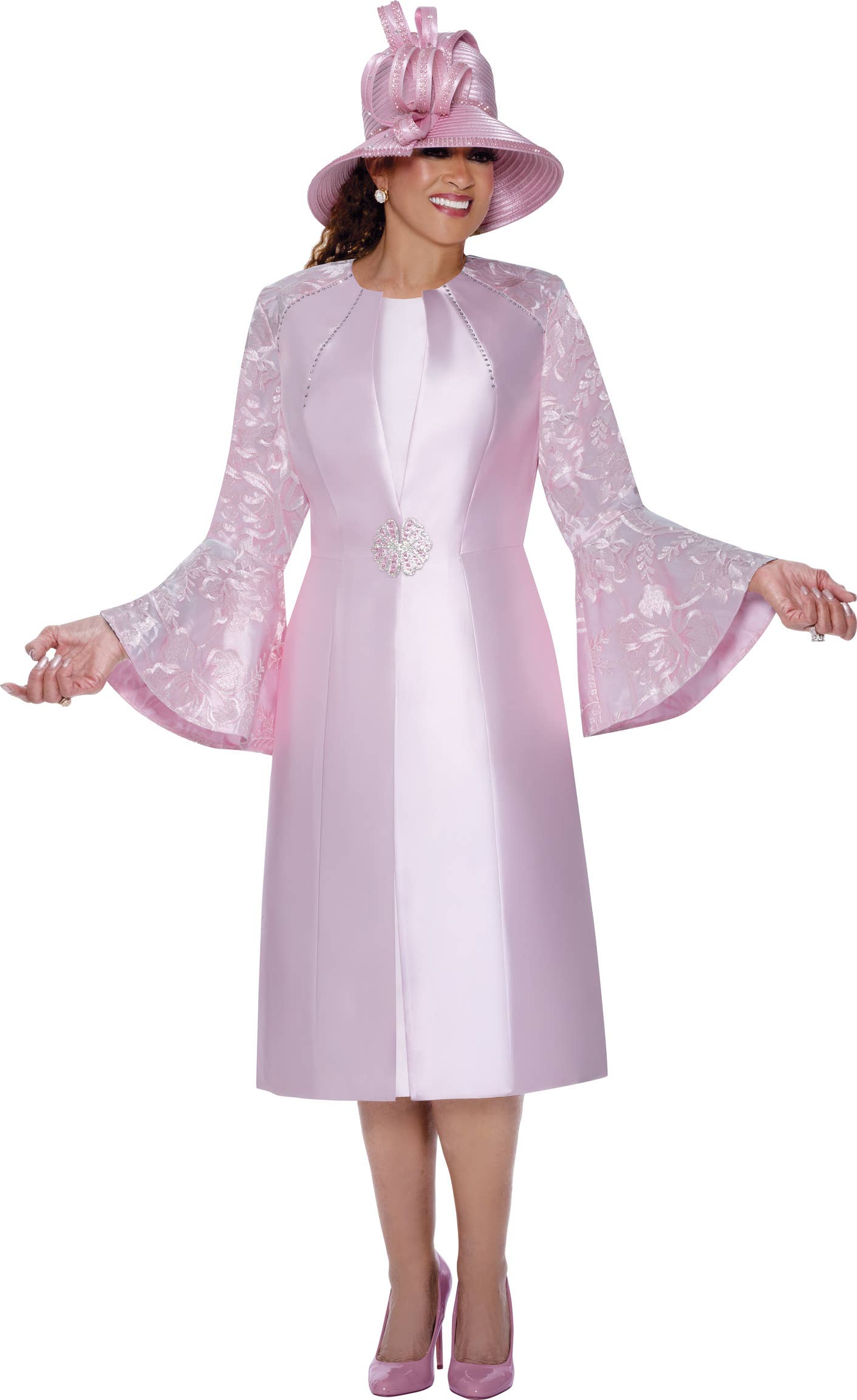 The team at Divine Apparel designs and manufactures budget, moderate and better garments geared to the sophisticated woman. Most styles range from 8-18 & 16W-26W but can range from 4-34W. GMI is a collection of elegant skirt suits perfect for church, holidays, weddings or any special occasion. Most offer a matching hat to complete the Divine look. Dresses by Nubiano offers a variety of versatile styled dresses and jacket dresses. Many can take you from work to church to a party or a night on the town and can be dressed up or down. The Dorinda Clark Cole DCC Rose Collection is a lifestyle collection of elegant dresses, jacket dresses, skirt suits, pant suits, hats and denim sets designed for and inspired by the famed Grammy Award winning gospel singer and evangelist. Stellar Looks offers a new and comfortable approach to occasional dressing. Soft stretch updated looks for any occasion. Keeping the next generation in mind, a more youthful approach to dress for church when casual is not an option. Devine Sport is a unique collection of denim sets and dresses made of lightweight soft stretch denim that can be worn to church, work or even to a special occasion. Our Quick-Ship Collection features everything from basic usher suits and dresses to church, choir and group uniforms to plain and fancy robes. We keep them in stock in large quantities and offer a vast variety of sizes to accommodate any group. Prices are strategically kept low to accommodate group orders.