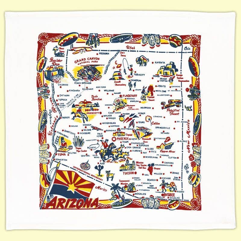 Red and White Kitchen Company specializes in retro and vintage-inspired designs printed on kitchen towels, tablecloths, tote bags, canvas cases, and now STICKERS! This year is our 26th year in business thanks to our wonderful retailers in all 50 states and around the globe. Featuring iconic themes from the 1940's, '50s, and '60s, you'll find mid-century modern, cherries and chickens, cowboys and cowgirls, souvenir state maps and more in our lineup of kitchen textiles. We love bringing the best of retro Americana to you! We ship fast: Twenty-four-hour turnaround during the business week. Orders placed Fridays ship Mondays (except holidays). All orders ship from our warehouse in Mount Kisco, New York.
