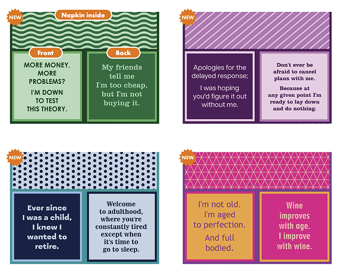 Hi! We are Jennifer Neuguth and David Riordan. We are married with two boys, Annan (22) and Malen (19). Both attend University of Vermont and continue to keep us on our toes. We live in a two very small towns in RI and VT. We both love to ski, adventure, hike, eat really good food, watch live music, travel to remote places and hang with our kids. Work Hard, Play Hard is our motto. We are funny people, we like funny people and we surround ourselves with loads of love and adventure. Our resin coasters are made in RI Our napkins are of the highest quality and made in Germany. We strive to make you and your customers LAUGH OUT LOUD while keeping it affordable. LAUGH...SELL...REORDER is our Mantra! Thank you for your interest in Drinks on Me. Cheers, J and D