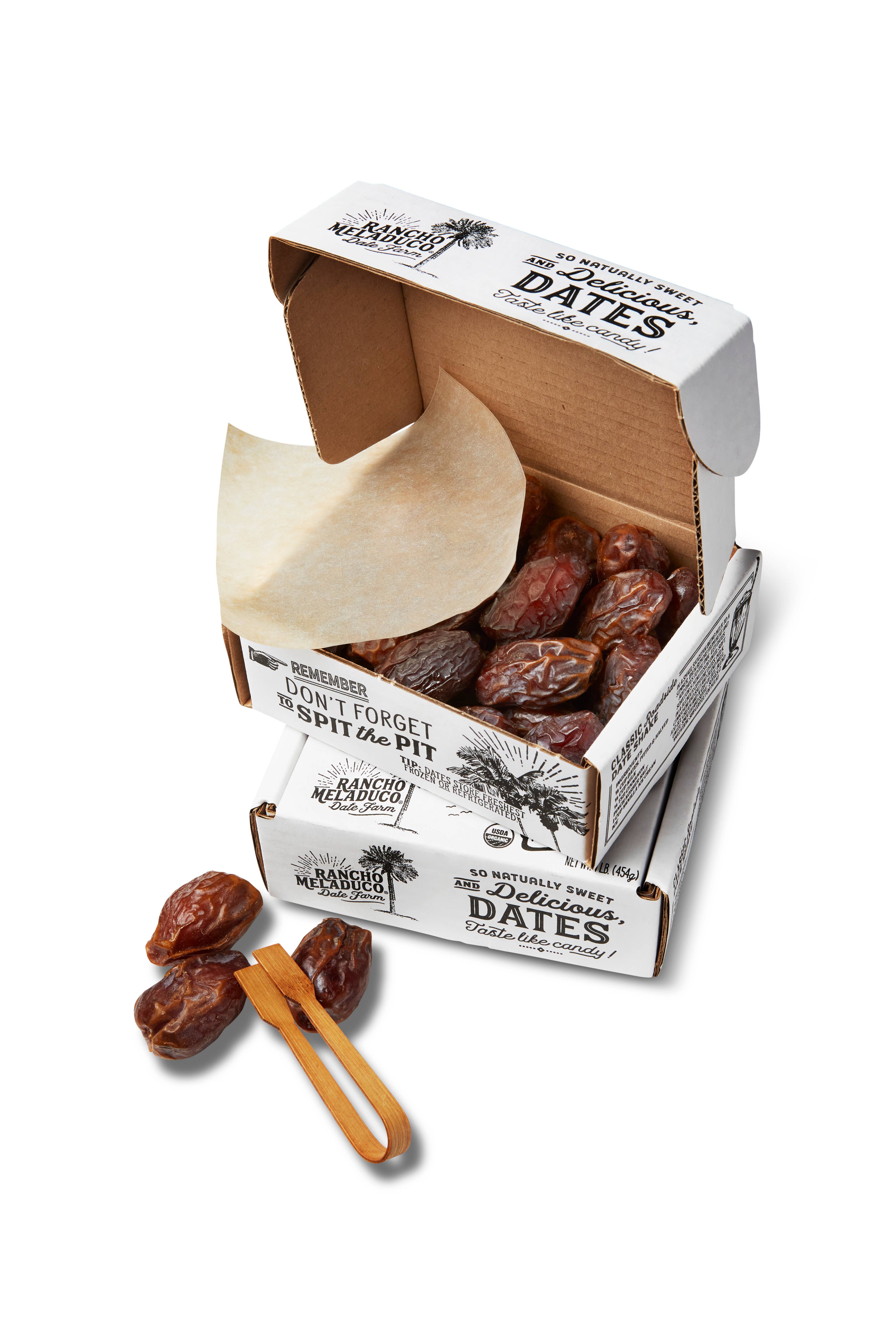 Rancho Meladuco Date Farm was founded in 2015 by Joan Smith a mom of 3 and accountant turned date farmer in Southern California. Joan and her husband grew dates on their family ranch in the Coachella Valley for many years and friends and family, accustomed to their annual gifts of the freshly harvested, hand-packed dates, plead with them to sell the delicious dates they were growing. When her youngest child turned 4, Joan decided it was time to take a turn at date farming. Known for being exceptionally tender, juicy and flavorful, Rancho Meladuco dates are what the date industry refers to as fresh dates due to their higher moisture levels. The resounding feedback is always the same from those who try them: "these are the best dates ever!" For Rancho Meladuco, they are unquestionably the most delectable and candy-like dates, so moist dates are the only dates they pack in their prime, hand-packed boxes offered here. Joan's life and interests led her to this venture in growing dates. She possesses a love of working the land, being outdoors, great food, cooking, and especially of providing pleasing and delicious food to others. They grow their date palms with love and passion, pack their dates with care and creativity, and partner with other growers in their small community to provide the best fruit available.
