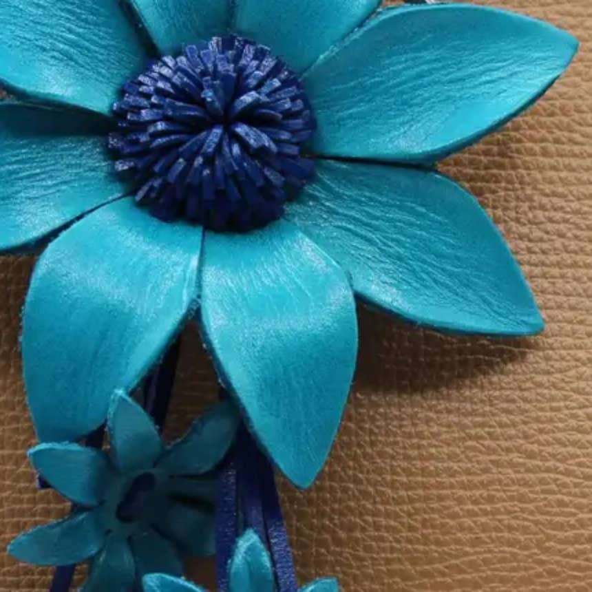Sunflower Handmade Leather is a family run business which is based in North California .Skilled designers began perfecting the art of 3D leather design, custom coloring & hand tooling creating a wider variety of product through the years. Sunflower strives to maintain the highest standards of materials & workmanship and continues to be a leader in this unique field of leather accessories. Continued development of new categories has further established our signature style and distinctive identity. Our product offerings currently include unique accessories such as wristlets, coin purses, large purses, pouches, bracelets & much more. Discerning customers in the US and abroad continue to seek out our quality products. Please notes: All our products are handmade and the color and shape can vary slightly from case to case.