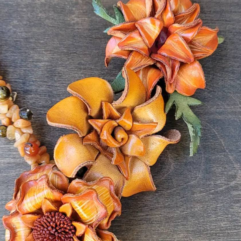 Sunflower Handmade Leather is a family run business which is based in North California .Skilled designers began perfecting the art of 3D leather design, custom coloring & hand tooling creating a wider variety of product through the years. Sunflower strives to maintain the highest standards of materials & workmanship and continues to be a leader in this unique field of leather accessories. Continued development of new categories has further established our signature style and distinctive identity. Our product offerings currently include unique accessories such as wristlets, coin purses, large purses, pouches, bracelets & much more. Discerning customers in the US and abroad continue to seek out our quality products. Please notes: All our products are handmade and the color and shape can vary slightly from case to case.
