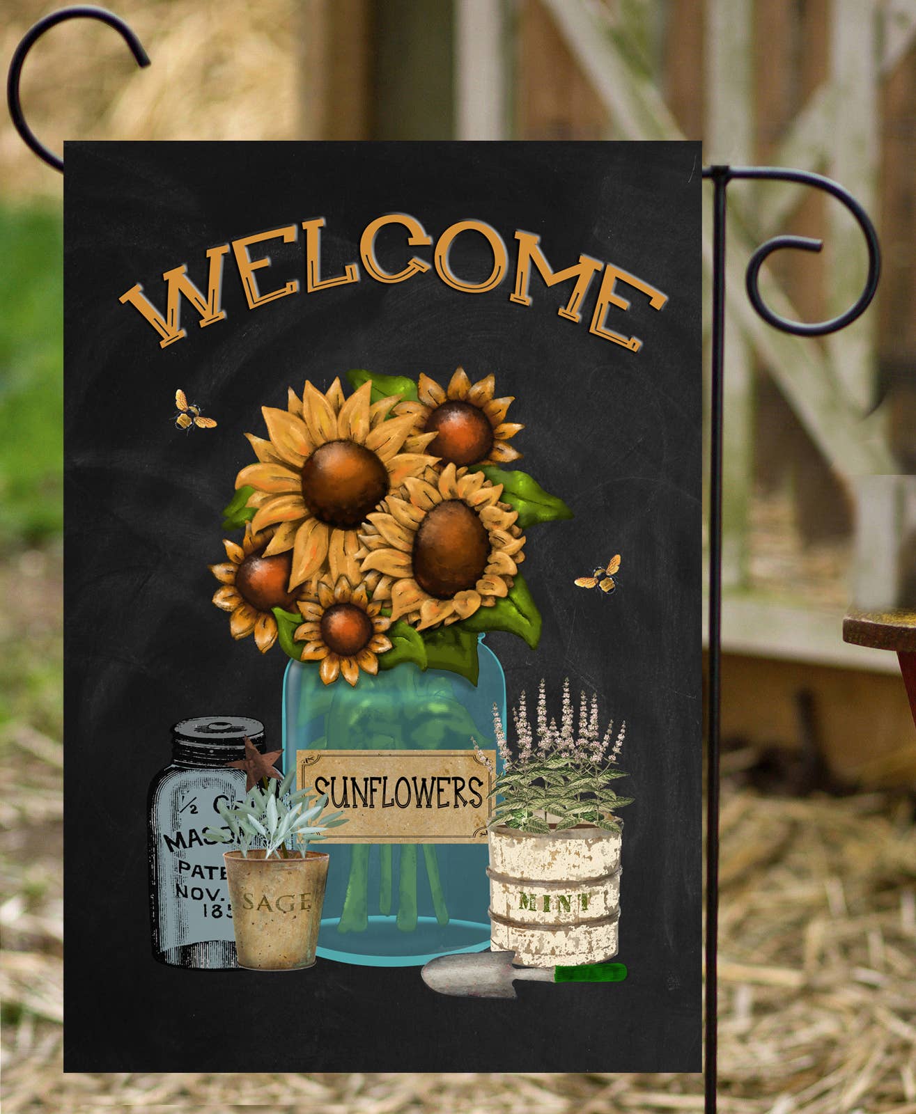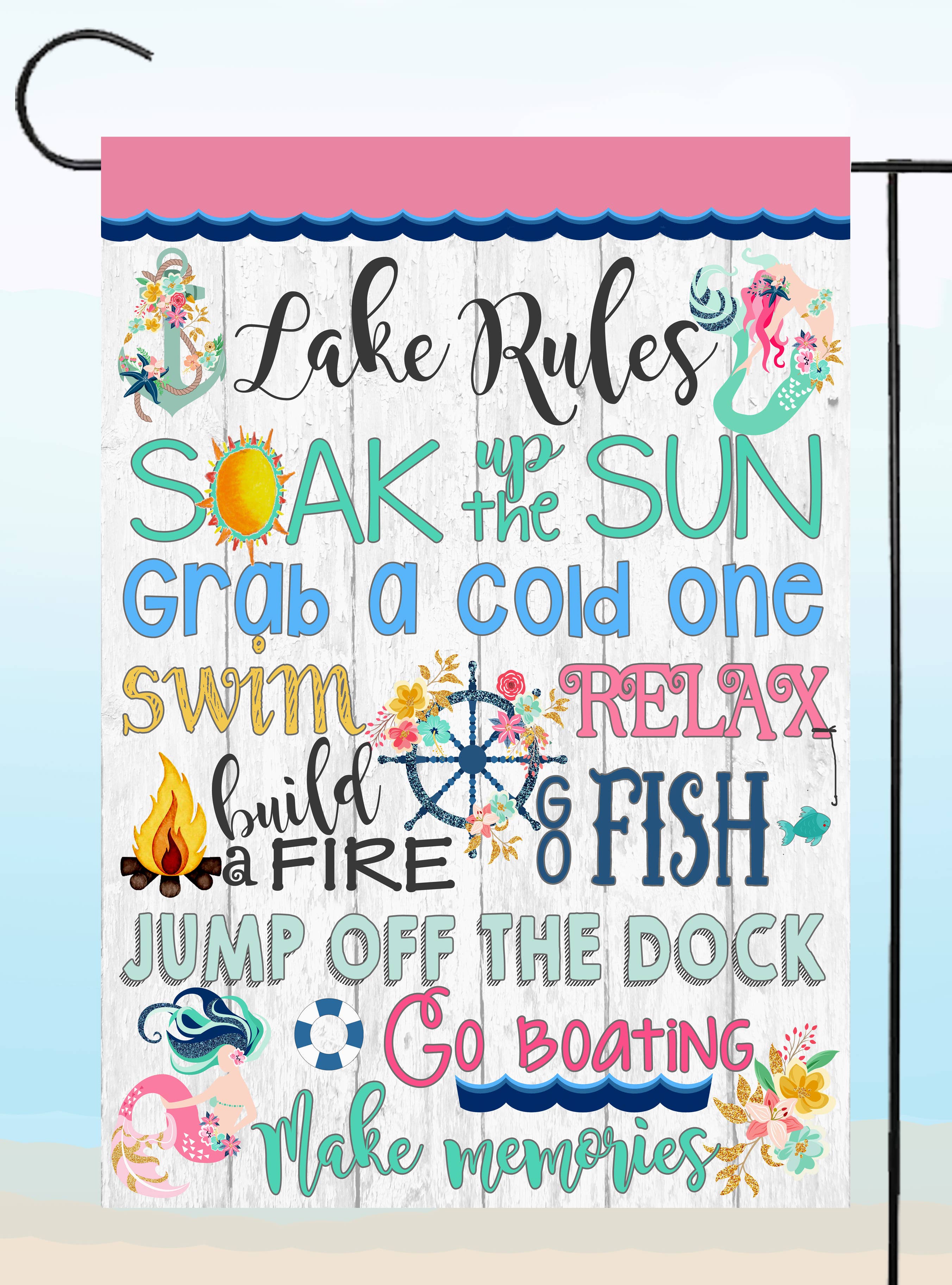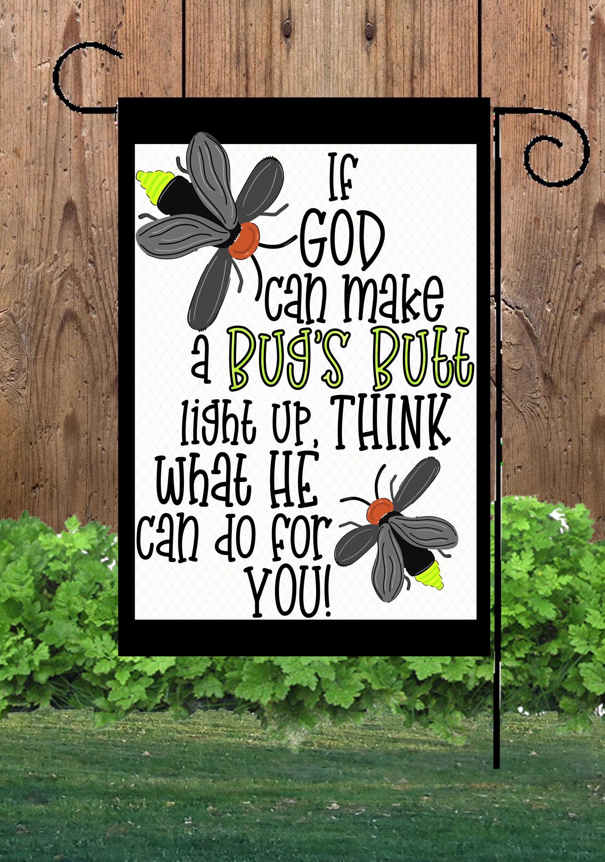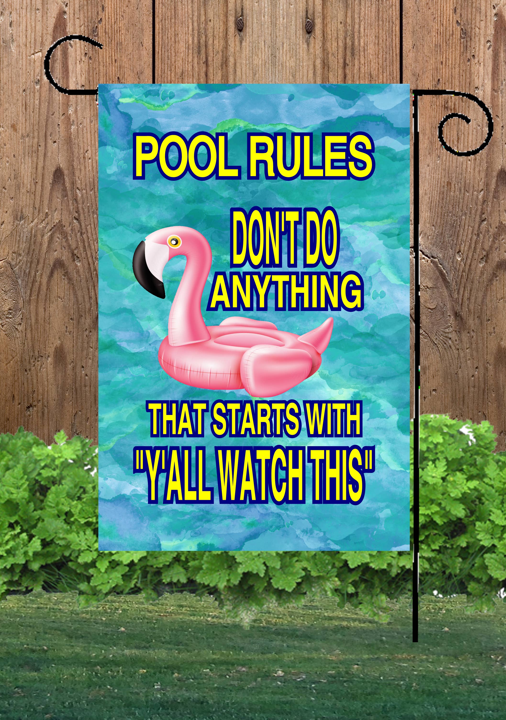 Thank you for stopping by! We are the designer and manufacturer of unique, top quality lawn decor. Our garden flags are standard 12" by 18" long and house flags are 28x40. All of our flags are wind, weather and fade resistant made from heavy polyester and very soft to the touch and will flow gently in the breeze. All of our flags are double-sided so you will see the full image on both sides and are printed by a process called Dye-Sublimation so they will last for years!