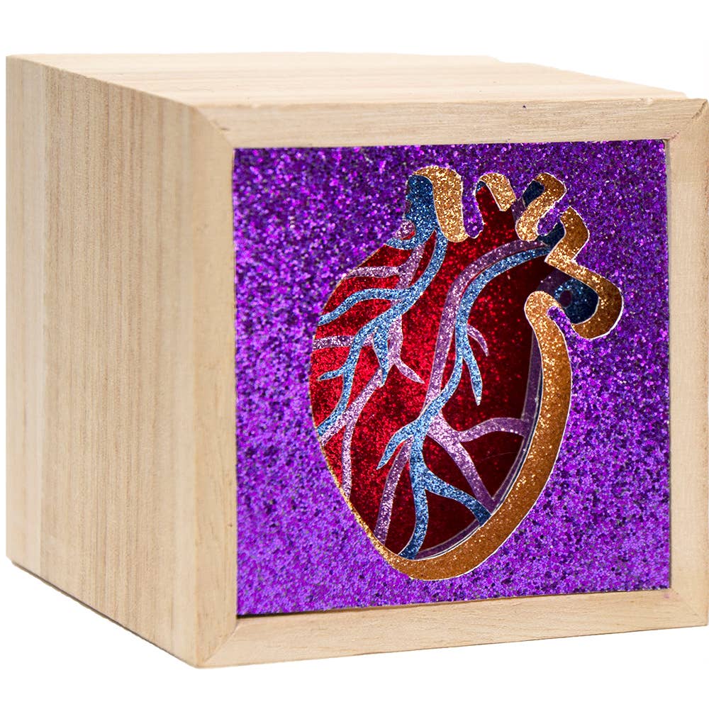 Hannah Chertock is the face behind Bodies Adapt, a multimedia art business exploring concepts of pain, bodies and medical technology. Her inspiration is fueled by her experience with Spondyloepiphyseal dysplasia, a bone condition that causes short stature, chronic pain, and other joint related issues. Her intricate, three dimensional layered paper creations include metallic and glitter renditions of organs. Her work strives to create a sense of awareness and appreciation of our bodies through the experience of art.