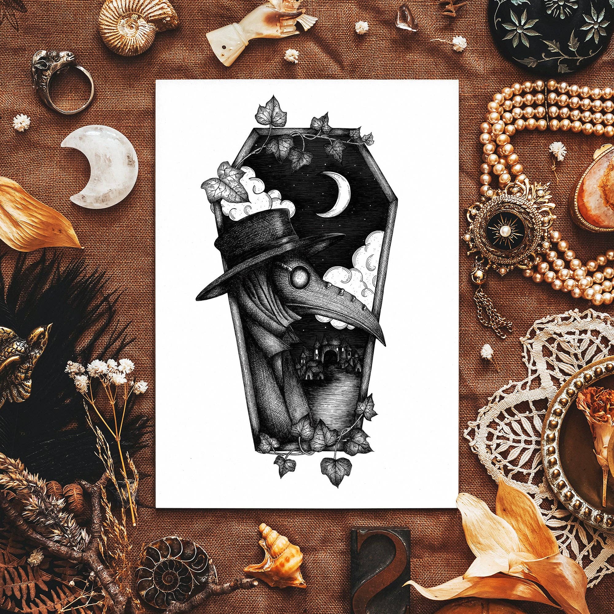 I'm Elyssa Long, a graphic designer and illustrator from London, now living in Nottingham, and the creative behind Print is Dead. Created during my MA in Graphic Design and Illustration at Nottingham Trent University, Print is Dead is a celebration of my love of mythology and gothic imagery, with a side of esoteric symbolism. Most of my work involves pen and ink drawing and digital artwork, exploring the beauty of the macabre, heavily inspired by vanitas and memento mori and drawing on the rich history, mythology and folklore based around the cyclical nature of life and death.