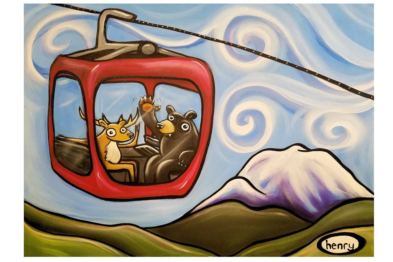 Ryan ‘Henry’ Ward is a Seattle based artist. Specializing in large scale murals, he also has a large body of gallery canvas work. He has painted over 300 murals in the city of Seattle and around the United States and other countries. He is known as Seattle's most prolific muralist and is fast becoming an American art icon. The Henry Brand is an up and coming product line that will brighten your store and add a unique fun flavor of art that is proving to be very successful. Henry’s art appeals to a wide variety of audiences from art lovers to outdoor enthusiasts, from kids to the youthful part in all ages. Our products sell well to both men and women and make great gifts. Most of the products can have souvenir name drops put on them to show off your town, area or state.