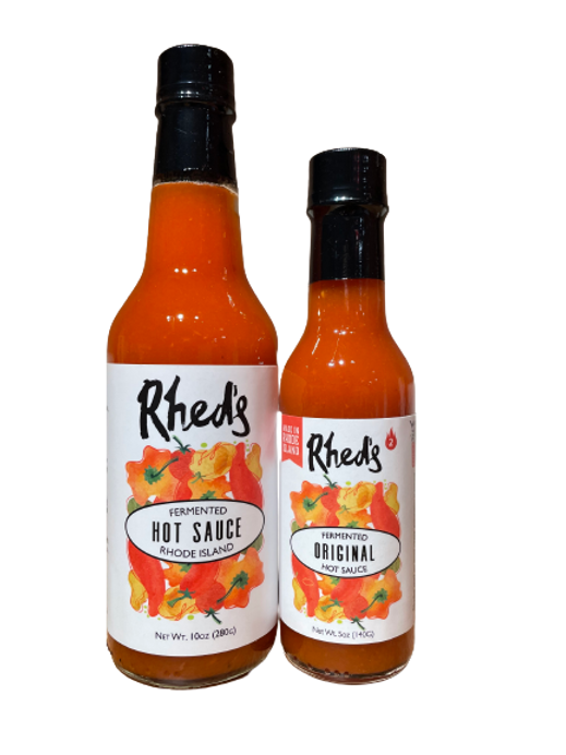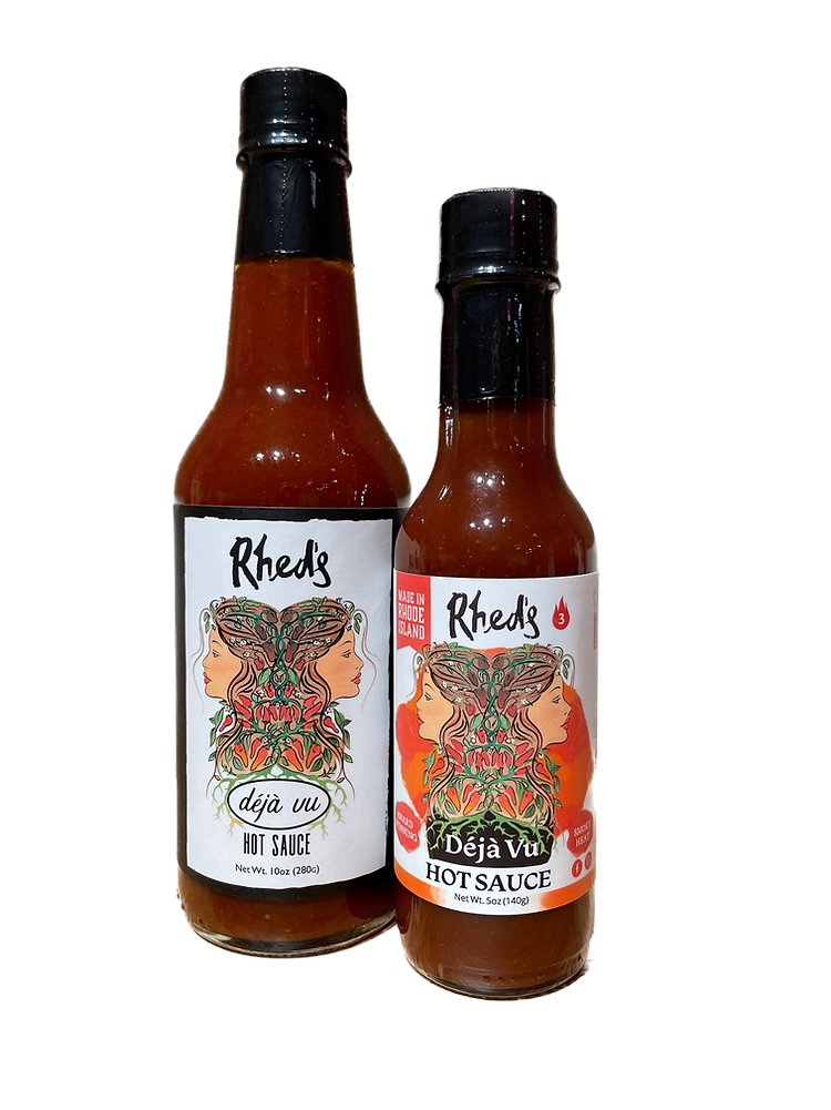Owner & Pepper Head Deja Hart came to love hot sauce while growing up in Southern California. Her true love of hot peppers began when she became the executive chef at a boutique Thai and Indonesian fusion restaurant in Manhattan Beach California where she worked with two wonderful Thai ladies. Upon moving to Rhode Island, Deja's red headed husband Karsten (hence "Rhed's) started a pepper garden in their backyard. Each year, the pepper varieties that they planted became more unique, thus spurring on Deja's goal to create the most flavorful, well balanced hot sauces. Made with peppers and vegetables sourced seasonally from local Rhode Island Farms including: Brandon Family Farm, Lucky Foot Ranch, Matunuck Vegetable Farm, Cedar Valley Farm and Gleaner Gardens. What makes our sauces unique: The chili mash in all of our sauces is fermented for over two weeks before combining with the other ingredients (like changing boring cabbage into delicious sauerkraut but with peppers!). We use lots of fresh vegetables in our sauces (no garlic or onion powders). We take the time to roast fresh garlic, peel and chop onions, carrots, etc...) to create fresh, flavorful, well balanced sauces. No Gums or Fillers. Crafted By Chefs for layers of flavor, not just heat!