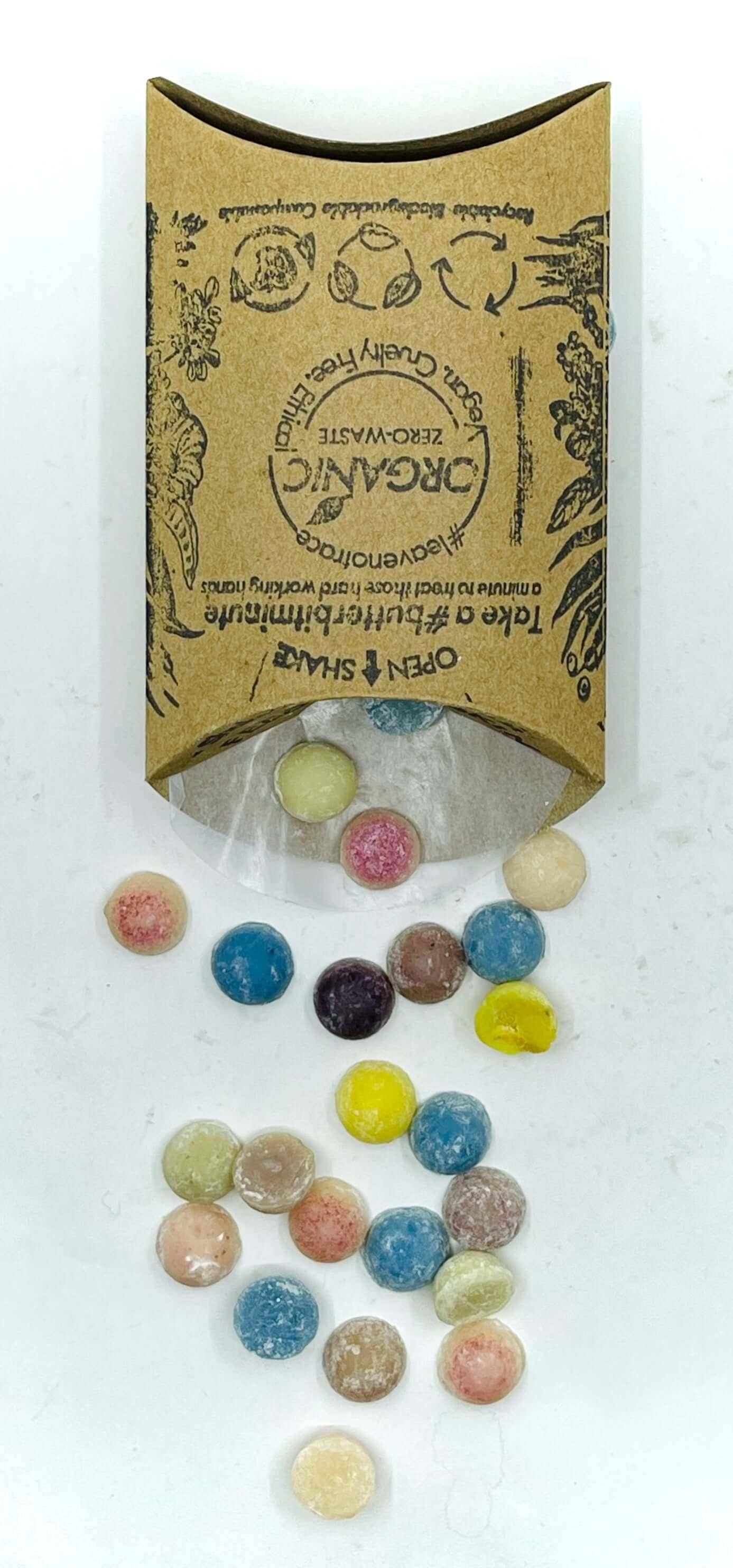 The luxurious feeling of slathering on rich body butter, but on your hands! Butter Bits are tiny single portioned hard lotion bars and are thicker and more moisturizing than body lotions. Take a minute out of your busy day for a little pampering and self-care. Use right after washing hands to lock-in moisture. Butter Bits heal your dry over-washed hands. A mix of plant butters with organic seed, mineral and essential oils infused with medicinal plants. Butter Bits aims to reduce the most amount of plastic, packaging and product waste by replacing ubiquitous non-durable consumer goods with affordable zero-waste options; therein, making it easy for customers to make the eco-friendly choice by improving quality, functionality and cost. Replace your plastic hand cream or lotion tubes with zero-waste sustainable Butter Bits.