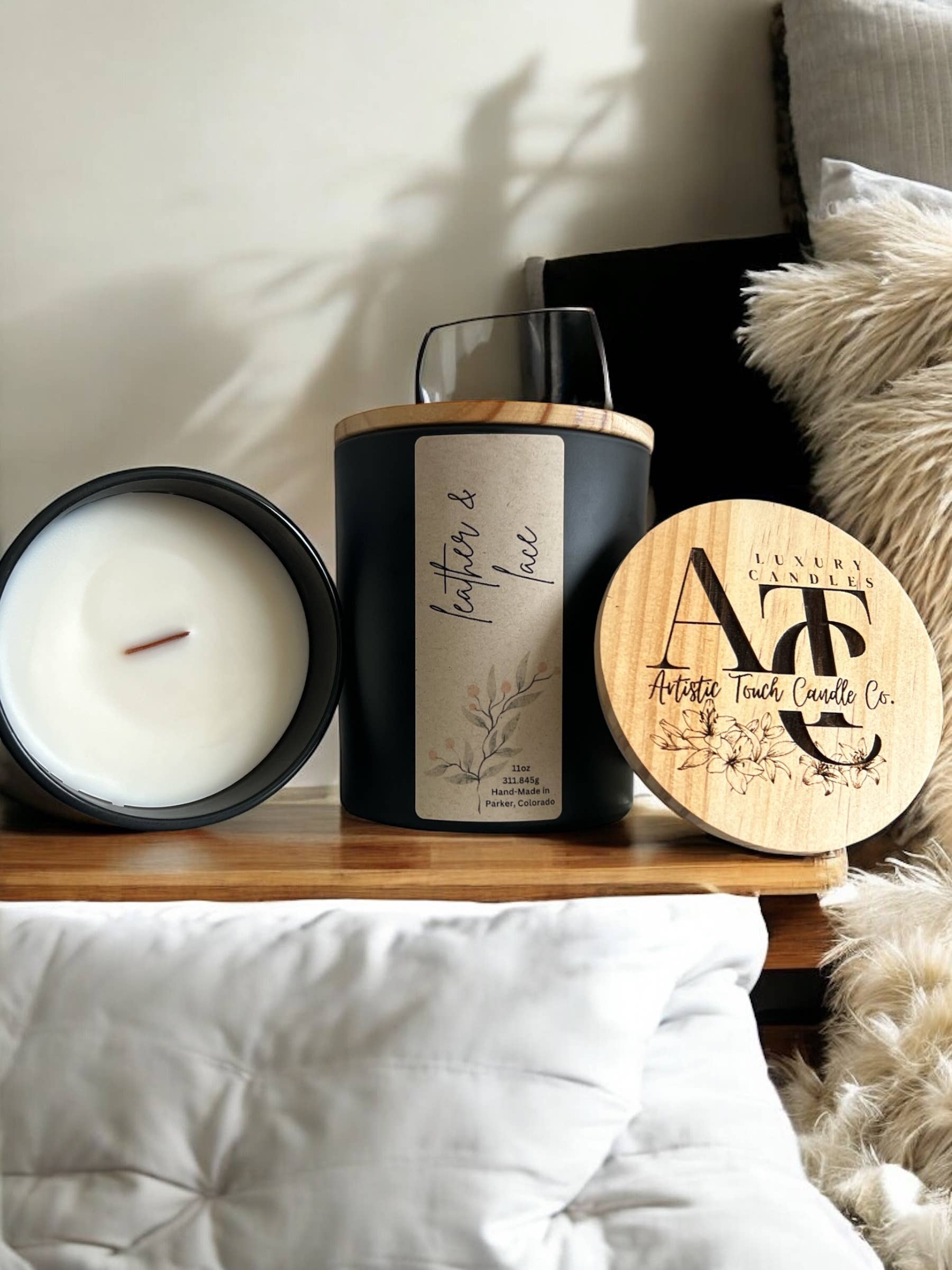 Welcome to Artistic Touch Candle Company. We are based out of Parker, Colorado. We offer handmade candles with cedar wood wicks. Our candles are made with soy blends, and the finest fragrance oils. We also, offer custom engraving of your logo to the wooden lid. This adds an elegant look to your candles.