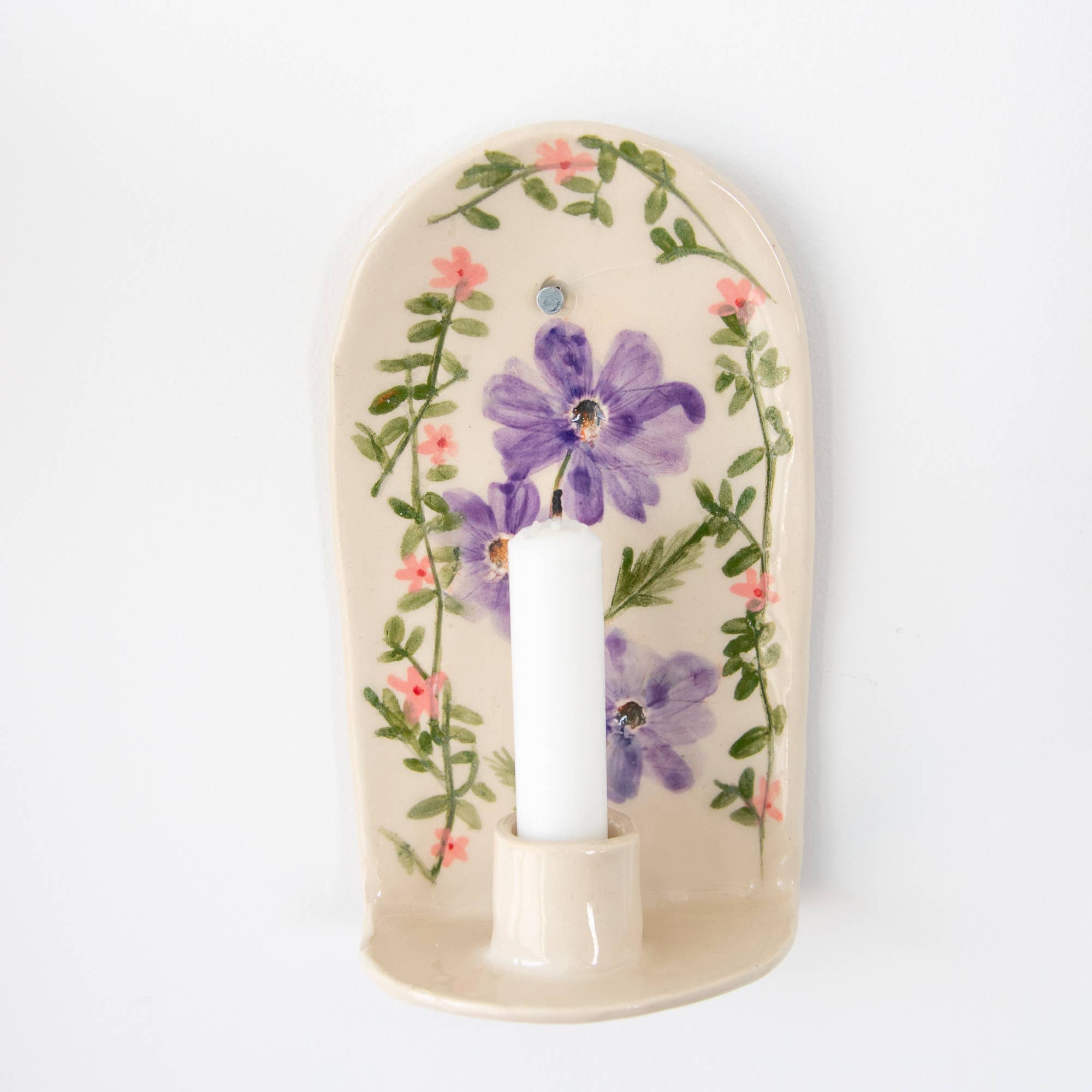 Pressing flowers into clay helps me makes sense of the changing seasons around me. Working with seasonal flowers and plants, helps me adjust to my life in the NorthEast part of America. My work involves pressing real leaves and flowers in clay. Once they burn out I paint each fossil with underglaze colors and glazes to bring them back to life. Often times I will incorporate puns and illustrations into my work depicting my love for language and/or places I have been to. Each piece aspires to bring joy to someone's life, akin to that got walking on a mountain trail on a spring morning and occasionally peering into a clearing to see a special flower that would probably be in a manicured garden. :) Come-- Walk the trail with my work. Allow yourself to stop and enjoy the wildflowers, the sound of the rustling leaves and smile for the things you might normally overlook.
