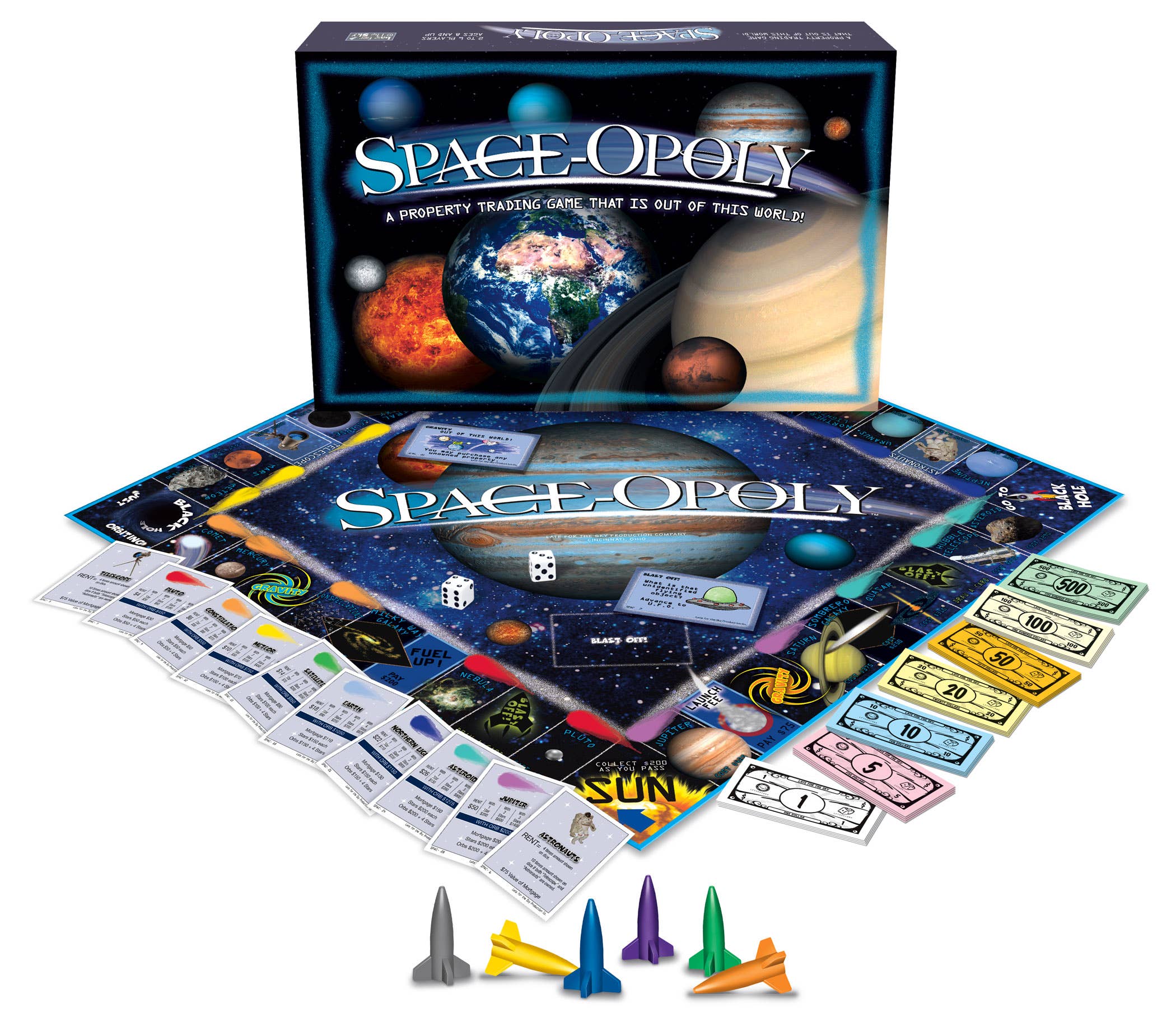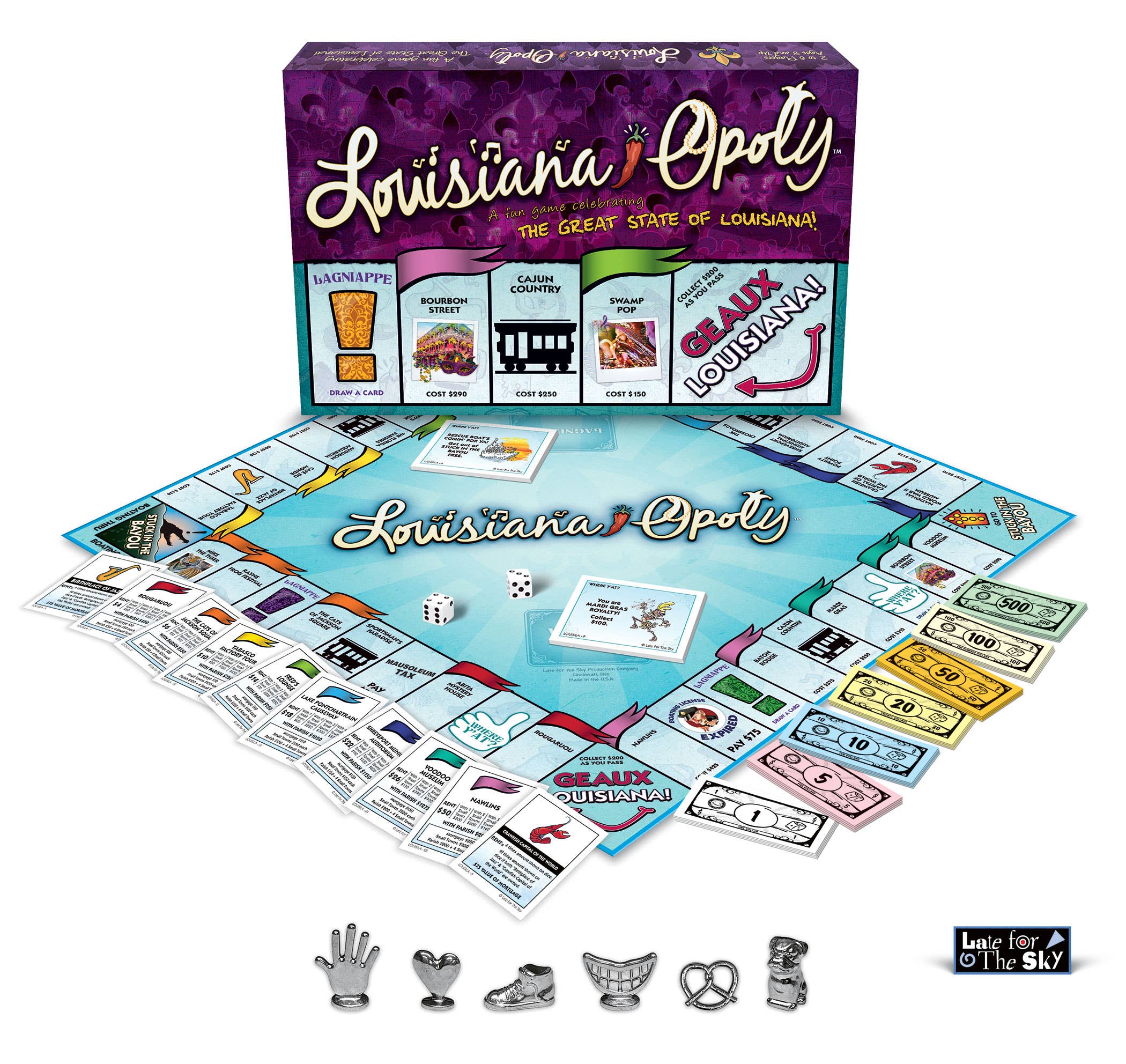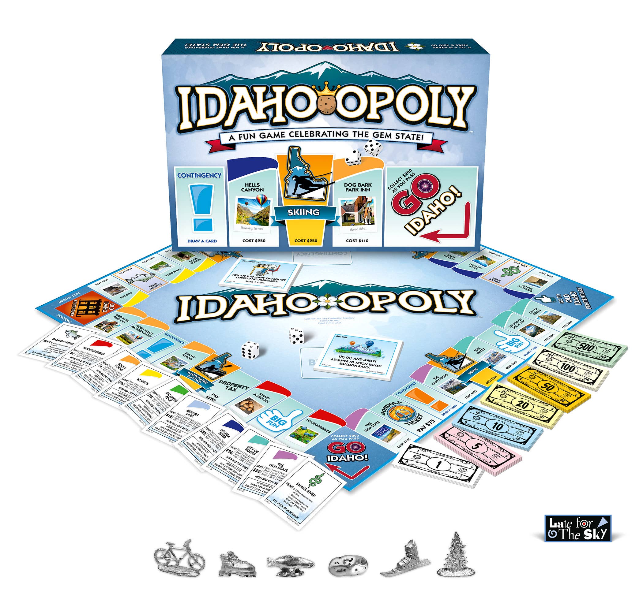 LATE FOR THE SKY PRODUCTION COMPANY has been the leading producer of Custom OPOLY style games for over 40 years. Located in Cincinnati, Ohio, we handle all game manufacturing in one 60,000 sf manufacturing location. Additionally, we have a 50,000 sf warehouse and distribution facility. Game design, original art, printing, card cutting and collating, game board mounting and die cutting, set up box making, total assembly and fulfillment are all services offered under one roof. Our game parts of the money tray, plastic property upgrades and metal tokens are all made domestically, mostly locally. There are no dice manufacturers in the U.S. – dice are purchased in bulk and they are only imported item in our games. GAMES SOLD AT RETAIL is a major part of our business. In addition to Custom OPOLY games, Late for the Sky is the manufacturer of hundreds of well-known games that sell in retail stores across the U.S., Canada and Europe. Our wide variety of titles are specifically targeted to all sorts of interest. There is a long list of games covering specific cities, states, countries, colleges, holiday celebrations, animals, lifestyle interests, food, drink...the list goes on and on. There is a lot to talk about. Please call Ellen or Michael at 800/422-3434 and let’s start a conversation. Ellen Fakes – efakes@lateforthesky.com Michael Schulte – mschulte@lateforthesky.com