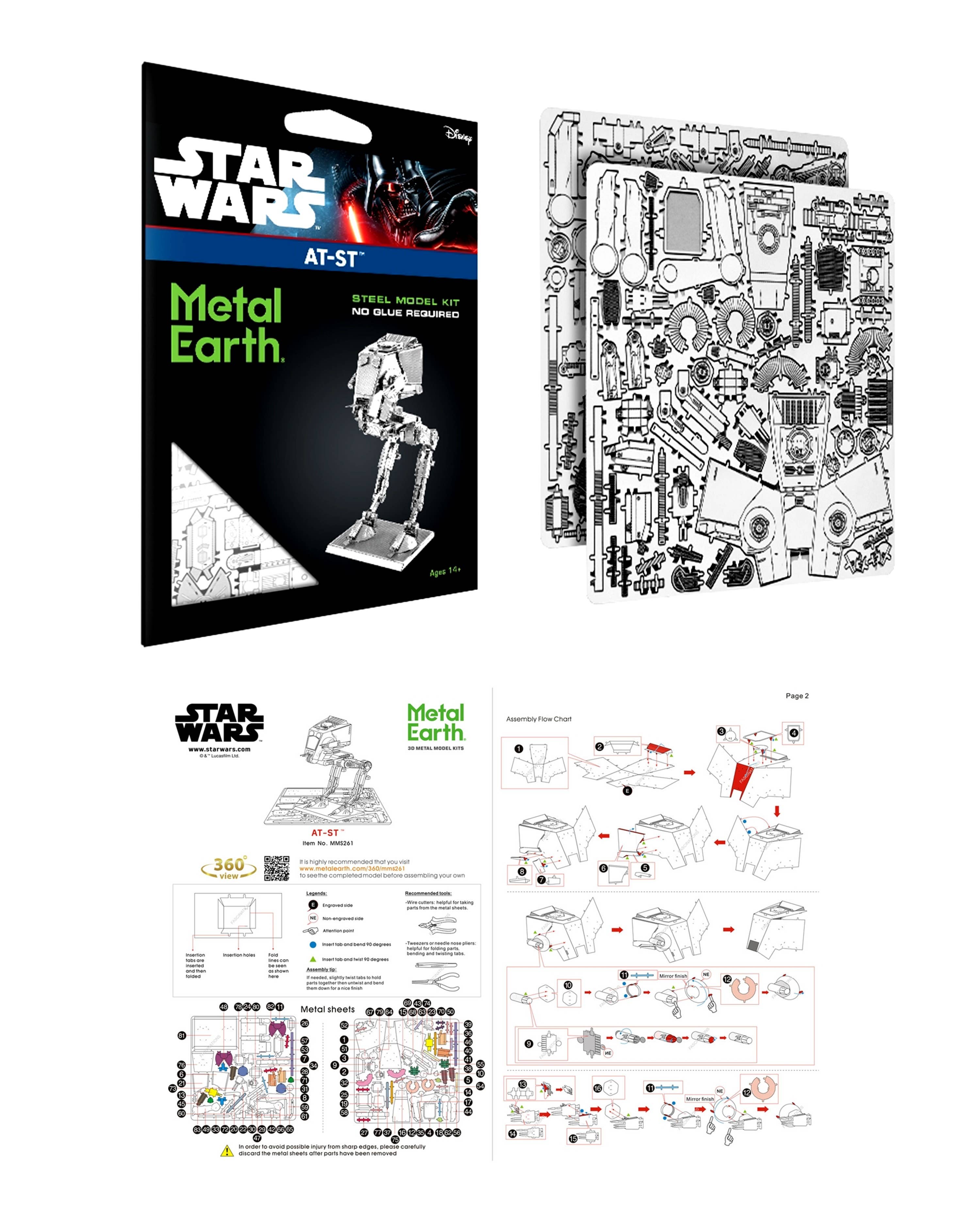 Fascinations Metal Earth is the leading brand for 3D metal model kits. Beginning as flat metal sheets that you build into your very own masterpiece! Metal Earth has developed an extensive collection of over 300 unique designs! We have a design for everyone! To build Metal Earth model kits, you begin with sniping the pieces from the flat steel sheets using the numbered legend. Bend the tabs through corresponding connection points using tweezer or needle nose pliers. Follow the assembly flow chart with detailed images on how to create each piece and assemble the model.
