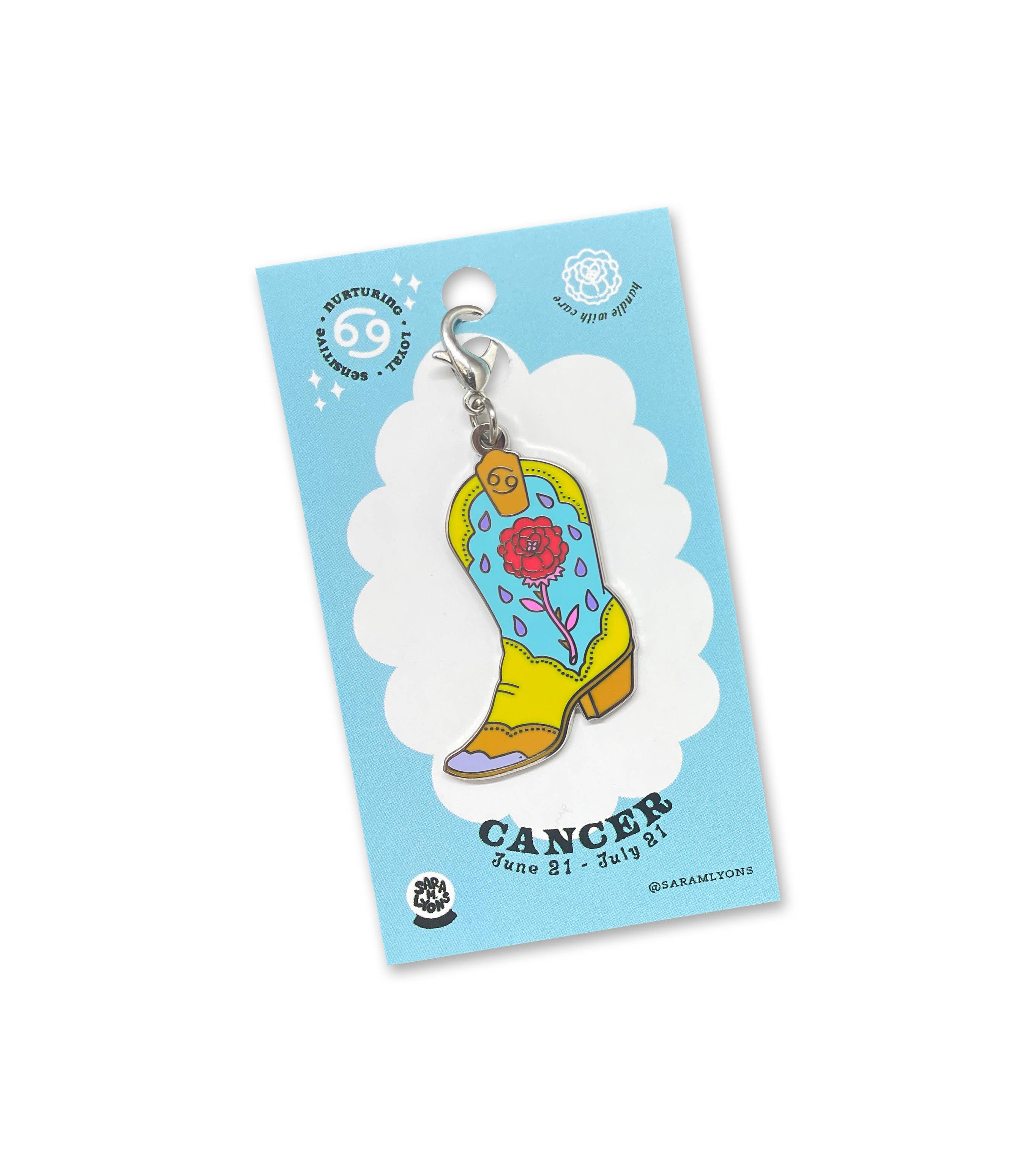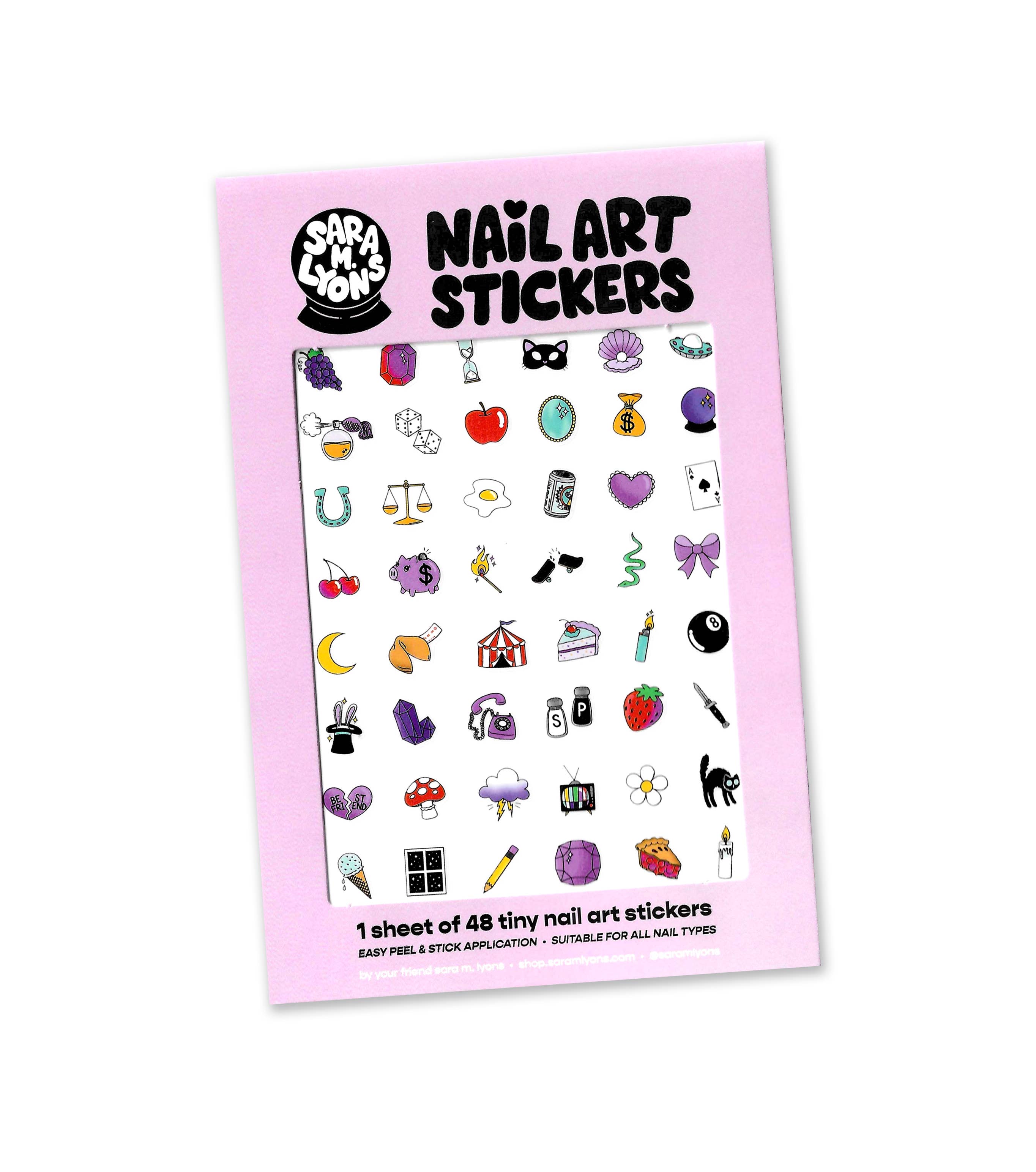 Southern California-based artist and illustrator Sara M. Lyons delights in turning her cute, colorful drawings into whimsical objects with practical application and magical intentions. Her references are as varied as her creations, as she's inspired by everything from '90s nostalgia and kawaii culture to the SoCal skate scene, punk rock, the oracular arts, and everything in between. From acrylic hair clips and enamel charms to spirited stickers and scratch-off oracle cards, Sara's world is spirited, thoughtful, and totally one-of-a-kind!