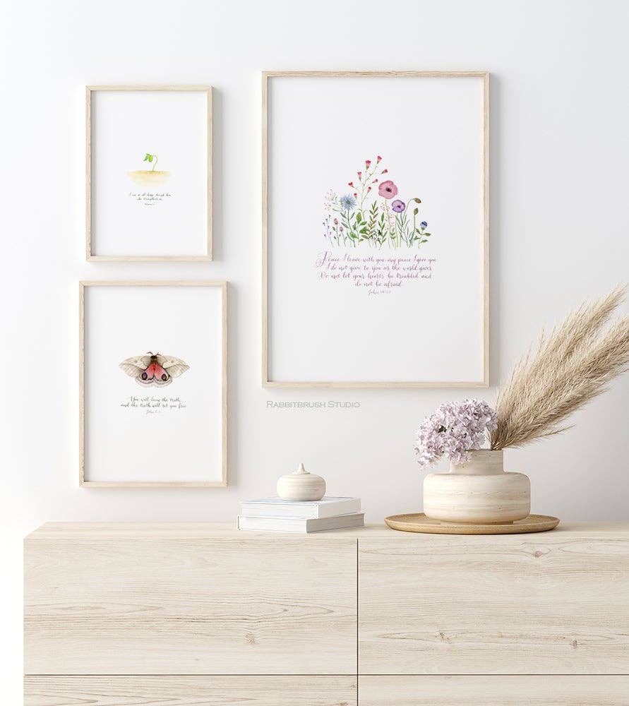 We started Rabbitbrush Studio in 2020. We are sisters and loved making things together since we were little girls. We made clothes for our dolls, houses for our imaginary puppies, and many other fun creations. We loved to make beautiful things with our hands, so naturally we both studied fine arts in college in South Korea.    Now we both became moms and still have the same passion for creativity. Like our childhood, we have been wanting to be a team again. We started to think about what we have in common, and what makes us happy. We realized two important things: First, we both like to share and give handmade gifts. Second, the Bible is always a source of comfort and joy. This led us to create scripture wall art which merged our unique gifts and desires. It has been a wonderful joy as we embark on a path that allows us to create the things we love, and also spend quality time with God through His word and creation.   All our products are hand written and painted as an original artwork first and then turned into prints. As we developed our products, we already have various collections : greeting cards, scripture art, art prints, milestone card, magnets, and bookmarks. We are planning to launch many more new products in 2022. We hope our artwork brings many people as much joy and peace as it does for us.