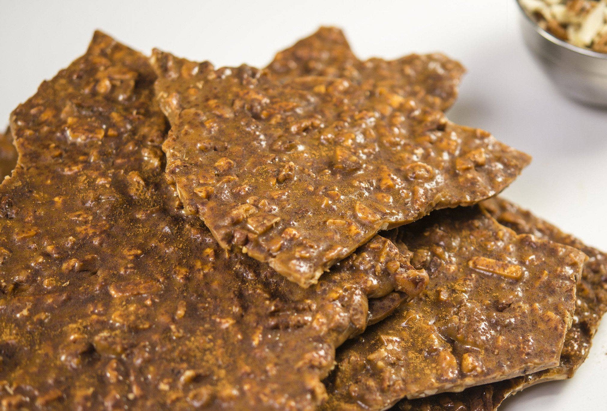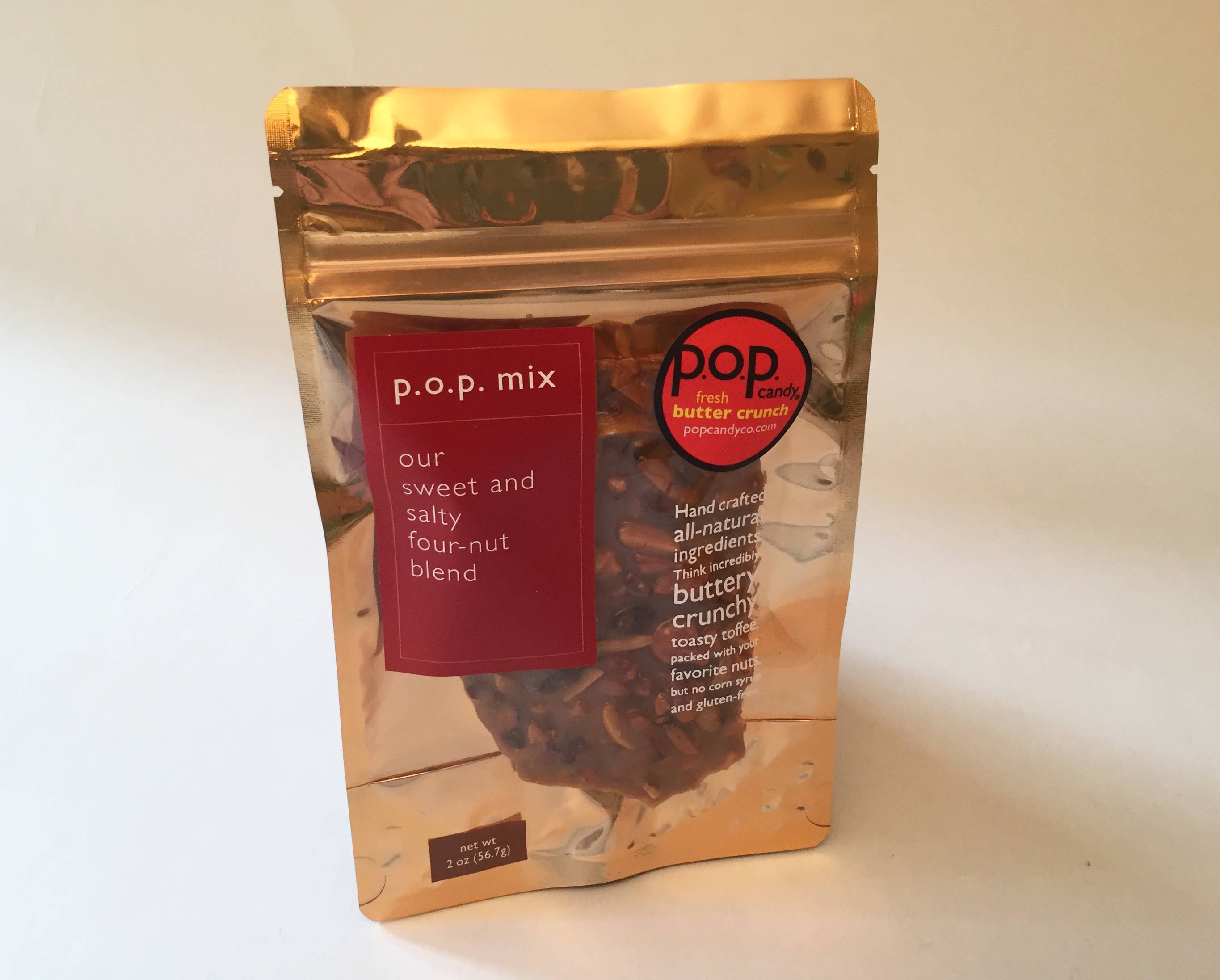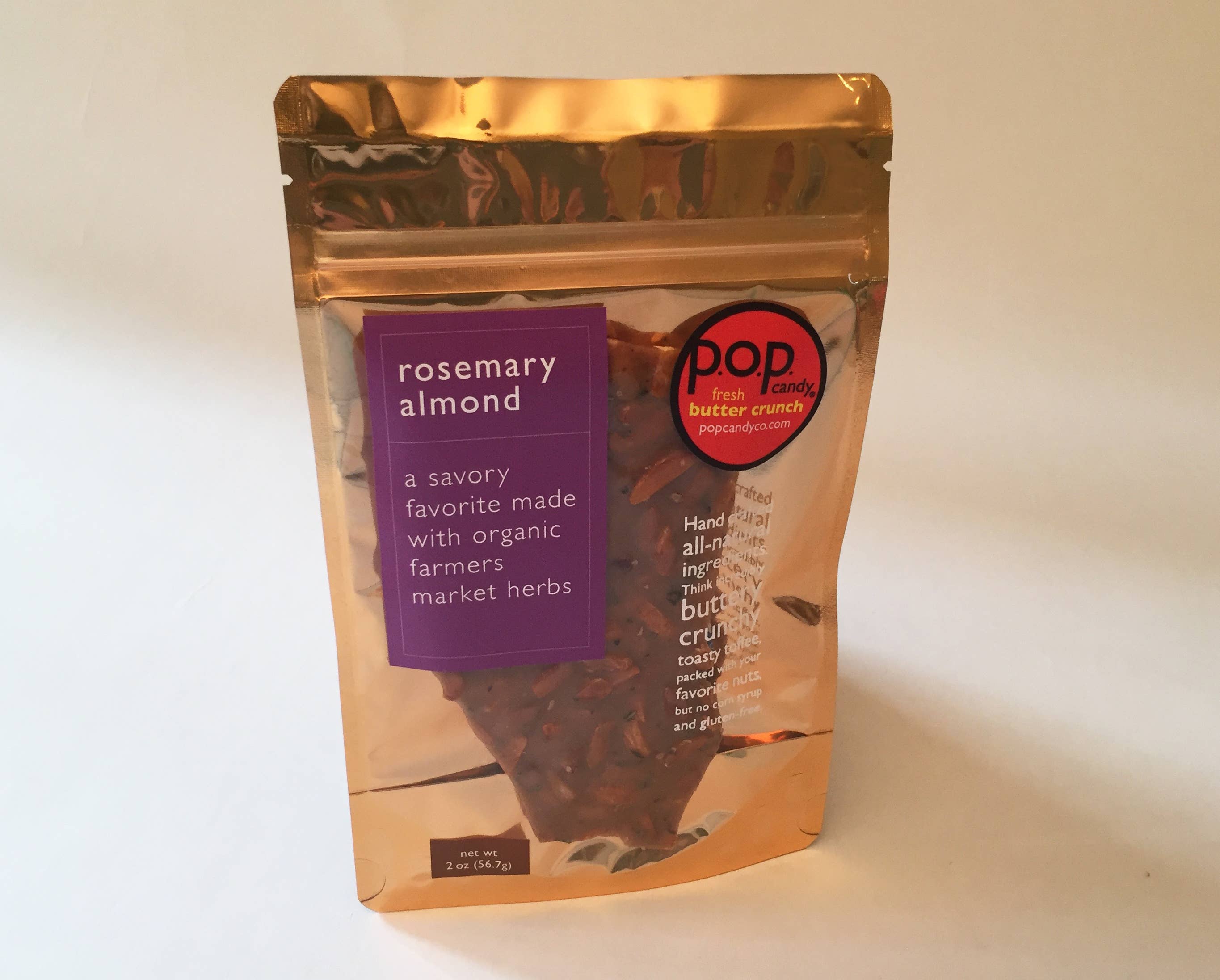 Our fresh butter crunch is a packed with premium nuts and handmade in small batches using real, clean ingredients like farmers market herbs, fine spices, and all-natural extracts. We make p.o.p. with an uncompromising commitment to create exceptional flavor experiences and bring customers confident classics as well as inventive and delish savory and sweet fan favorites. Corn syrup free, gluten free, soy free, peanut free. Bringing the kind of pleasure that people can't stop devouring!