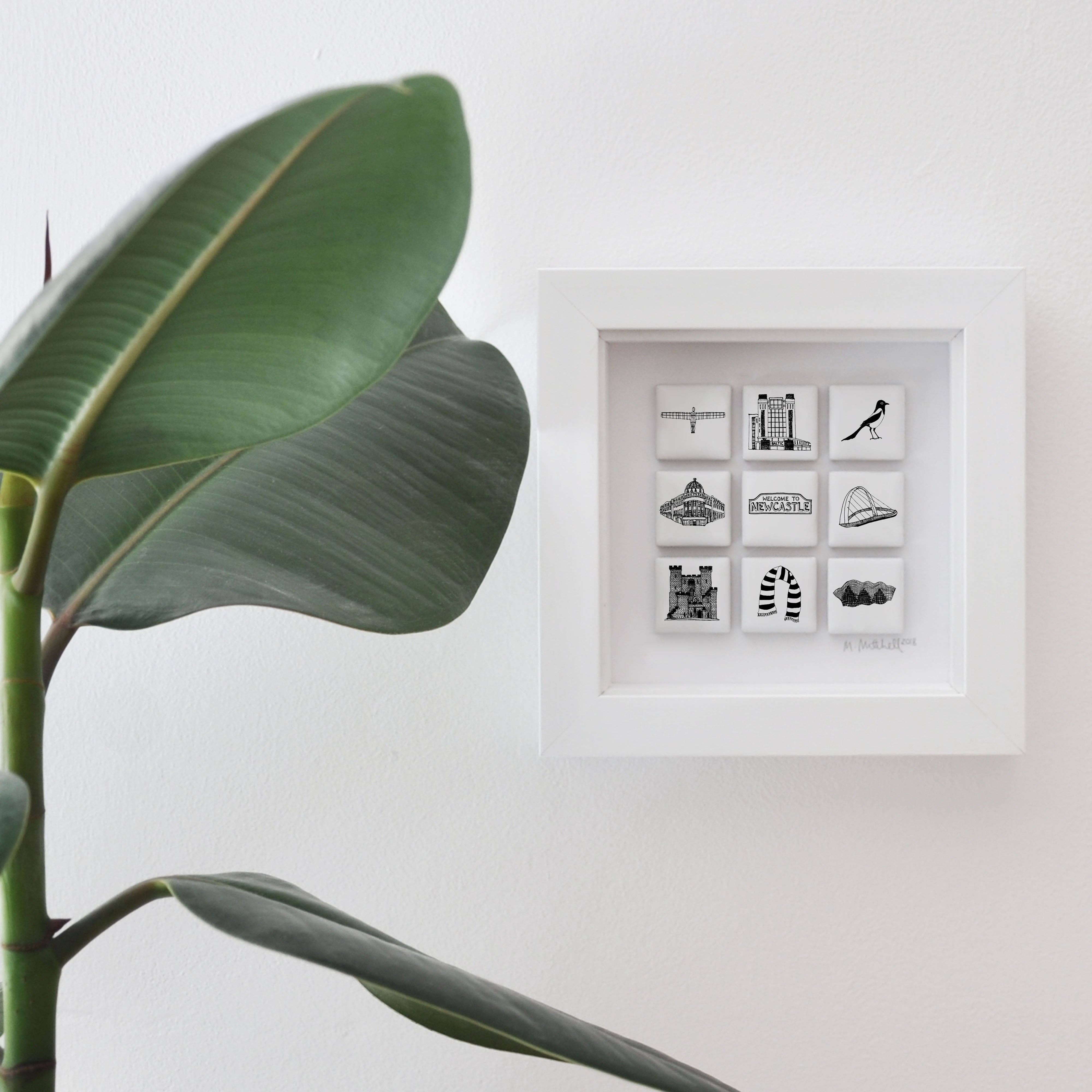 Martha works from a converted mews studio in the heart of Brighton where she draws amazingly detailed fine-line images of famous icons, places, foodstuffs, sporting activities etc with a 0.005 pen! And these miniature drawings are then applied to fine bone china, textiles, paper and other materials creating a unique range of black and white merchandise. City ranges include Brighton, London, and Liverpool plus British and Scottish themed products. There are also designs using food packaging and biscuits as well as sports and pastimes, which are really popular on the cufflinks. The product range is extensive, from fine bone china mugs and jugs and 100% cotton tea-towels and aprons, to cufflinks, badges, prints and stationery. Particularly unusual products are the tile frames of 9 or 16 individual small tiles depicting individual drawings of city scenes and icons. And Martha’s unique style and ability to draw almost anything, has led to a huge increase in the personalised merchandise, particularly the tile frames which are proving to be very popular for the ‘noughty’ birthdays, Weddings and Birth Announcements.