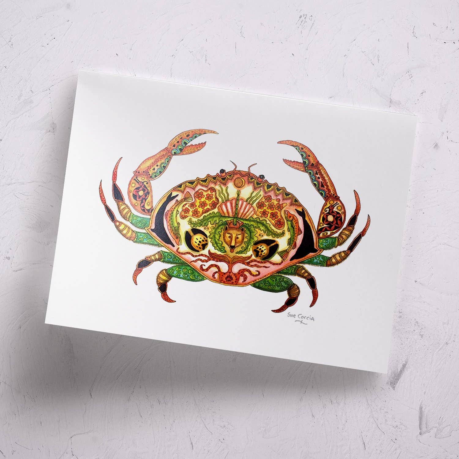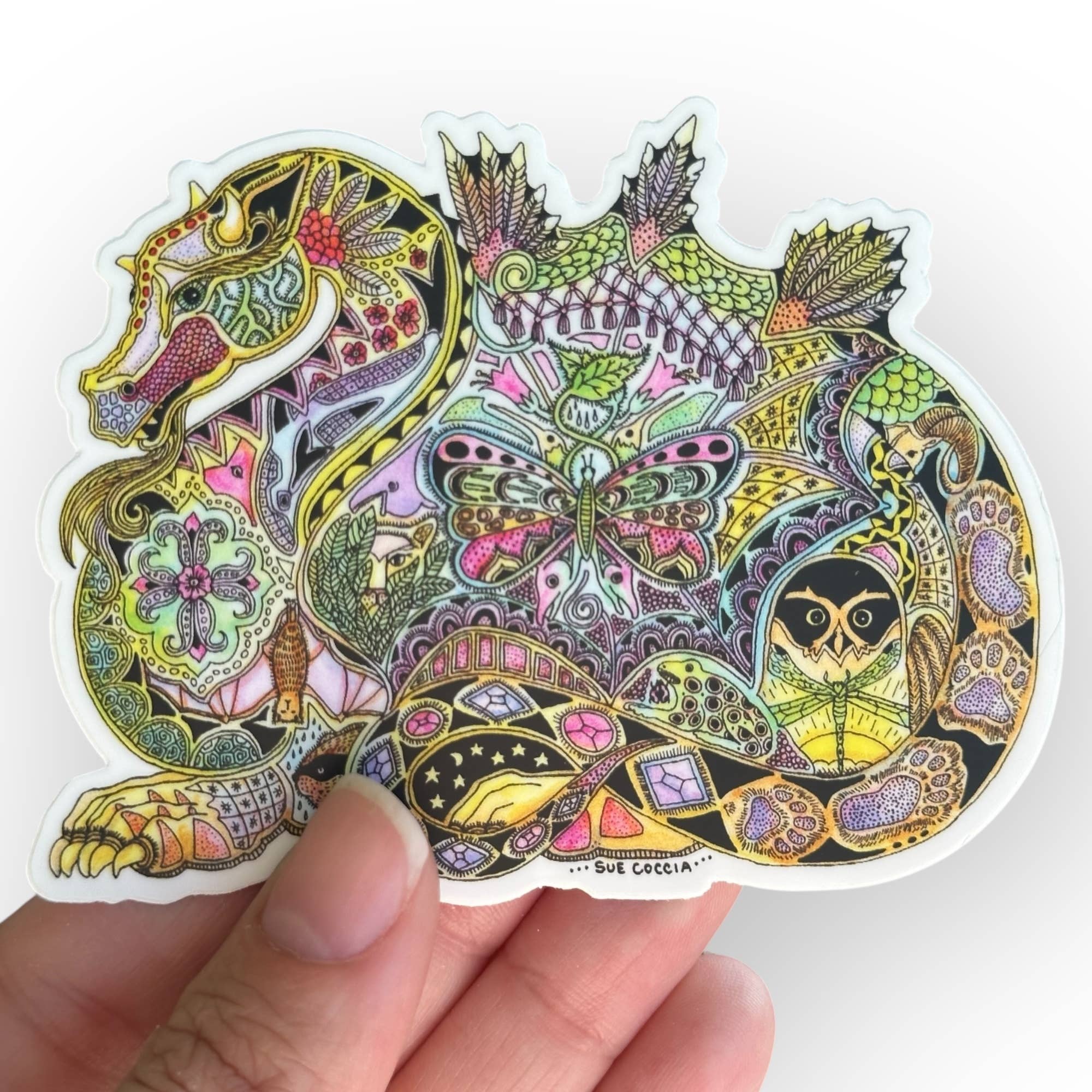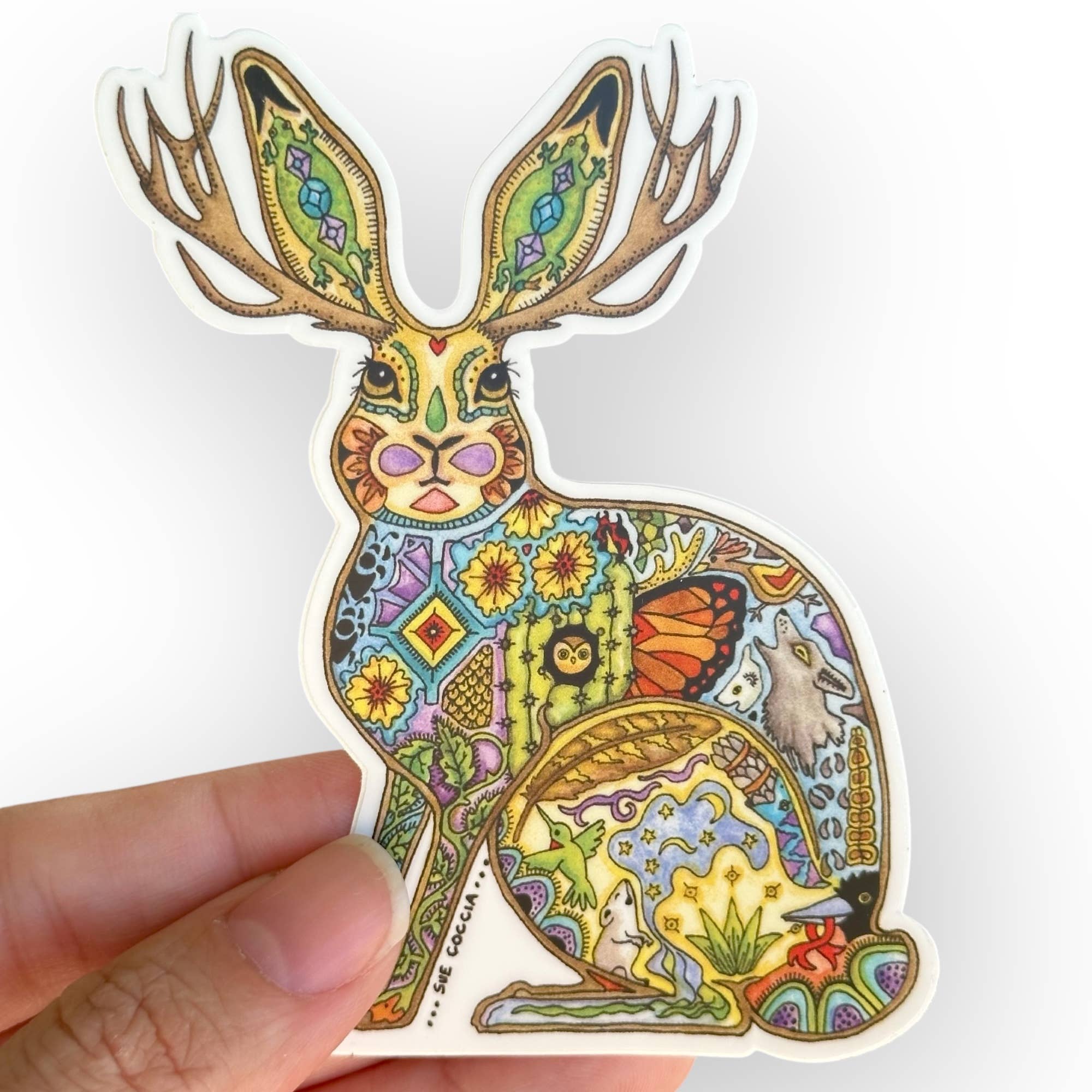 Northwest artist Sue Coccia is from Edmonds, Washington. She has a formal art background, however it is a deep love of all animals that sparks her work with a unique style. She started selling her art in 1996 as EarthArt International with a portion of her proceeds being donated to wildlife conservation organizations. Her Animal Spirits are inspired drawings in pen and ink, then meticulously painted with acrylics. The drawings depict animals from around the world. The images reflect a deep spirituality, and when we begin to understand and respect their individual qualities and strengths, we realize we are all connected.