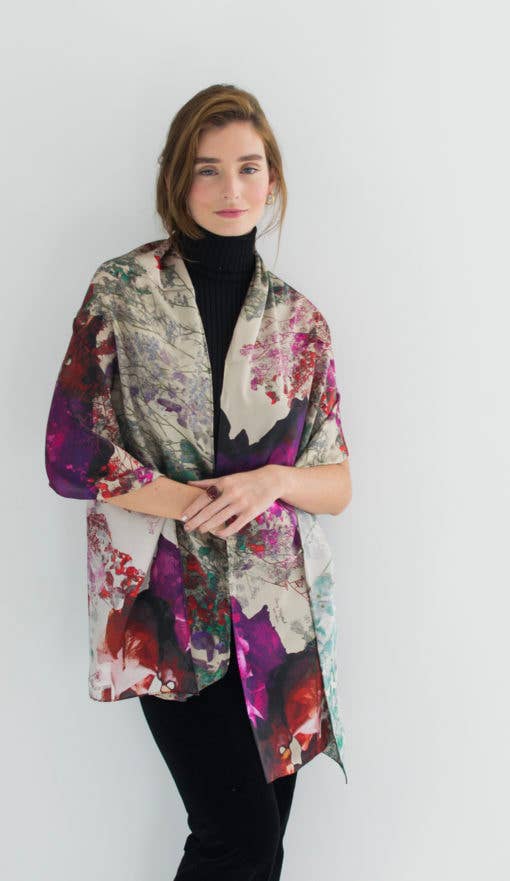 Saz Mifsud is a painter and designer from the Mediterranean island of Malta whose dream is to turn colourful works of art into bold, beautiful women’s accessories. Starting out as a painter, Saz longed to see the rich colours she’d produce in her artworks on the clothes she wore. This inspired her. She started creating digital collages using her own photos and paintings. She then digitally printed her designs onto pure silk and was blown away by the richness of the colourful silks. Once the designs are printed, the silks are beautifully hand-crafted to create a colourful range of scarves, clutch bags, headbands and silk jackets. In 2019 the brand partnered up with a renowned leather-printing company in New York and introduced its idiosyncratic designs on leather handbags and purses.
