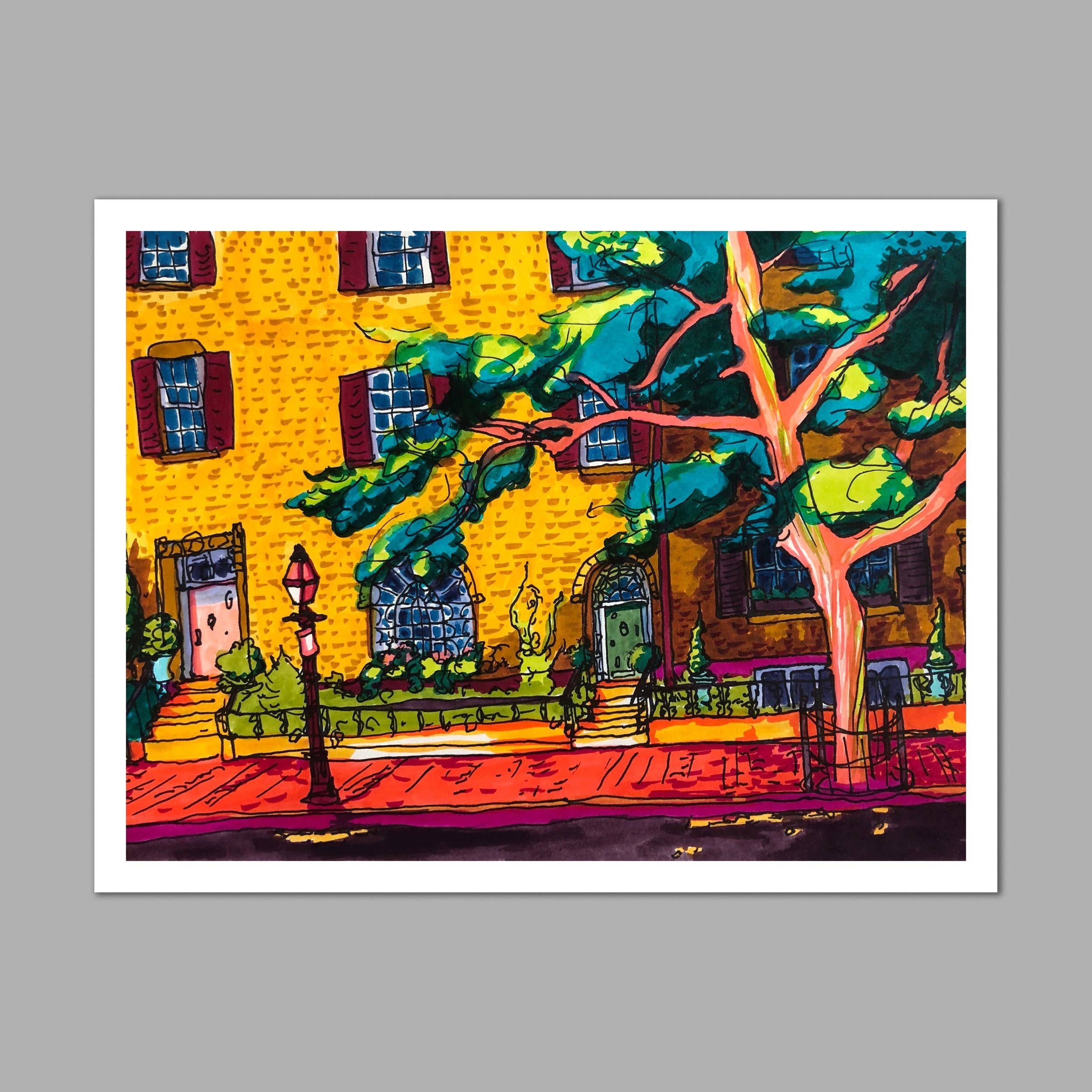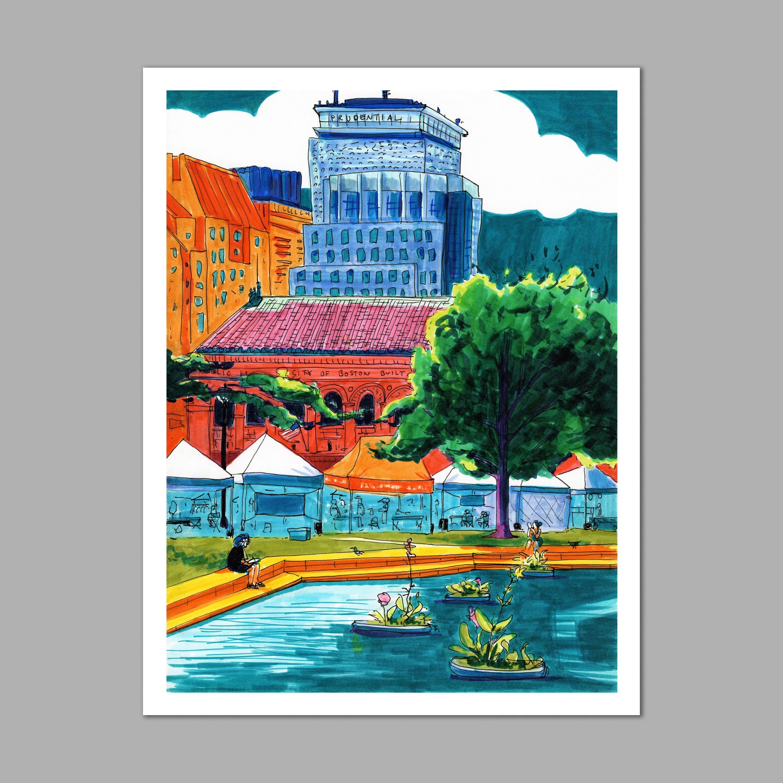 Hi, I’m Stephanie! I’m an illustrator and designer based in Somerville, MA. Inspired by connecting with the small moments of everyday life, I draw local places from observation. I love to illustrate every detail that makes a place feel like home, from cool trees to messy telephone poles, so that each drawing feels like a whimsical photograph of that specific time and place. My drawings are characterized by free-handed outlines drawn directly onto the paper in pen and colored in bright marker. I’ll draw from anywhere, in rain or shine, from a bench or a curb, standing in a crowd or sitting on a cold rock alone in a forest. Using playful saturation and unexpected color, I seek to find the heart, joy, and nostalgia in the places and objects we look at every day. I hope you find your favorite place in my drawings!