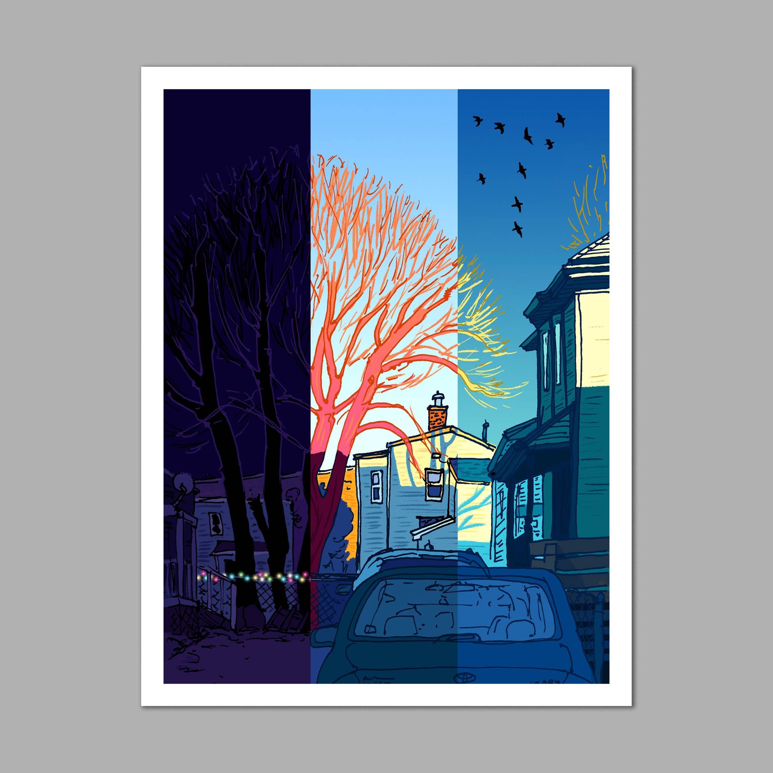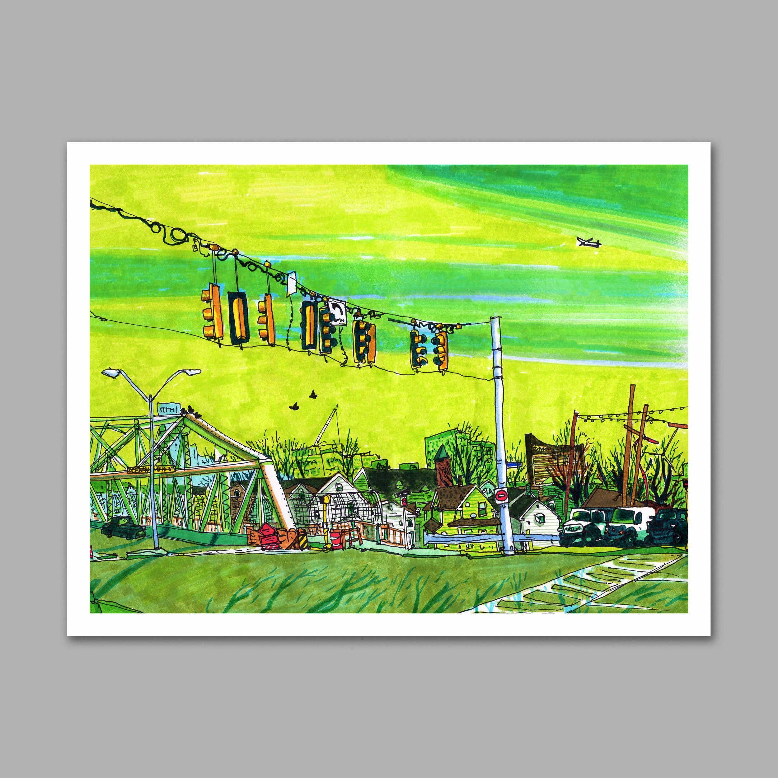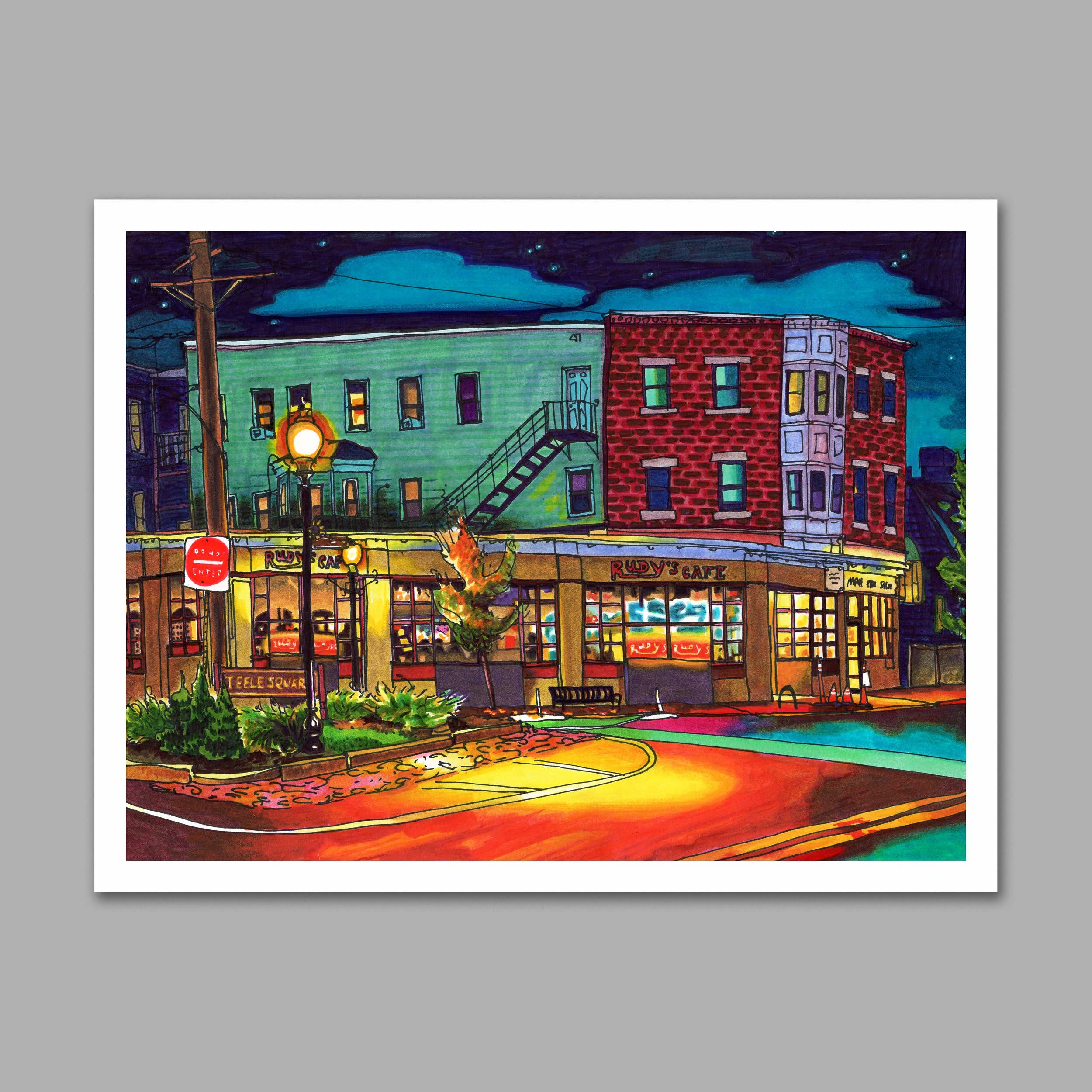 Hi, I’m Stephanie! I’m an illustrator and designer based in Somerville, MA. Inspired by connecting with the small moments of everyday life, I draw local places from observation. I love to illustrate every detail that makes a place feel like home, from cool trees to messy telephone poles, so that each drawing feels like a whimsical photograph of that specific time and place. My drawings are characterized by free-handed outlines drawn directly onto the paper in pen and colored in bright marker. I’ll draw from anywhere, in rain or shine, from a bench or a curb, standing in a crowd or sitting on a cold rock alone in a forest. Using playful saturation and unexpected color, I seek to find the heart, joy, and nostalgia in the places and objects we look at every day. I hope you find your favorite place in my drawings!