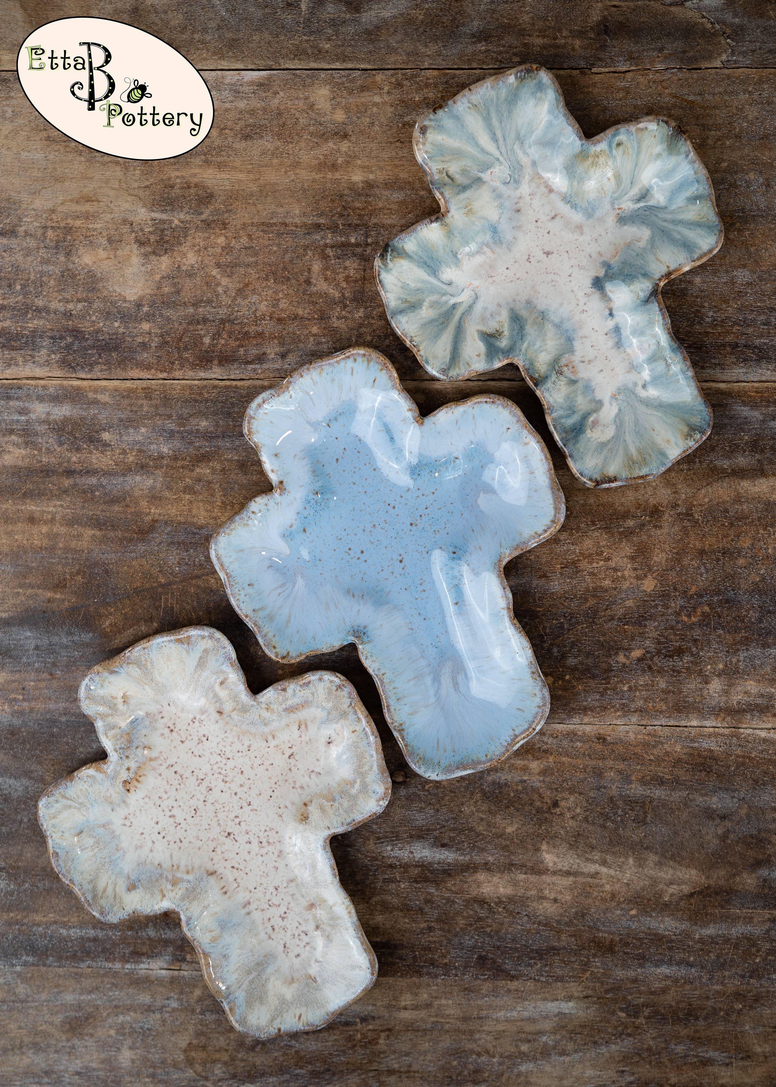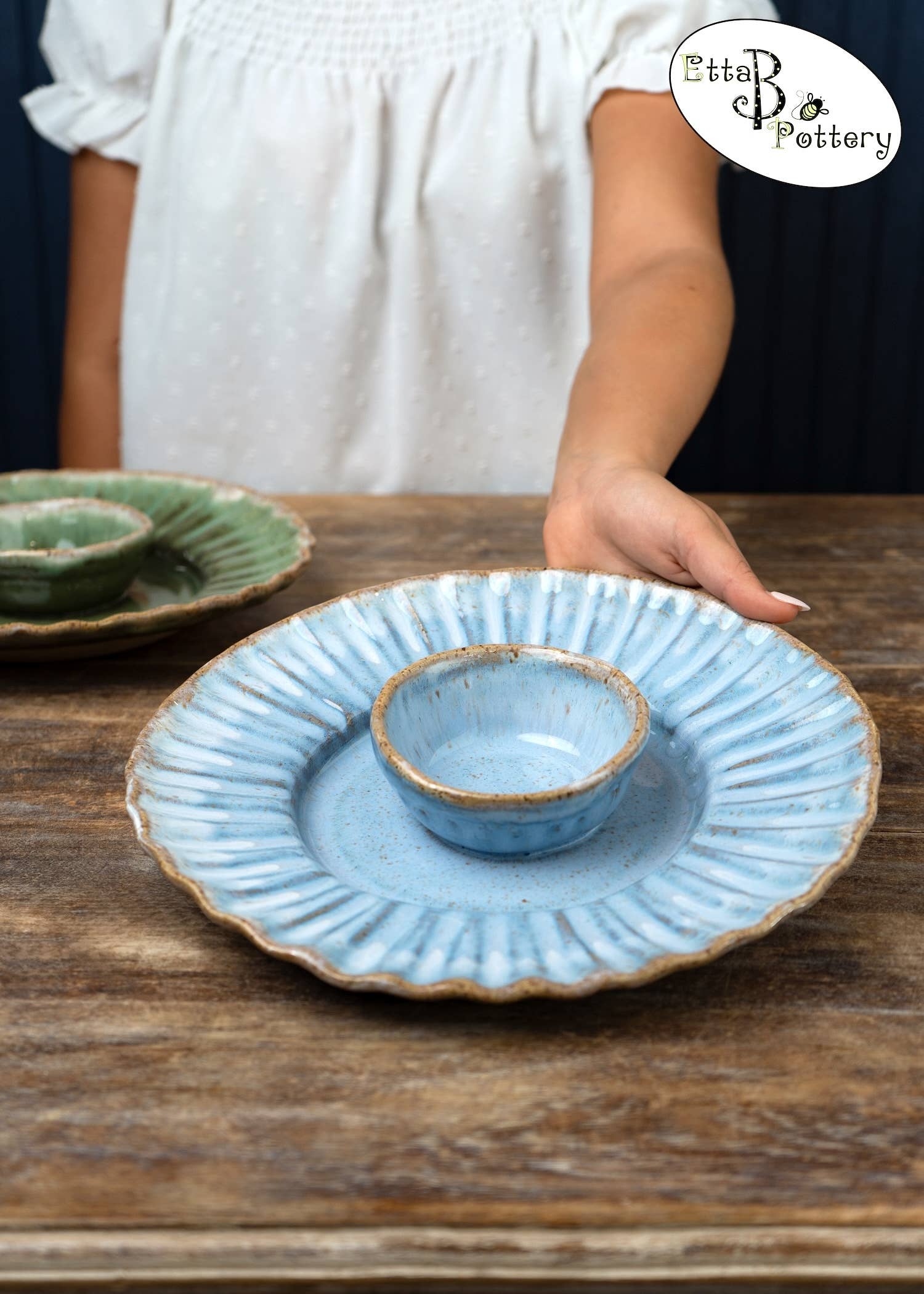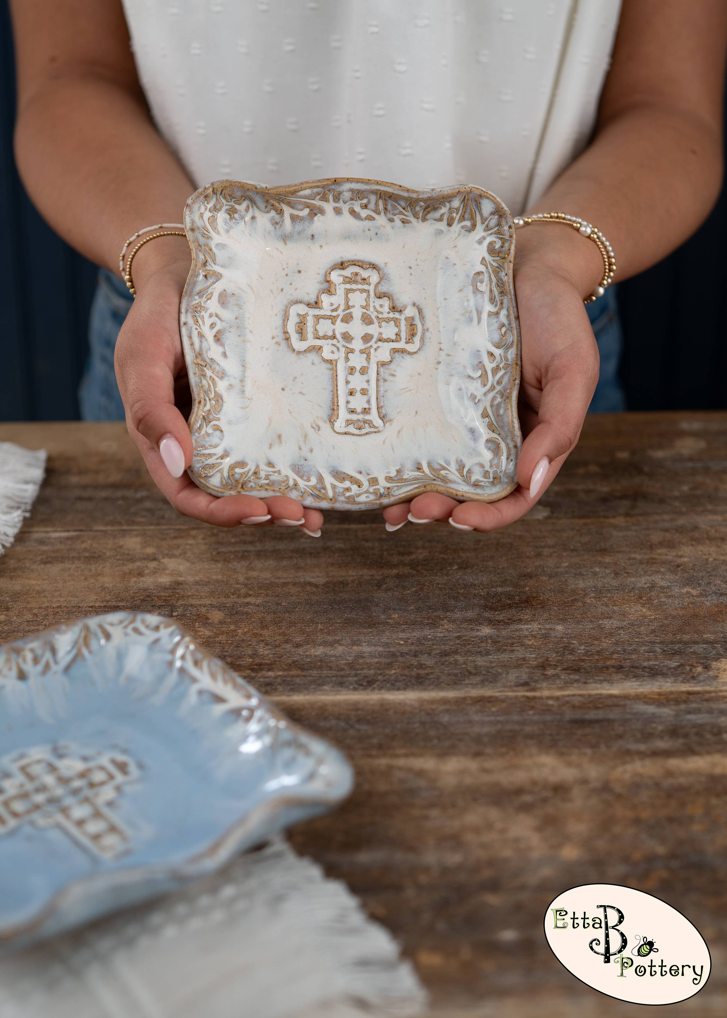 Originally founded in an old farmhouse, Etta B Pottery is proudly handmade, hand-poured & hand-painted in Mississippi. We started this family venture in 2008 and it has remained our mission to create beautiful pieces, both decorative and functional that you can enjoy with heirloom quality for years to come. Etta B Pottery strives to continue bringing unique designs every year that will be treasured gifts for your home, family, and friends. Each piece has its own individual character and color, with no two pieces ever coming out of the kilns the same. Our team of artisans hope you find this to be a lovely and special quality of our handcrafted pottery.