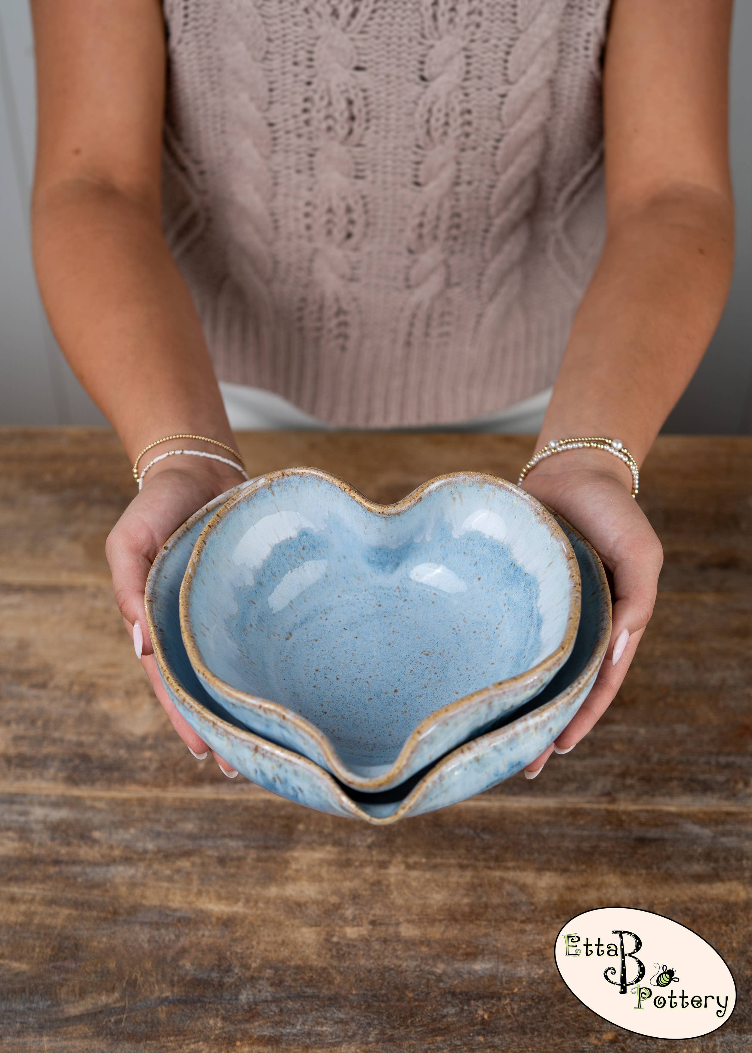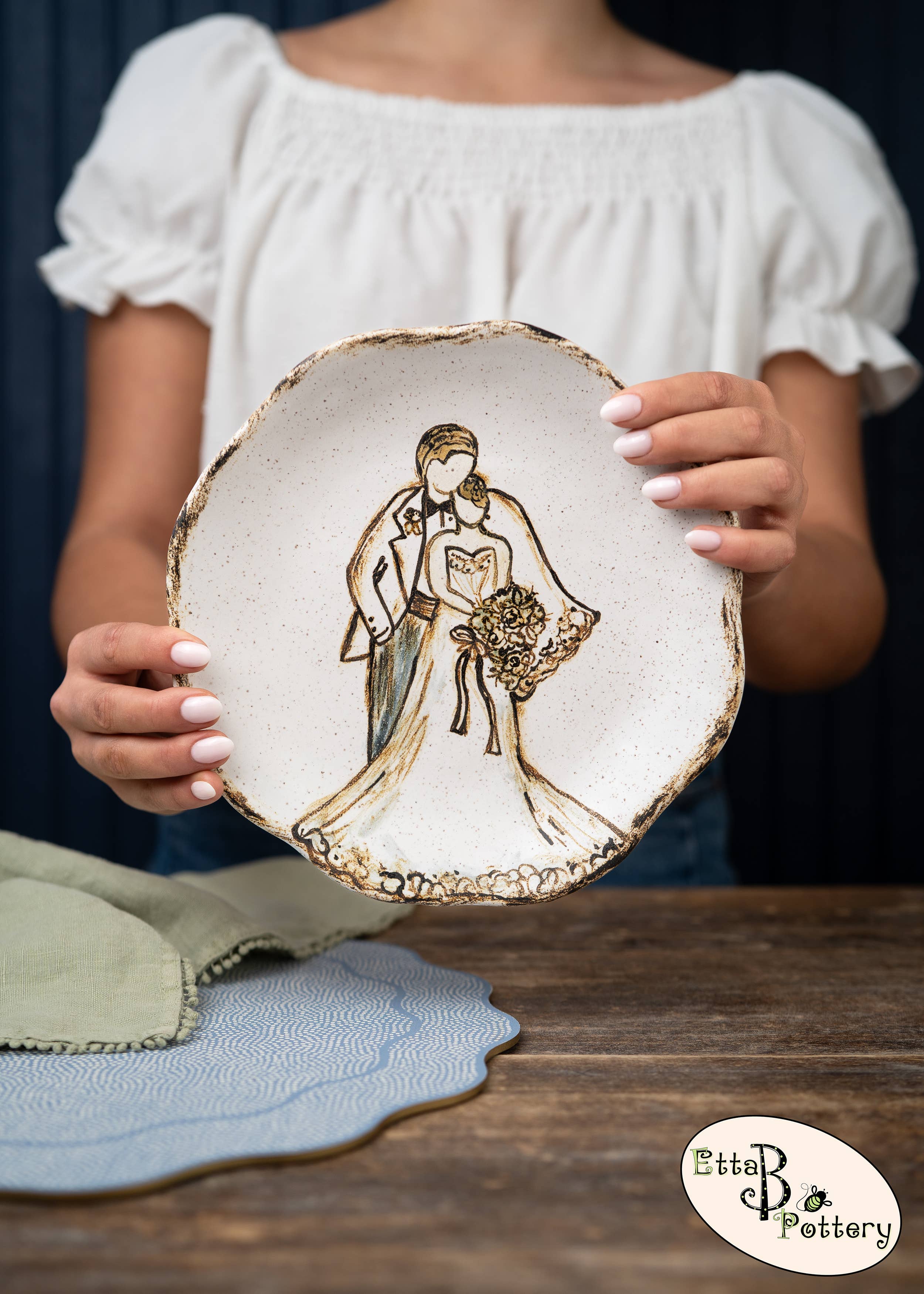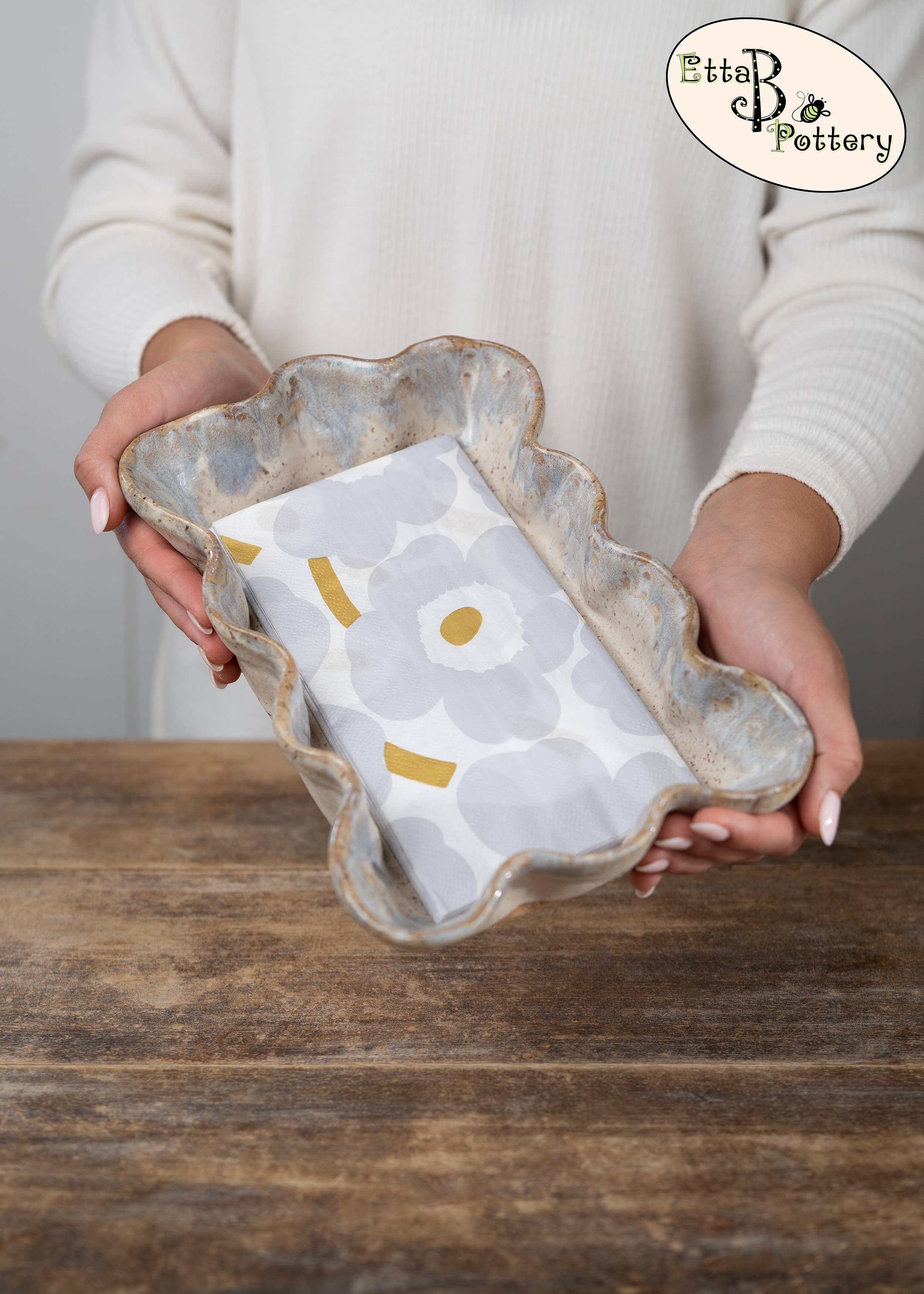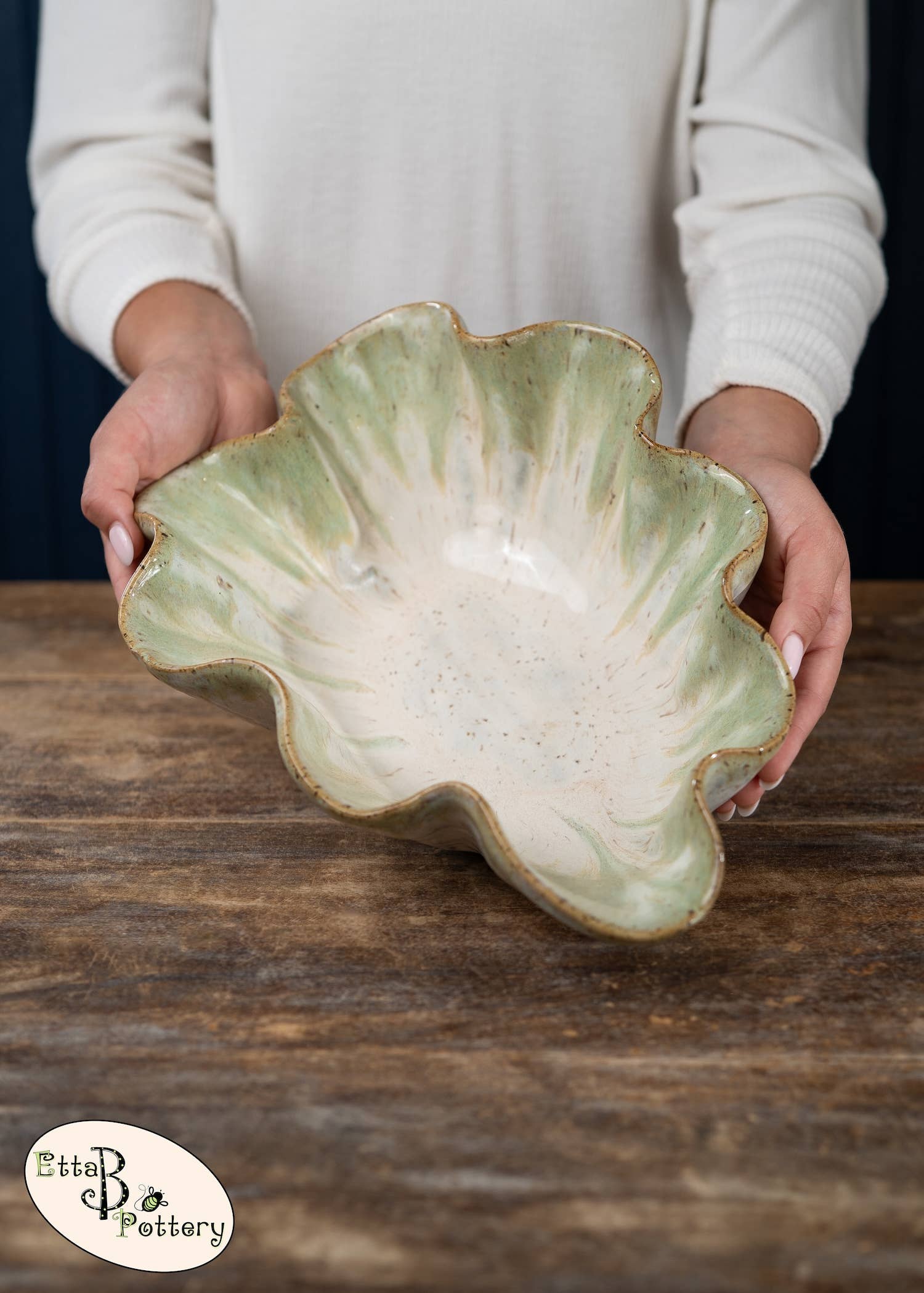 Originally founded in an old farmhouse, Etta B Pottery is proudly handmade, hand-poured & hand-painted in Mississippi. We started this family venture in 2008 and it has remained our mission to create beautiful pieces, both decorative and functional that you can enjoy with heirloom quality for years to come. Etta B Pottery strives to continue bringing unique designs every year that will be treasured gifts for your home, family, and friends. Each piece has its own individual character and color, with no two pieces ever coming out of the kilns the same. Our team of artisans hope you find this to be a lovely and special quality of our handcrafted pottery.