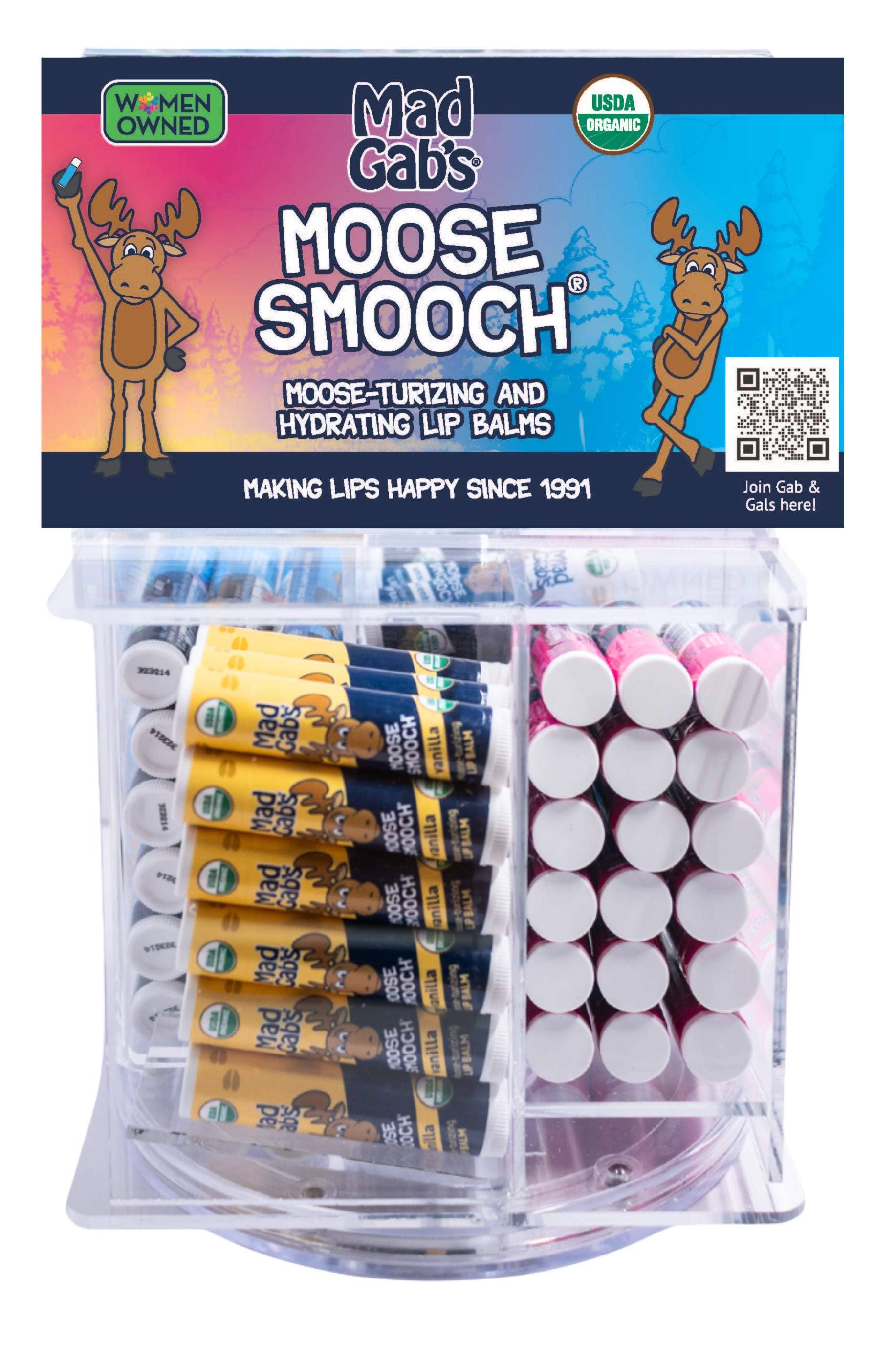 We're woman owned & run by a small and mighty crew in beautiful Maine. Mad Gab’s was founded in 1991 by Gabrielle Melchionda, when she perfected a lip balm recipe while studying anthropology and flunking math. Gab's natural lip balm was neither greasy nor waxy and when she gifted it to friends and family, they convinced her to start selling it....and Mad Gab's was born! Originally, Gab sold lip balm out of her car to Natural Food stores. Shortly after she was discovered by QVC and that level of exposure landed Mad Gab's on the pages of Vogue, Elle and countless national publications. Mad Gab's products eventually found wide success in souvenir, gift, tourist and resort industries. For many years Gab mindfully raised her two sons while juggling a growing company, and today Mad Gab’s is available in a wide array of retailers across the U.S. All of our products are made simply and organically with ingredients like Organic olive oil, Organic beeswax, Organic Shea butter, Organic cocoa butter, Organic flavor, & Vitamin E. Each order includes a whole lotta love & good vibes–and gives back through our GabGirls mentor program, where Gab helps teens start companies of their own! Every Gabgirl brings different ideas and energy to the Mad Gab's world--and every lip balm we sell helps us reach more girls. So keep that in mind as curate your assortment and when you tell friends about us. Help us spread the love! ❤️