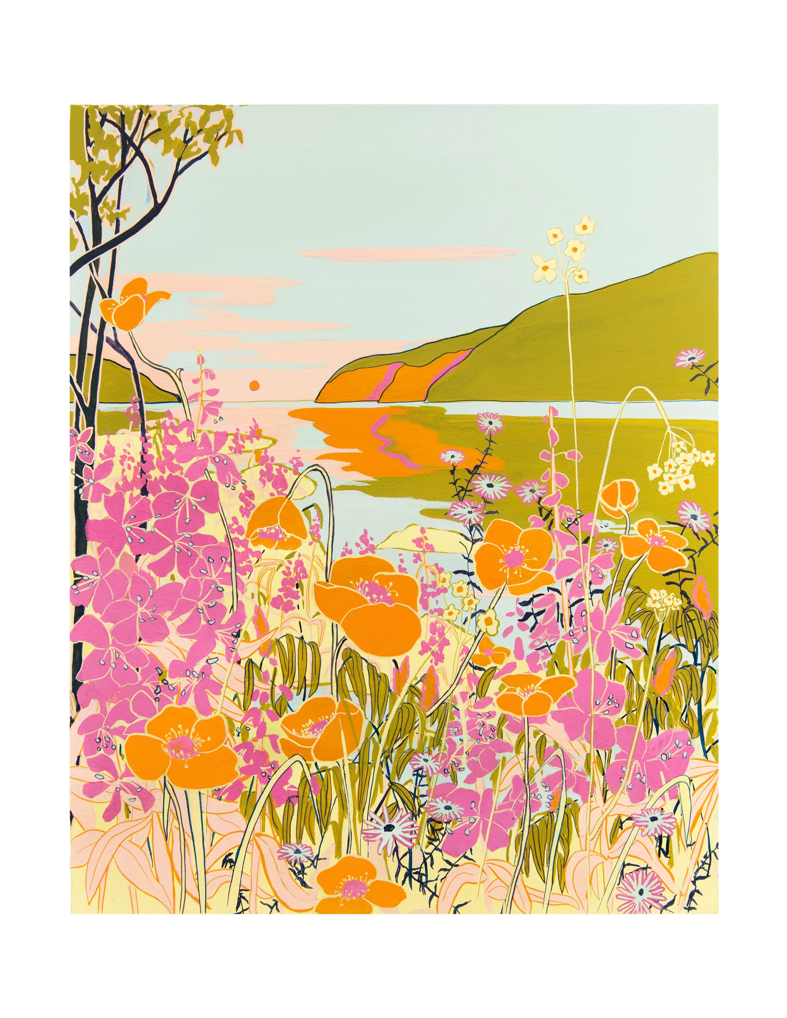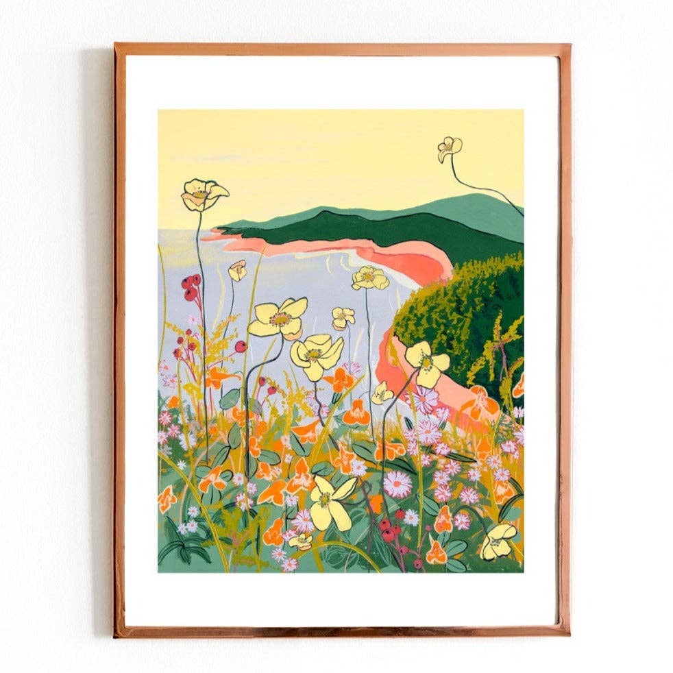 Art prints by me, Lizz Miles! I'm a British painter living in Dartmouth, NS. The paintings I make are an exploration of light, colour, and shape. I love to create playful work that feels good to make and tells a story of vibrancy and movement in everyday life. Inspired by colours, scenery, light and shadows, the feeling of home, and things that hold sentimental value, my work is for me, for you, and your customers. I paint each image by hand and print each piece from my home studio in Dartmouth, NS and sign each print before packing and mailing it. I studied Fine Art at Leeds College of Art, Alberta College of Art, and Falmouth University before moving from Cornwall, UK to Canada in 2015. I recently moved from BC to Nova Scotia with my partner and dog to enjoy all that the East Coast has to offer!