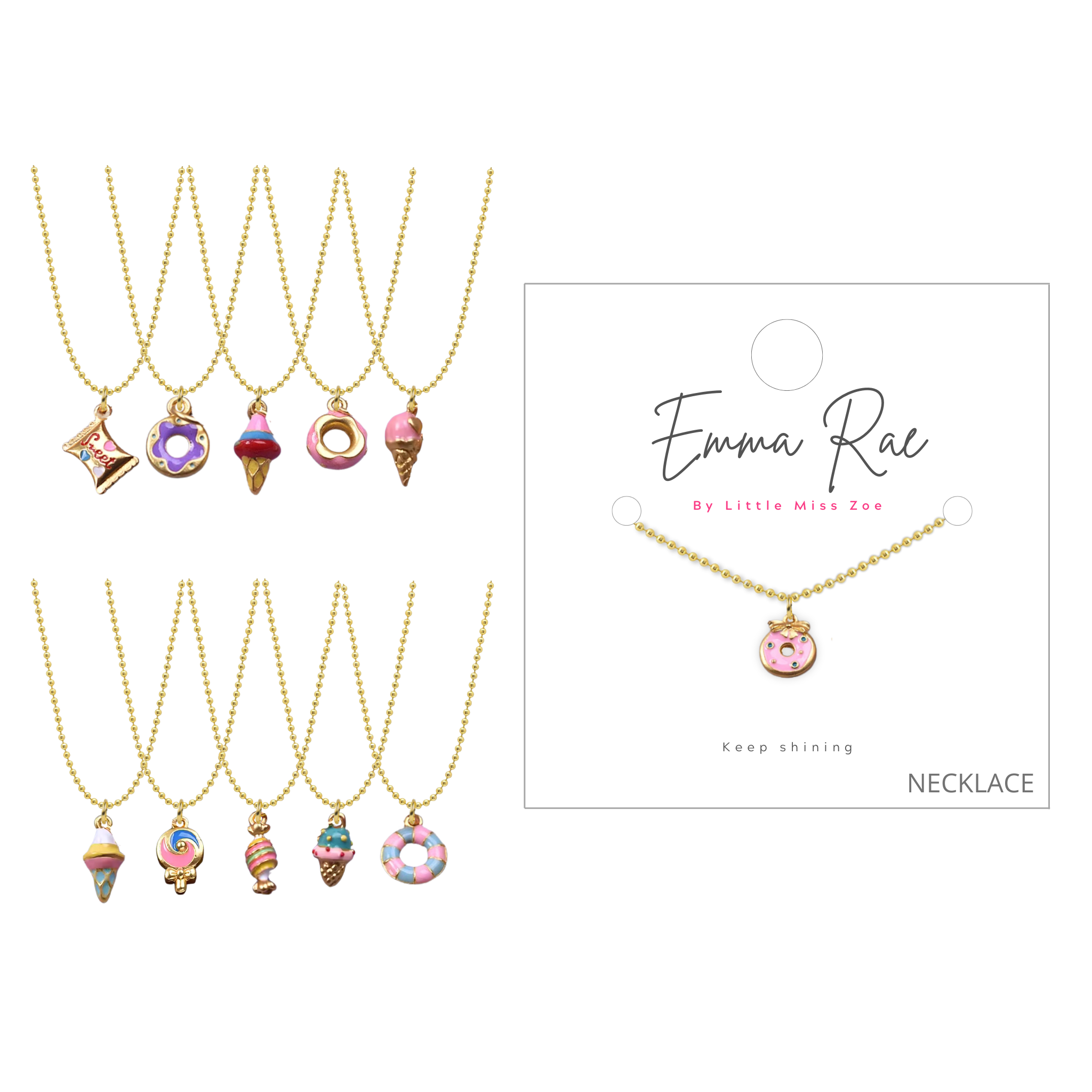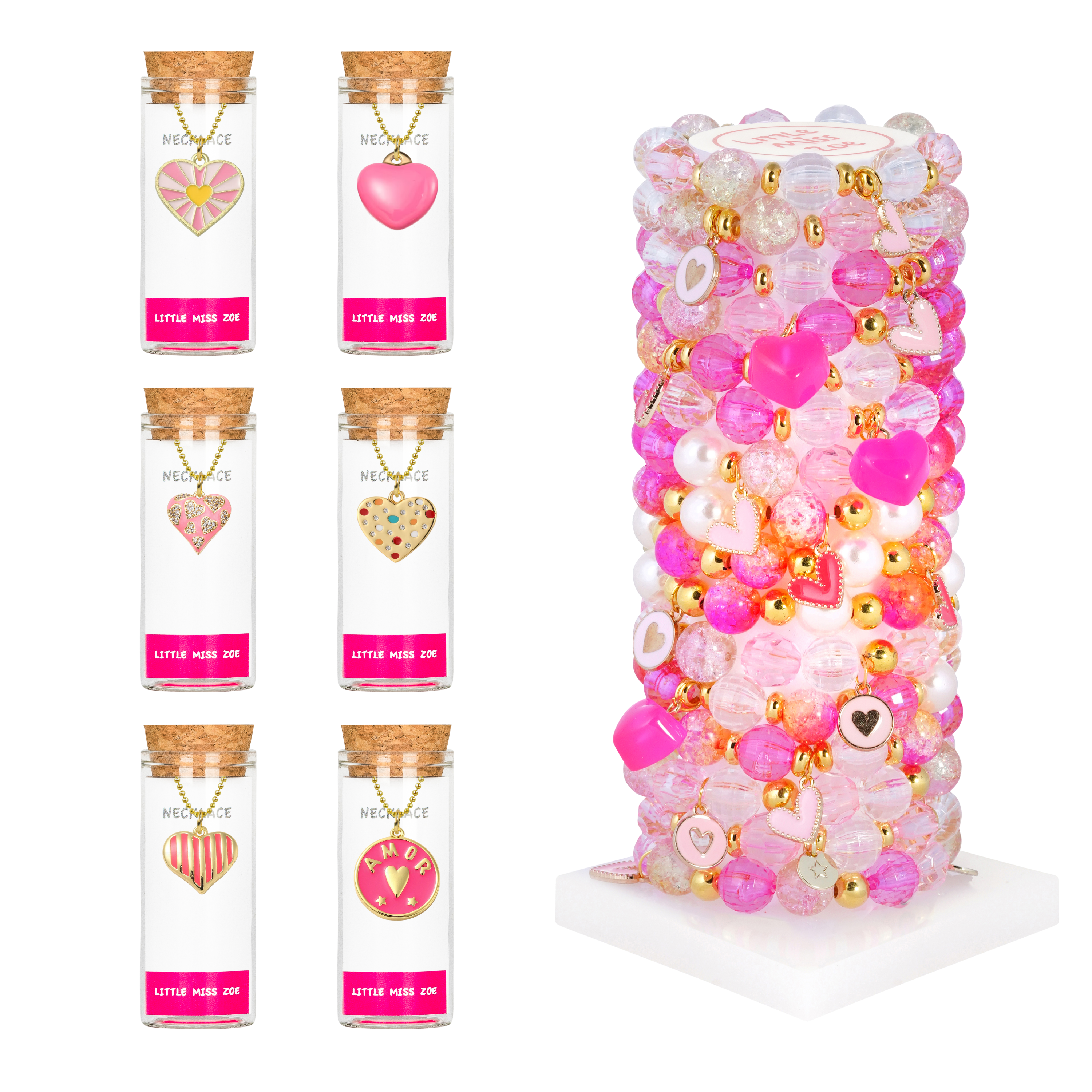 Kids jewelry designed for easy gifting and fast sell-through, Little Miss Zoe offers best-selling bracelets, necklaces, and earrings created specifically for kids boutiques and gift stores. Crafted in the USA from the finest U.S. and imported materials, each piece is thoughtfully designed for durability, playfulness, and mass appeal, helping stores stock products that fly off the shelves. Our jewelry is pre-styled, adjustable, and ready-to-wear, making it perfect for checkout displays, gift walls, seasonal refreshes, and tower-style grab & go presentations. With vibrant designs and playful charms that appeal to kids and tweens, our sets and towers are easy to merchandise and gift-ready, helping stores streamline inventory while delighting customers. Ideal for seasonal launches, holidays, and trend updates, Little Miss Zoe pieces simplify buying, merchandising, and selling, giving retailers a curated assortment of jewelry that’s on-trend and consistently popular. From colorful gemstone beads to charms with kid-favorite themes, every collection is designed to maximize sell-through and keep young customers returning for more. Little Miss Zoe helps retailers offer high-quality, fun, and versatile jewelry that’s simple to display, easy to gift, and built for repeat buyers, making it the go-to choice for boutiques and gift shops seeking products that move fast and delight every customer.