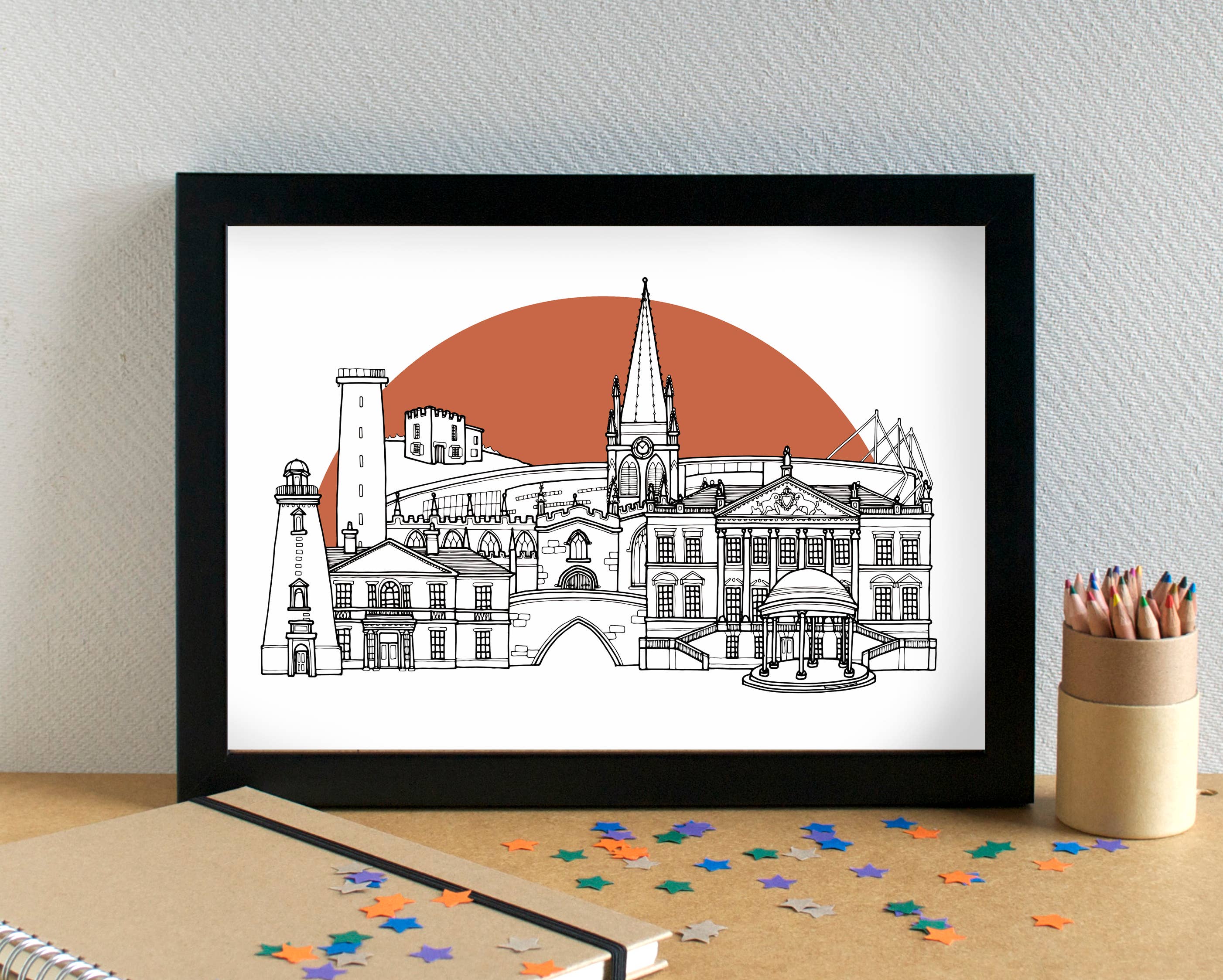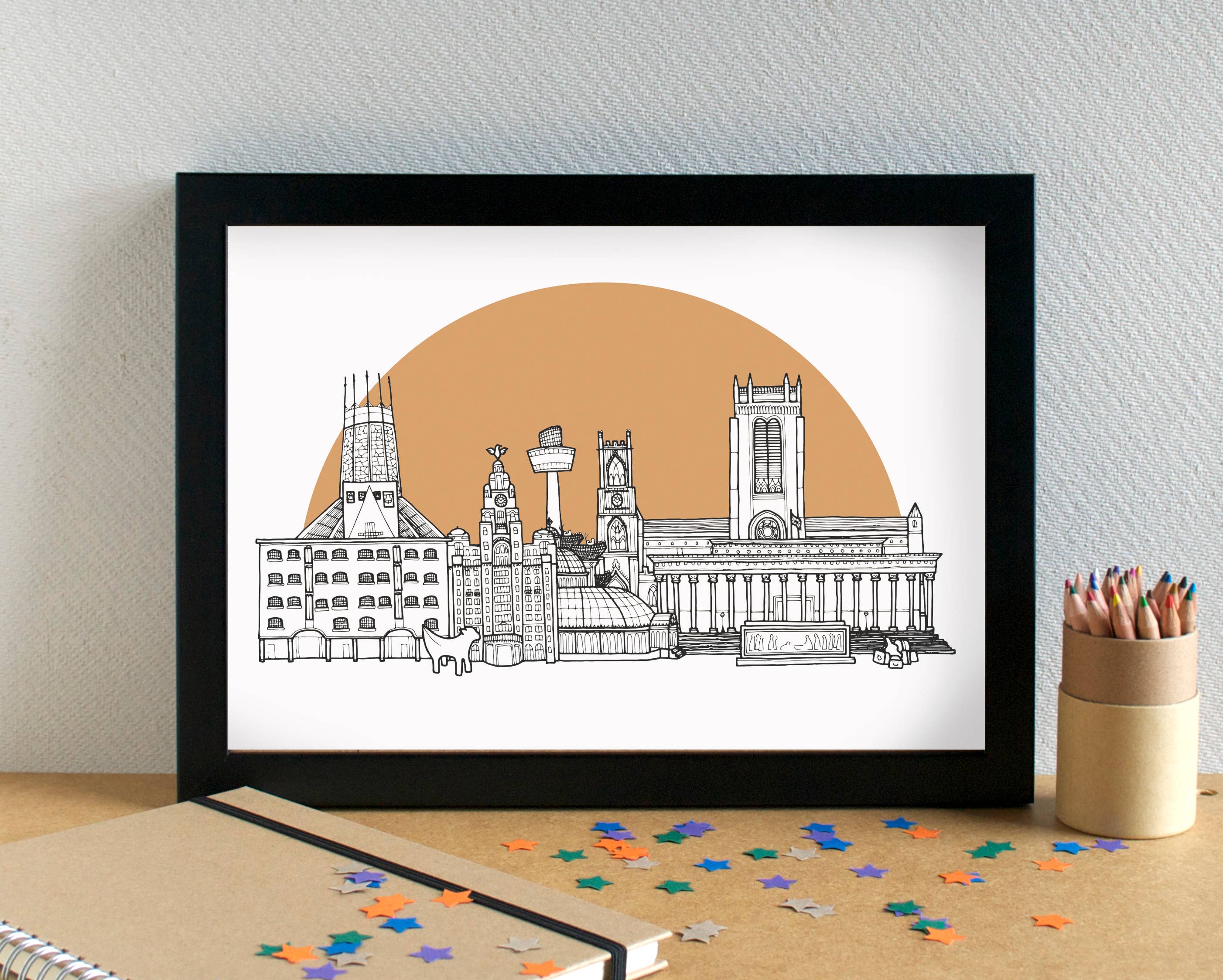 I'm an illustrator based in Liverpool, UK. I create greetings cards, art prints and giftwrap adorned with my illustrations. I have two main ranges: Alphabets, which are a series of themed alphabet illustrations featuring different food types or hobbies. Skylines - an ever-expanding series of black and white line-drawn illustrations of cities and towns - predominantly UK locations, but also some international locations. I've drawn over 190 skylines to date - have I drawn your town or city yet? I also have a range of funny food-based greetings cards. I am passionate about minimising waste, and aim to be as plastic-free as possible. My cards are all supplied with a low-adhesive sticker to keep the card and envelope together; my prints are supplied in biodegradable cello bags, with recycled greyboard and sealed with a sticker. I reuse packaging materials as much as possible. All my products can be recycled or repurposed after use.