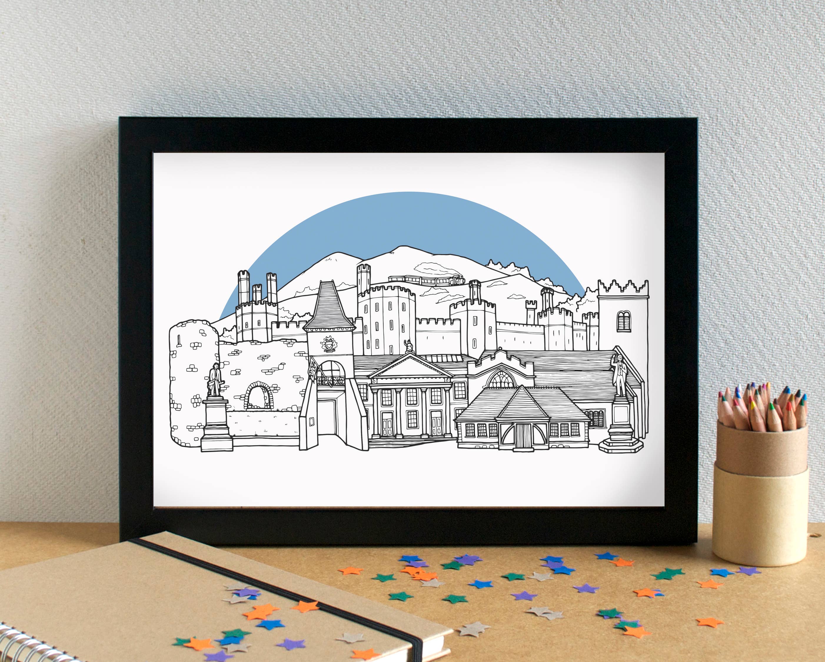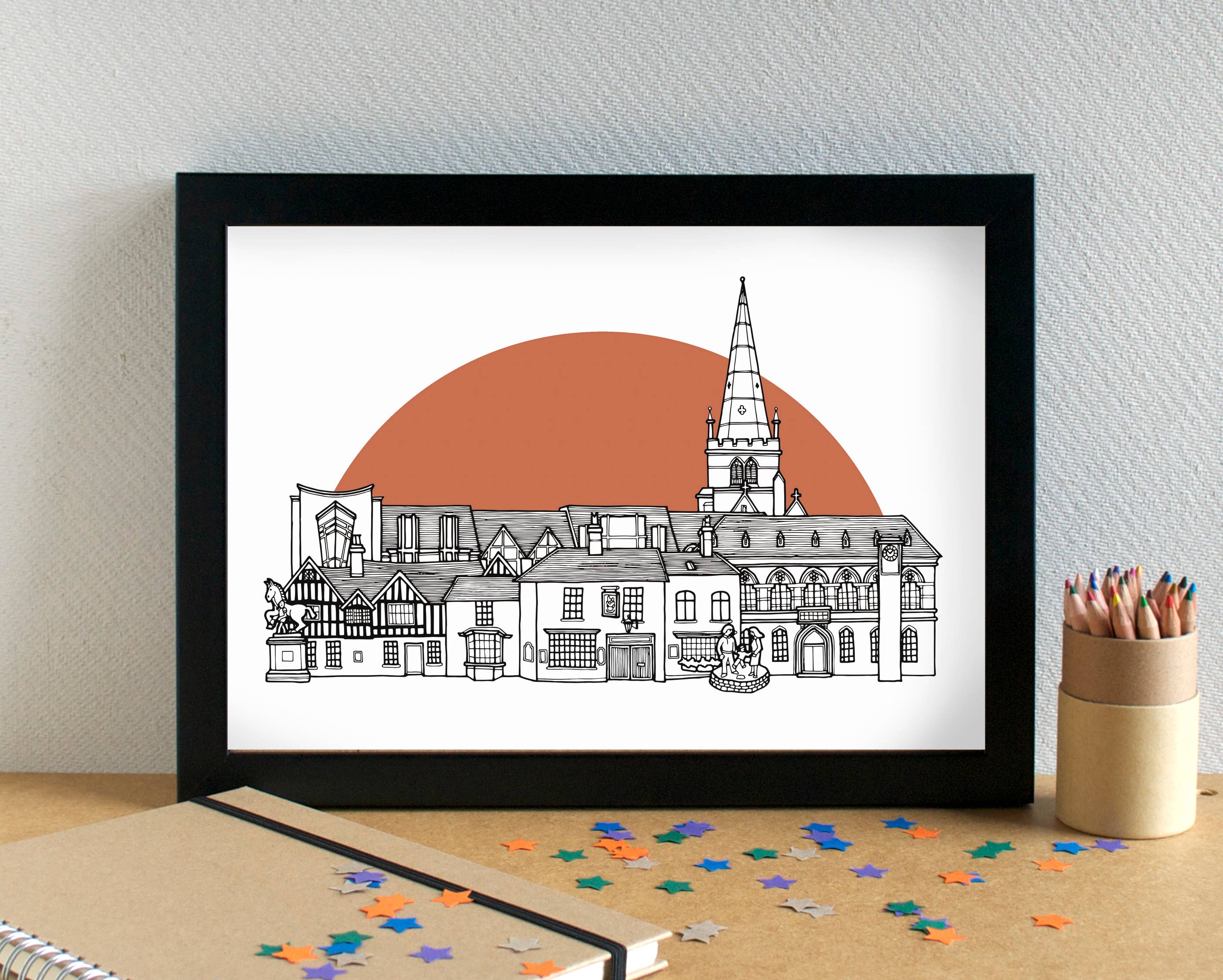 I'm an illustrator based in Liverpool, UK. I create greetings cards, art prints and giftwrap adorned with my illustrations. I have two main ranges: Alphabets, which are a series of themed alphabet illustrations featuring different food types or hobbies. Skylines - an ever-expanding series of black and white line-drawn illustrations of cities and towns - predominantly UK locations, but also some international locations. I've drawn over 190 skylines to date - have I drawn your town or city yet? I also have a range of funny food-based greetings cards. I am passionate about minimising waste, and aim to be as plastic-free as possible. My cards are all supplied with a low-adhesive sticker to keep the card and envelope together; my prints are supplied in biodegradable cello bags, with recycled greyboard and sealed with a sticker. I reuse packaging materials as much as possible. All my products can be recycled or repurposed after use.