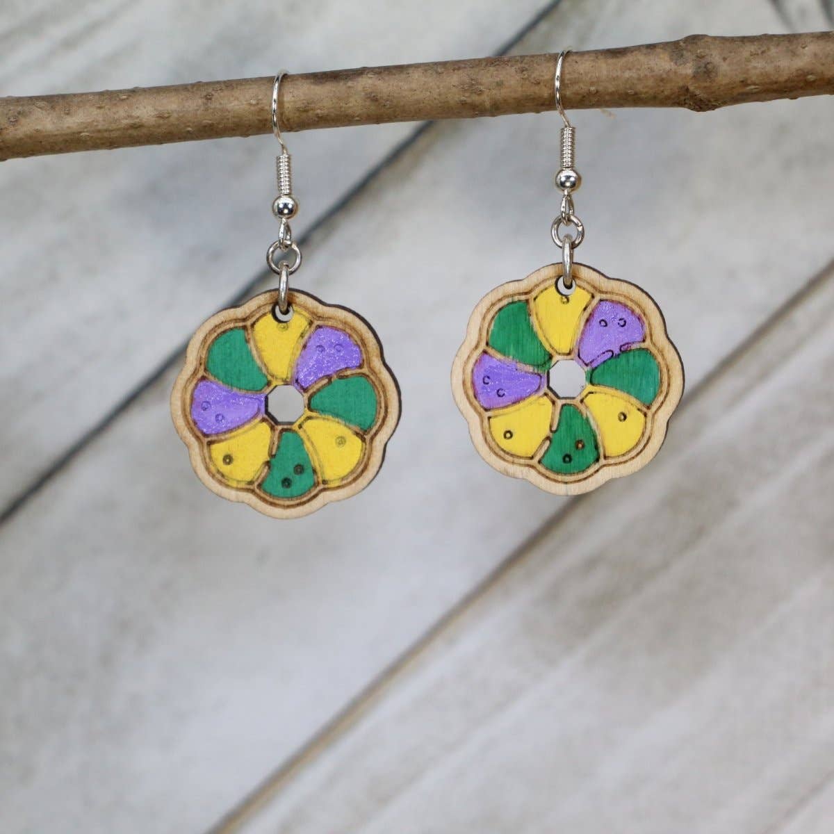 We started Cate’s concepts in May of 2018 after I was laid off from a coding job. We needed money coming so I started to go to farmers’ markets. Within three months of selling jewelry, we got asked to wholesale to our first store. We started attending larger shows increased our inventory and business to making holiday ornaments and earrings for school fundraisers. All of our earrings are made from recycled or reclaimed wood. Each is lightweight hypoallergenic and nickel free. We hand paint our jewelry and ornaments. At our first farmers market, we got requests for designs. That is when we started our policy that if you have a design you want that we don’t have we will give you two for the price of one if we can resell the design. This is how we crowdsource our designs. At least 60% of the designs we have are design ideas from our costumers.