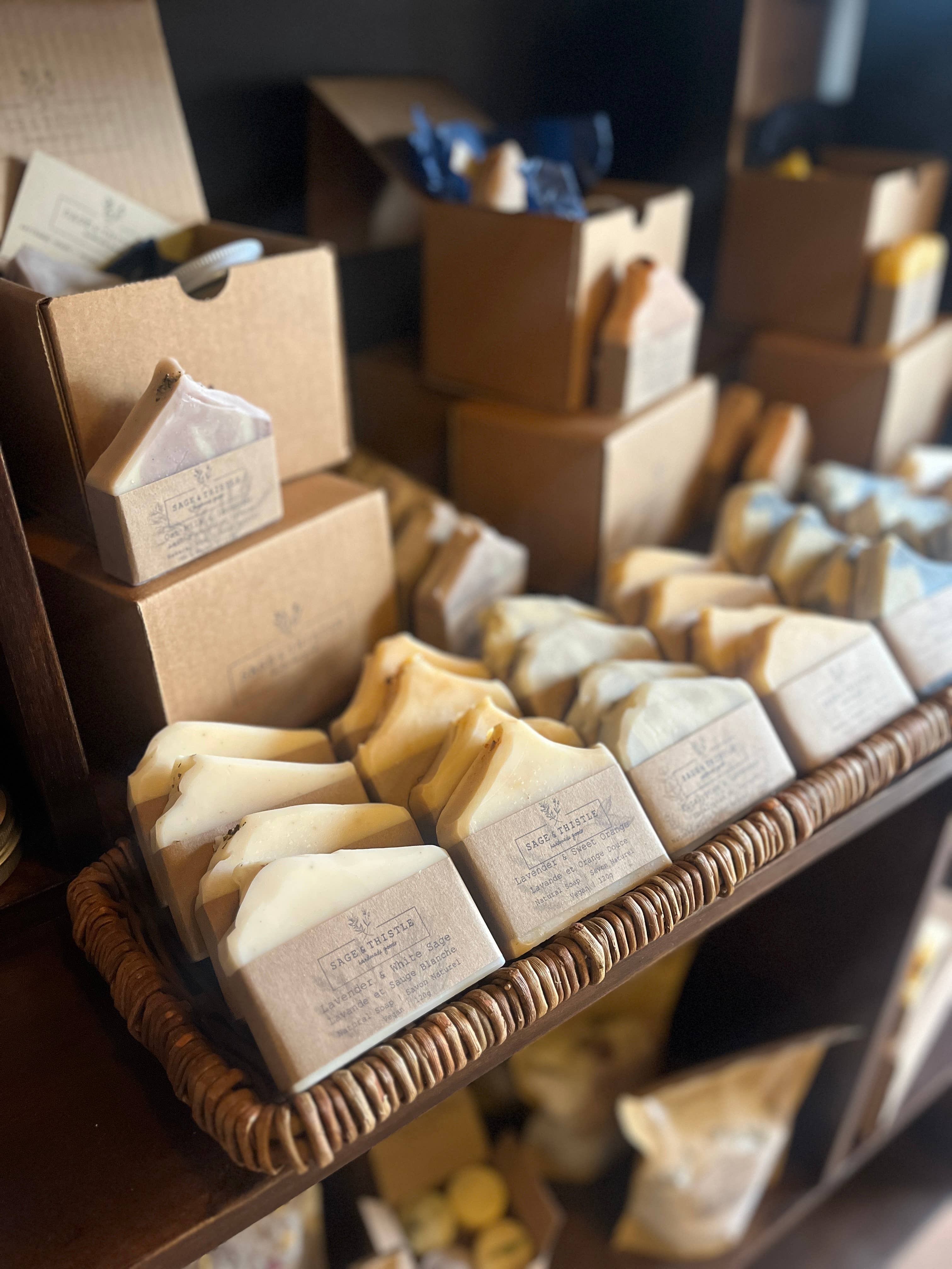 Proudly made in Canada using 100% Natural Ingredients 🌿 Sage & Thistle Handmade Goods creates 100% natural & nourishing bar soaps, skincare, & home goods using premium, nourishing, and long-lasting ingredients. What began as the passion project of an expecting mom searching for affordable & effective natural baby, body & home products for her growing family has grown into a brand specializing in creating beautiful, elevated & affordable essentials that are better for our families, homes, and communities. We use the best natural ingredients sourced as organically, locally, and sustainably as possible, and even grow many of our ingredients in our organic garden in the heart of Toronto, as well as responsibly foraging botanicals from the Boreal Shield Forest in Ontario. All of our products are handmade in small batches by the same mom who started it all, and are free of palm oil, plastics, synthetic fragrances, micas, dyes, detergents, and other chemical additives, and are packaged in reusable, recycled, biodegradable and recyclable materials. We offer the same quality, sustainable products to our customers that we use in our own home.