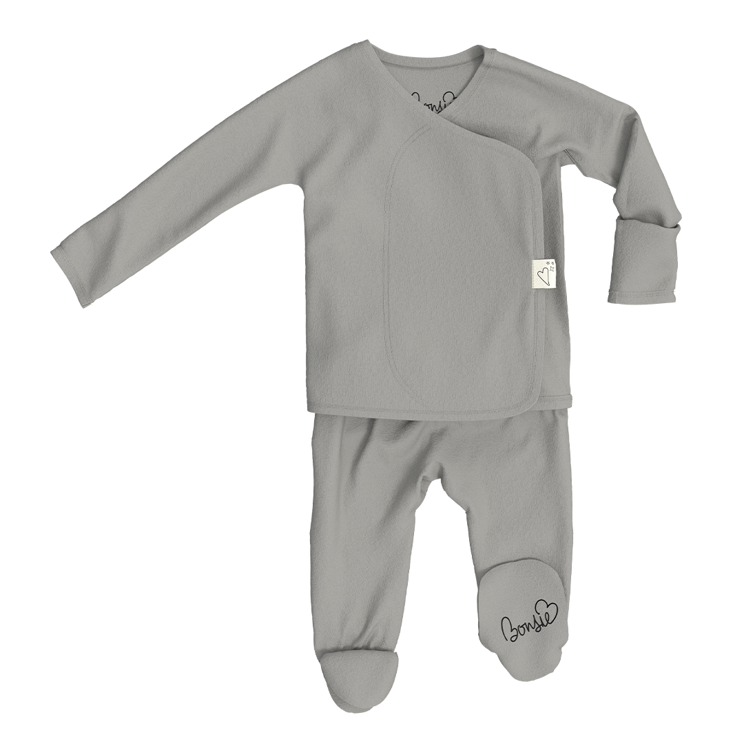 Bonsie Skin to Skin Babywear is the first and only baby line designed for easy skin to skin contact between a baby and their caregivers. Skin to skin contact is the act of holding your newborn's bare chest and tummy against your own. Many health and emotional benefits for both baby and mom are related to this practice! Bonsie was founded by Anna Turcotte, a clinical social worker and mama of two. After Anna's first child was born she longed for an easier way to get that important skin to skin time in with out having to fully undress her little one and began designing the Bonsie! Bonsie's are made from a super soft and sustainable blend of bamboo, cotton and spandex. With over a 2,000 person waitlist for new stock, Bonsie is quickly becoming a new mom must have! Customer Reviews: "Love this product! Material is so soft and functionality is amazing. Most worn outfit for my babe by far." -Olivia F. "These footies are my favorite. So sorry, easy to get on and off for diaper changes, and perfect for skin to skin cuddles." -Morgan S. "This is my third purchase! I bought two others in different colors in the newborn and 0-3 month size as a hospital and going home outfit. Glad I bought both as my little one ended up being a preemie. The clothing material is so soft it feels great against my skin so I know it feels great for the baby. It’s also really easy to get on and off for diaper changes which makes it my go to." -Nancy D