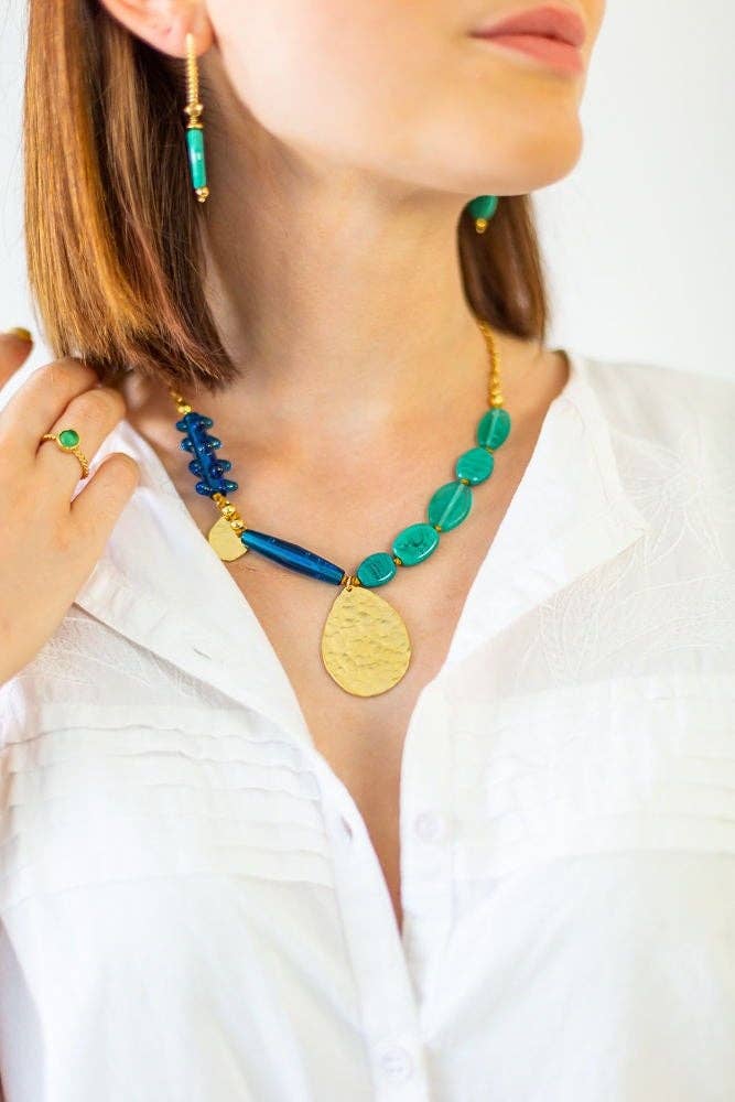 Show a candid elegance, Get noticed discreetly, Chilling with style, This is the mission of Christel Bussière, jewelry designer and art pearler in Strasbourg, France. The jewelry is designed and manufactured in the workshop in France and in collaboration with European workshops in a sustainable approach, by carefully selected craftsmen. The look of jewelry is inspired by raw textures. Glass captures light and makes it shine, just like the inner femininity of the woman who wears it. The signature of the house: the glass beads in which you lose your gaze and the hammered jewelry that illuminates the face.
