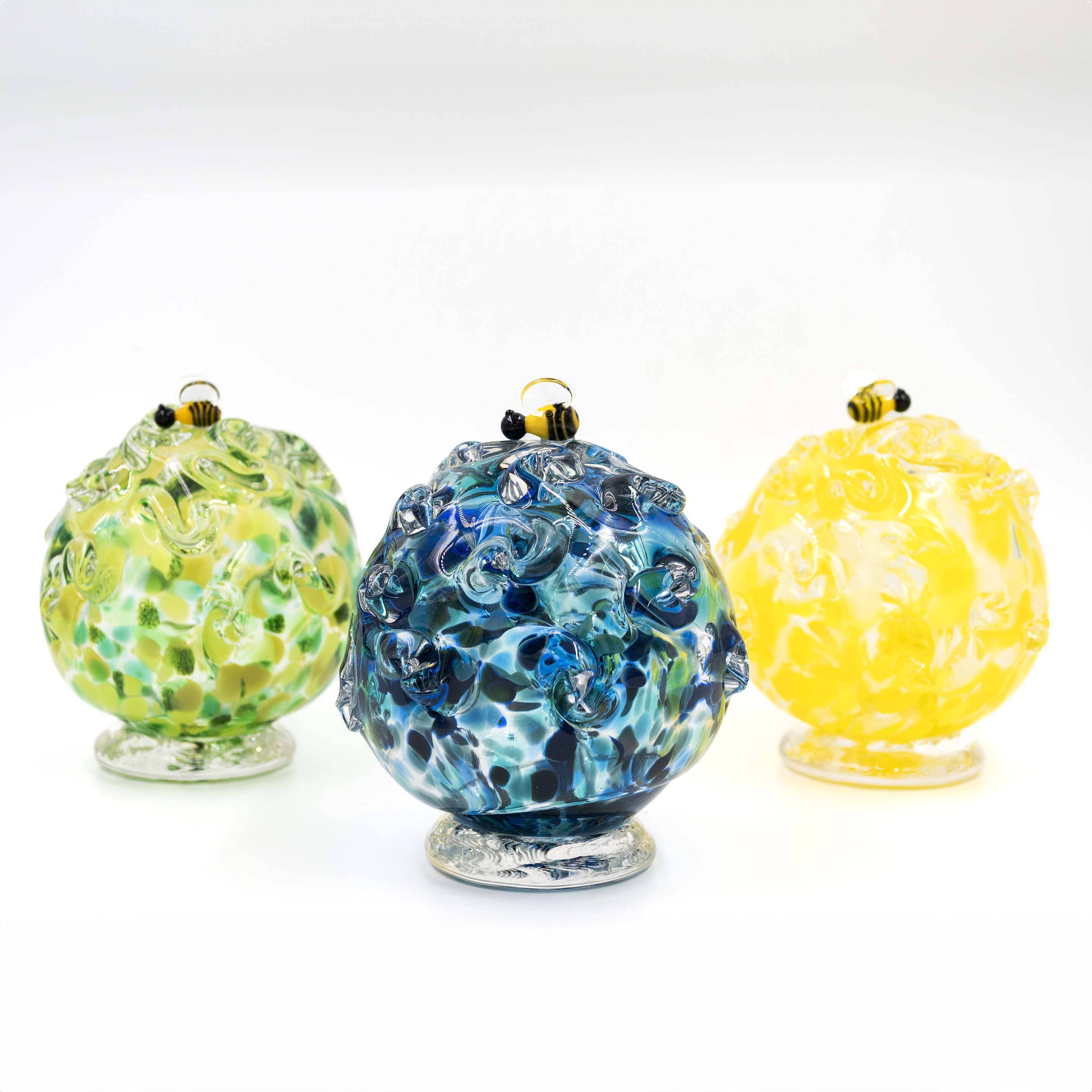 As an artist, I work from the inside out, consciously employing traditional processes while adding innovative techniques. The nature of this work frees the imagination, allowing everything around to be absorbed as sources of inspiration. This medium is like nothing I’ve experienced before. Glassblowing has filled me with a sense of accomplishment and integrity; it is a most commendable vehicle for translating my inner vision to outer reality. As a retail store owner, I have devoted an enormous amount of time toward developing an elegant and irresistible product line. The reinventing never stops as I continue to update my process and develop my products.