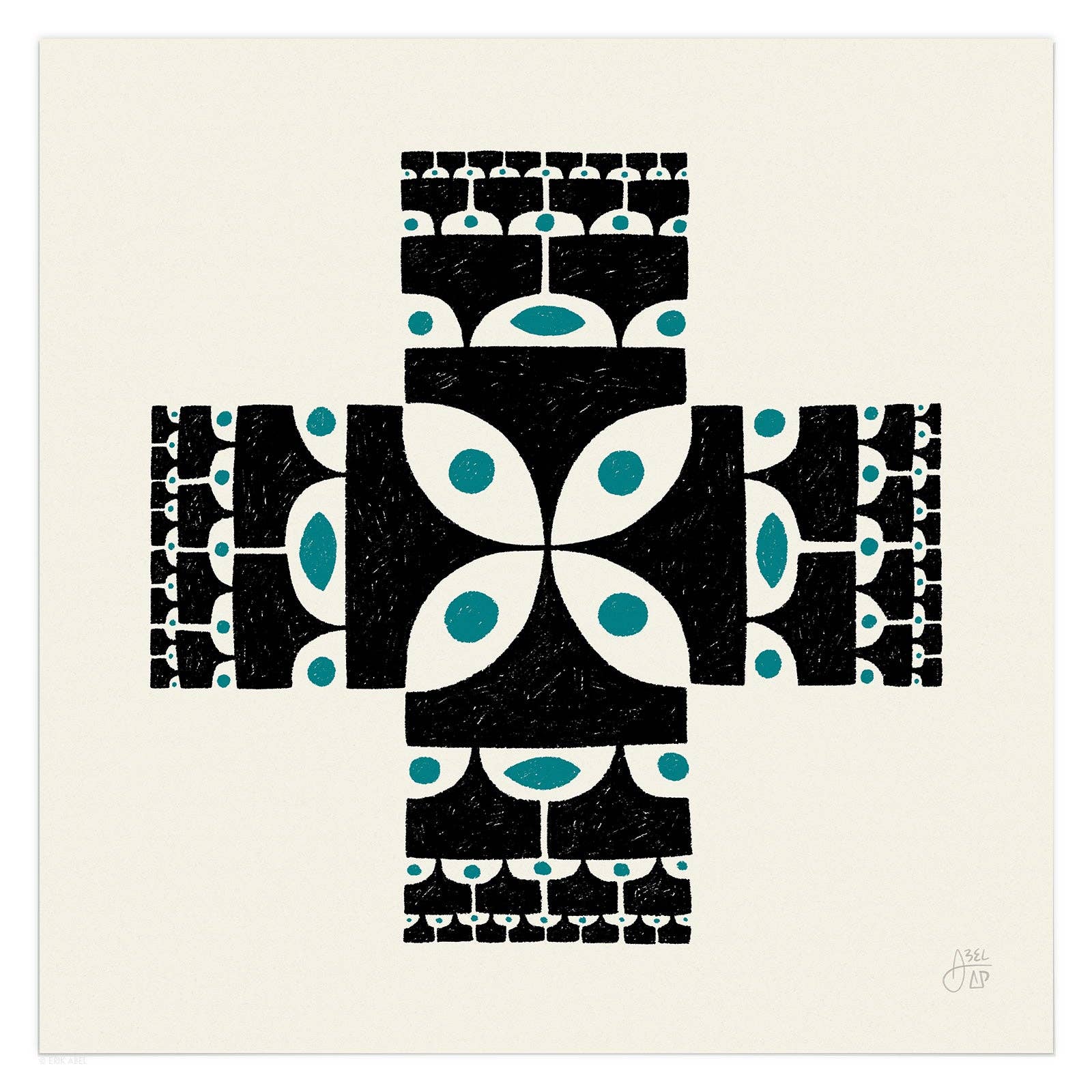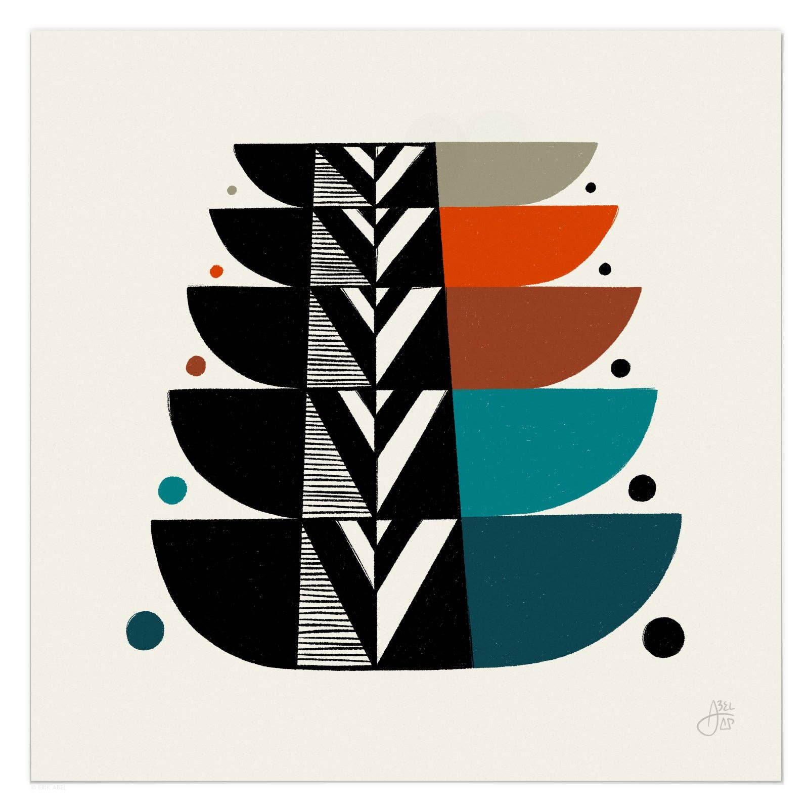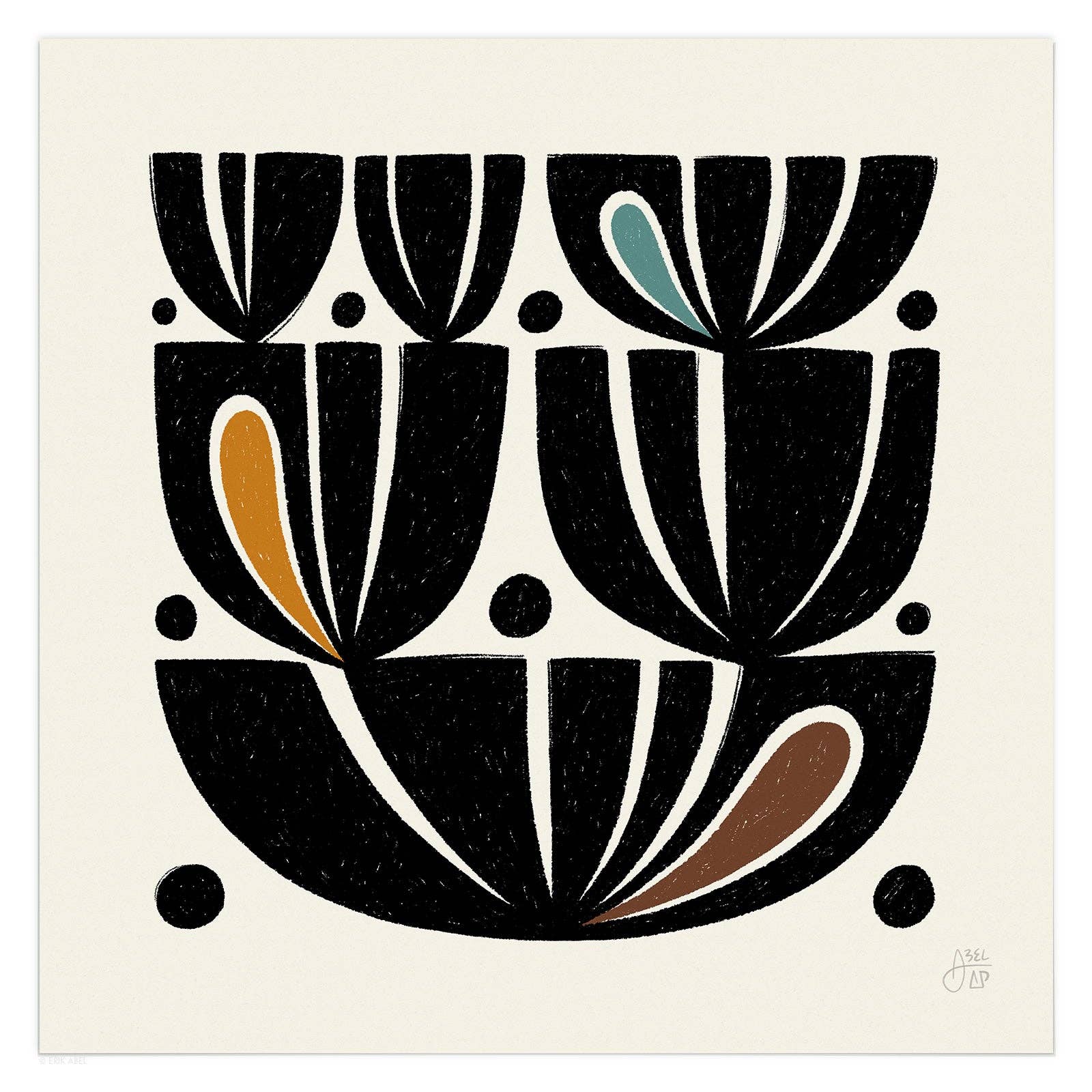 Abstract Pursuits is the alter ego of popular PNW artist Erik Abel (abelarts.com) Born out of his desire to freely explore abstract design and an exercise of pure creativity, Abstract Pursuits is Abel's "Cosmic Research Project in Search of Artistic Freedom and Universal Wisdom." Inspired by sacred geometry, quantum theory, consciousness, plants and the universe, his line of modern abstract designs have a mid-century modern flair and lots of conversation fodder. Printed and shipped from Portland, OR.