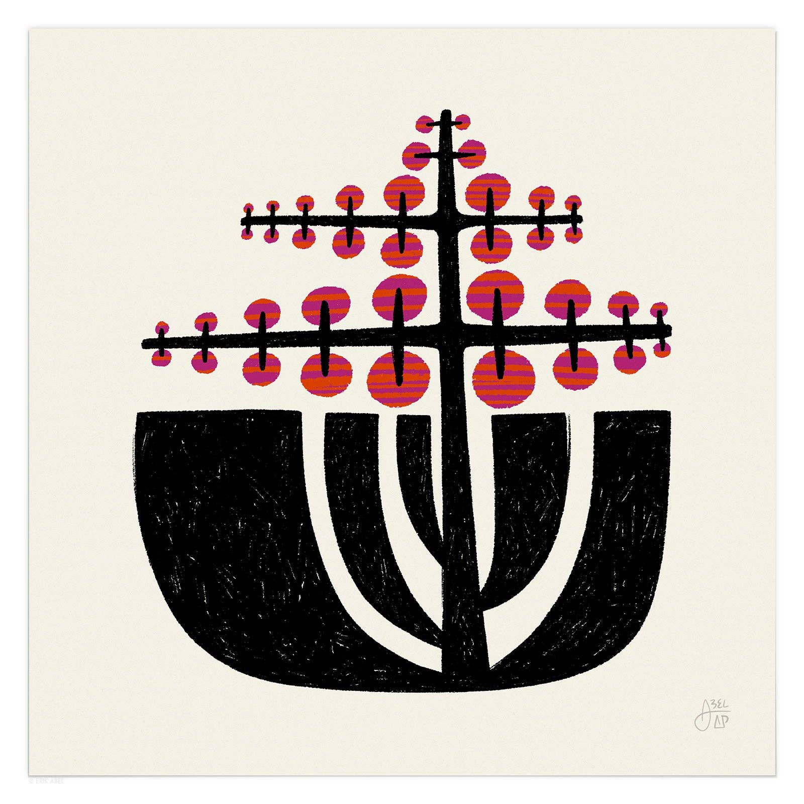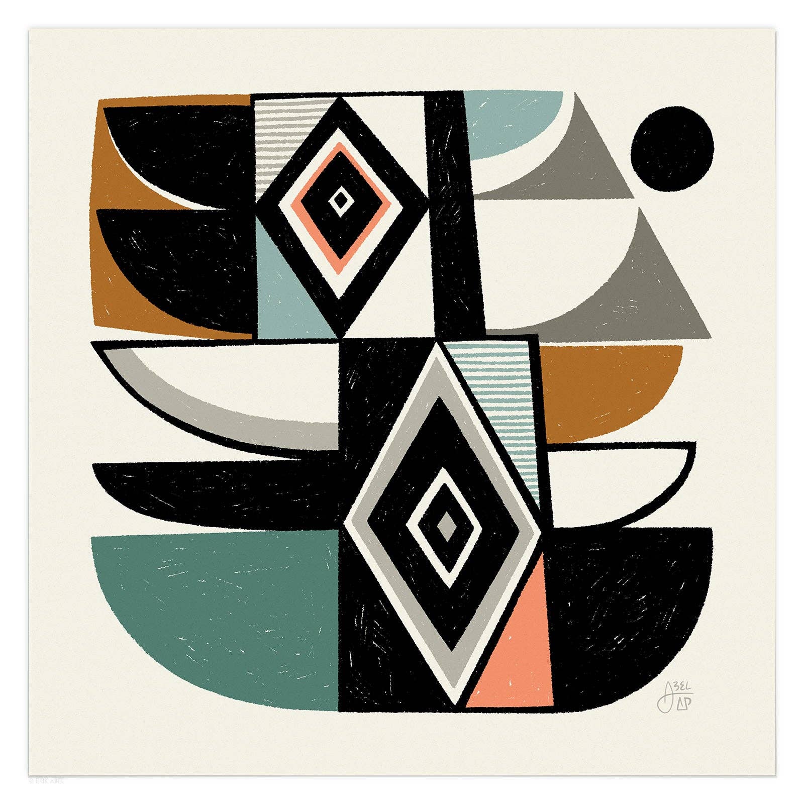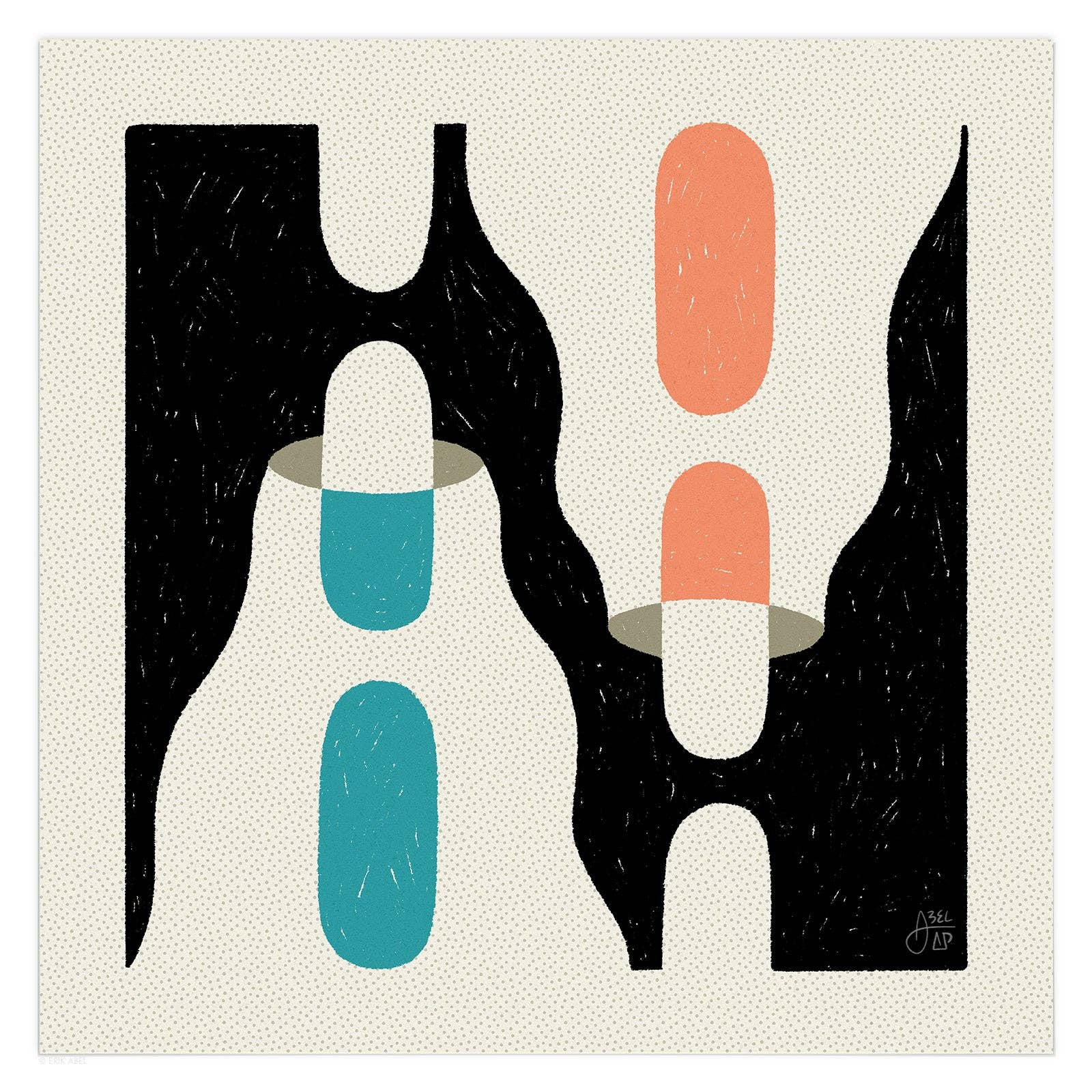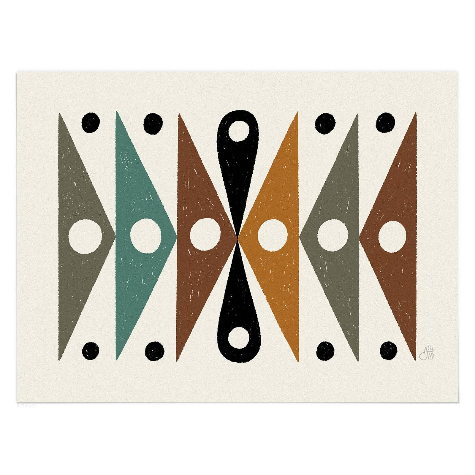 Abstract Pursuits is the alter ego of popular PNW artist Erik Abel (abelarts.com) Born out of his desire to freely explore abstract design and an exercise of pure creativity, Abstract Pursuits is Abel's "Cosmic Research Project in Search of Artistic Freedom and Universal Wisdom." Inspired by sacred geometry, quantum theory, consciousness, plants and the universe, his line of modern abstract designs have a mid-century modern flair and lots of conversation fodder. Printed and shipped from Portland, OR.