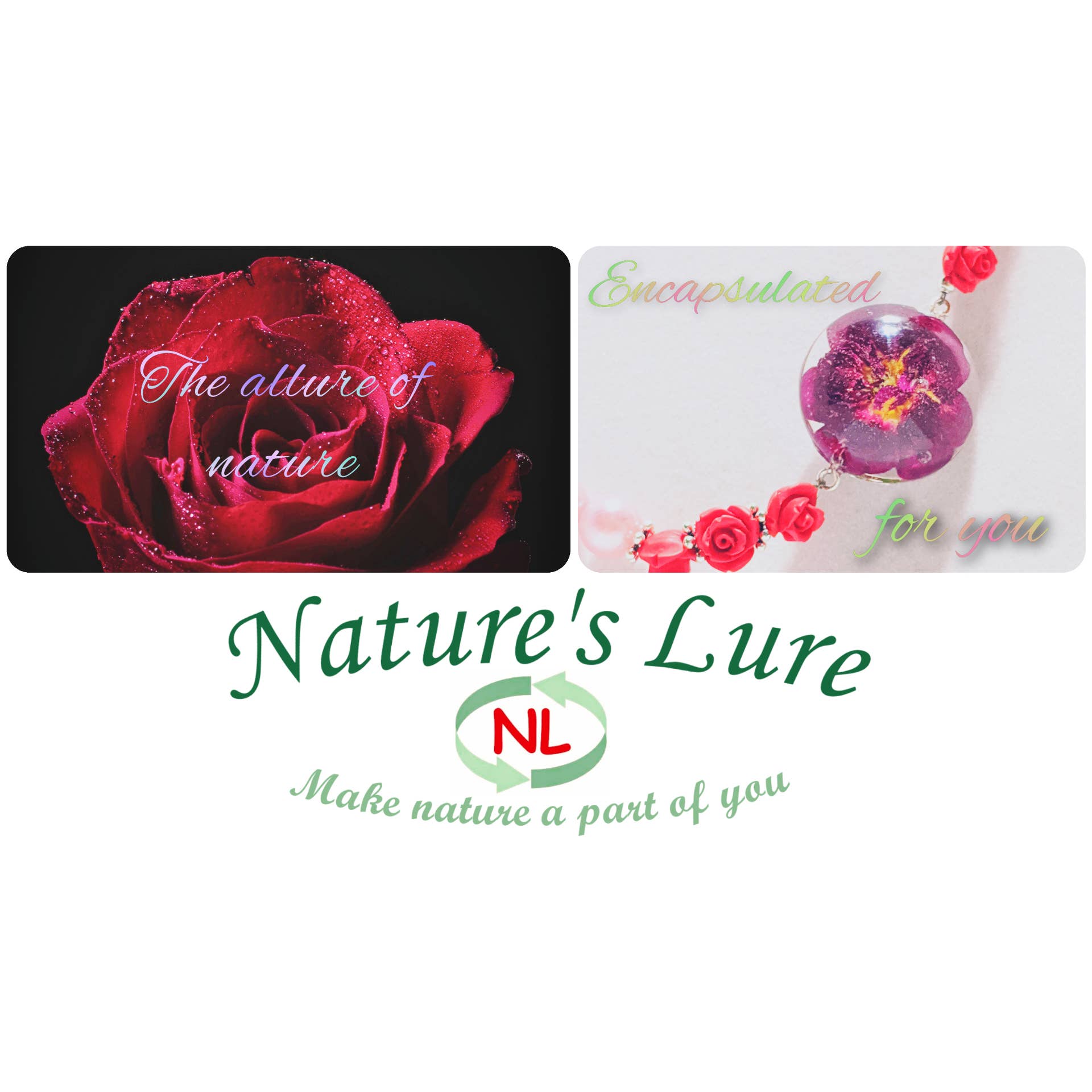 Nature's Lure is a small new family brand. We design, make, package, sell, and ship our items. We hand make all of our pieces and try to incorporate uniqueness, appeal, beauty, and quality into each of our designs. Our belief is that nature contains an infinite amount of beauty that continually lures us towards it. We attempt to capture some of this beauty in our nature themed jewelry designs so that our customers can experience the intrinsic attraction of nature's splendor. For this reason, the centerpieces of all of our jewelry designs are the flower/leaf embedded pendants. To make these pendants, we obtain appealing flowers and leaves and dry them while still maintaining their shape and color. Next, we encapsulate these in high quality resin to preserve their beauty in unique pendants. After this, we incorporate these pendants with our attractive matching jewelry designs to create jewelry pieces that showcase Nature's inherent beauty. Our hope is that wearing these pieces will allow you to make a little piece of nature, and the beauty that accompanies it, a part of you.