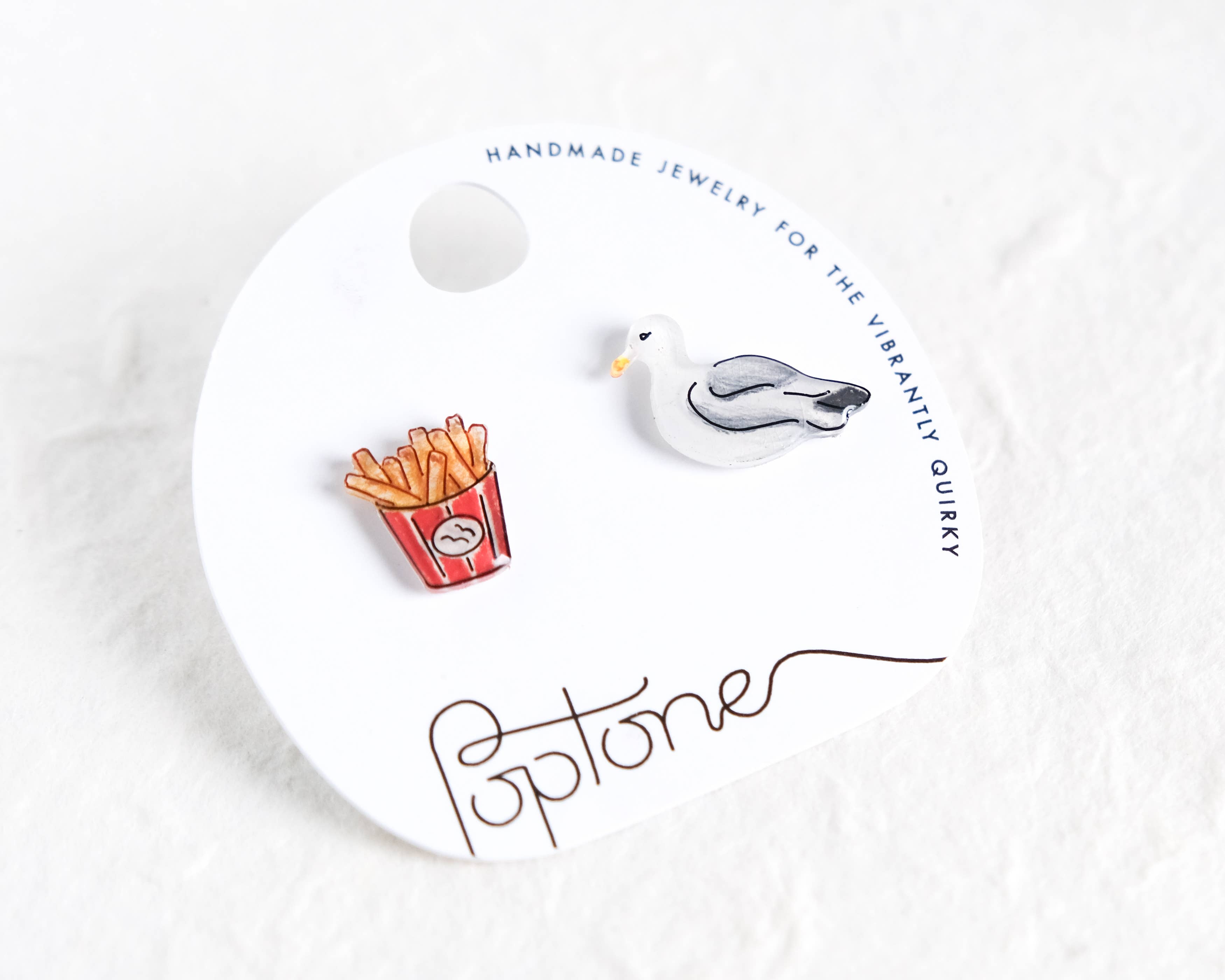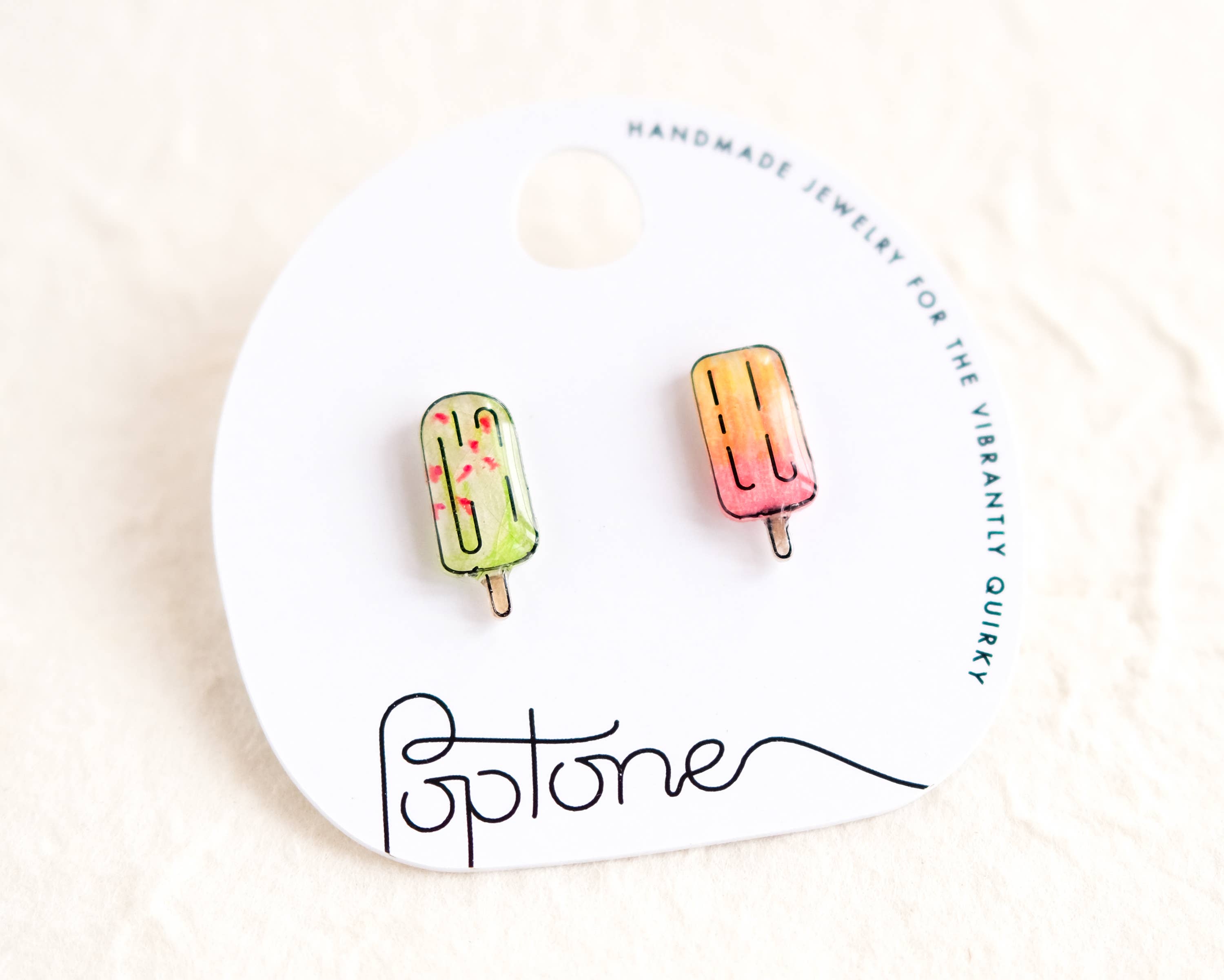 Poptone is a collection of handmade jewelry designed for the vibrantly quirky. I design, hand-illustrate, and assemble each piece with careful attention to detail and very hypoallergenic materials - all from my home studio. Poptone started in 2016 when I began experimenting with the combination of hand-drawn illustrations and transparent materials to create three-dimensional jewelry. My first designs arose from those experiments and grew into a jewelry collection now sold in boutiques, indie book stores, and museum gift shops across North America.