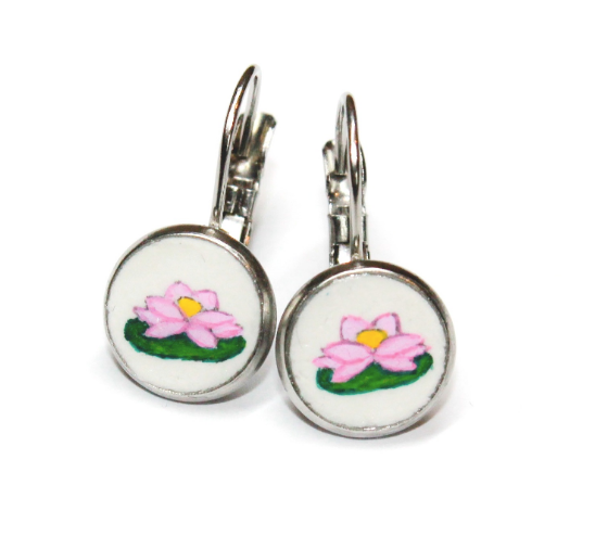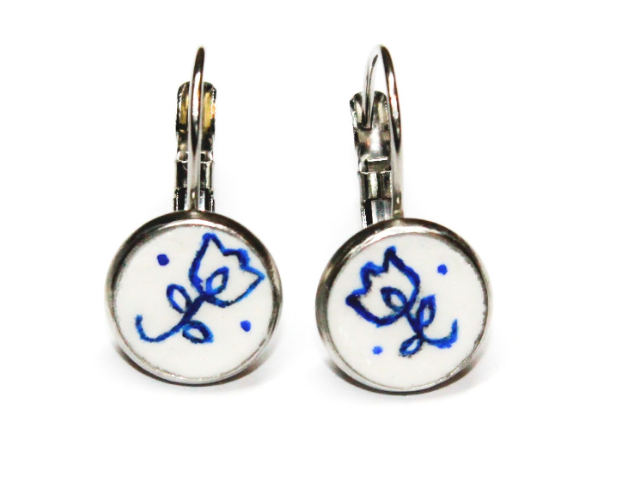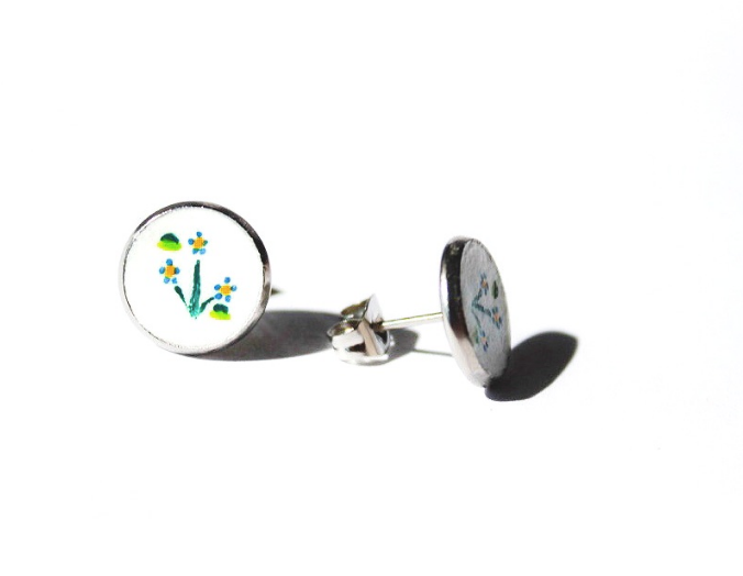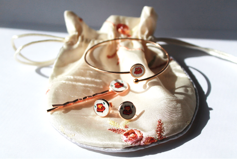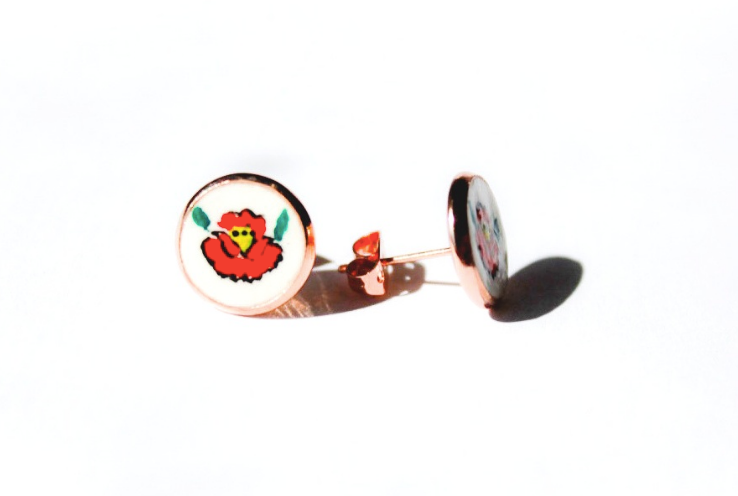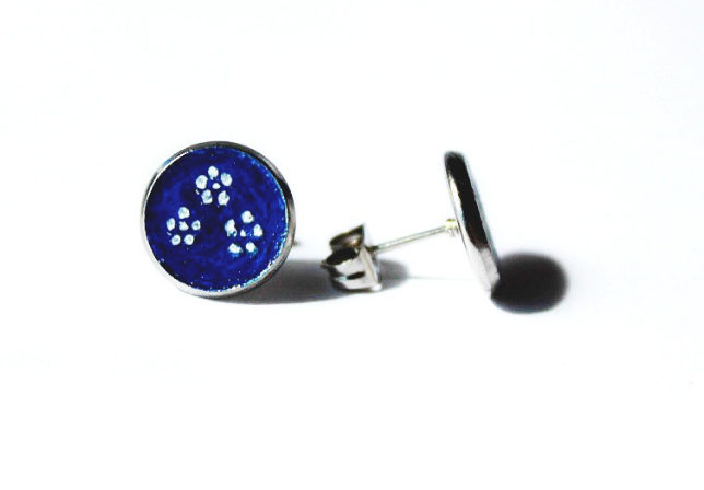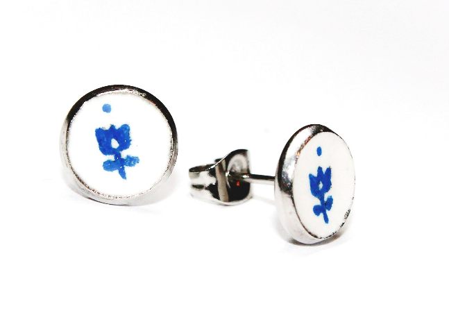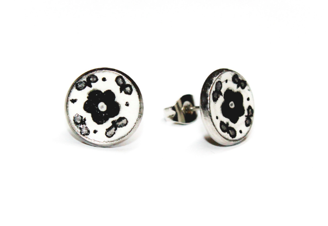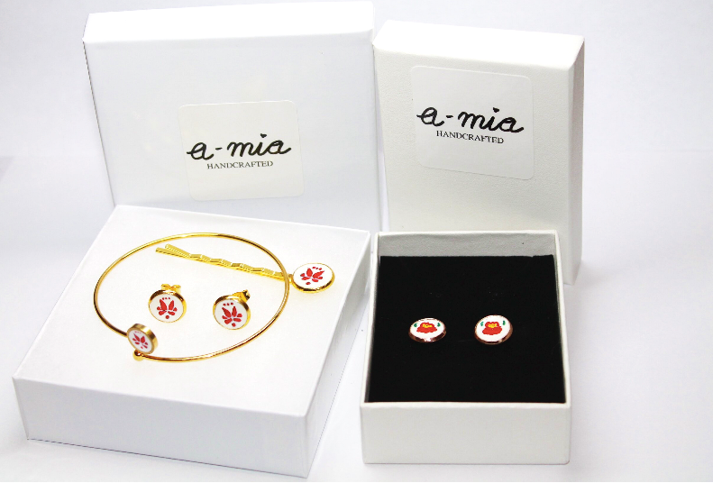 My name is Agnes. I was born in Hungary and I left my home for the love of my life, so I moved to the States. I have always loved painting, so it was a given to start working on something I could create myself. My goal was to combine my Hungarian heritage with my creativity. So, I started hand painting wearable art pieces such as earrings, hairpins, bangles and cuff links. The name of the company was inspired by my muses, my two daughters. The name ‘a-mia’ is a portmanteau word, created by their names.